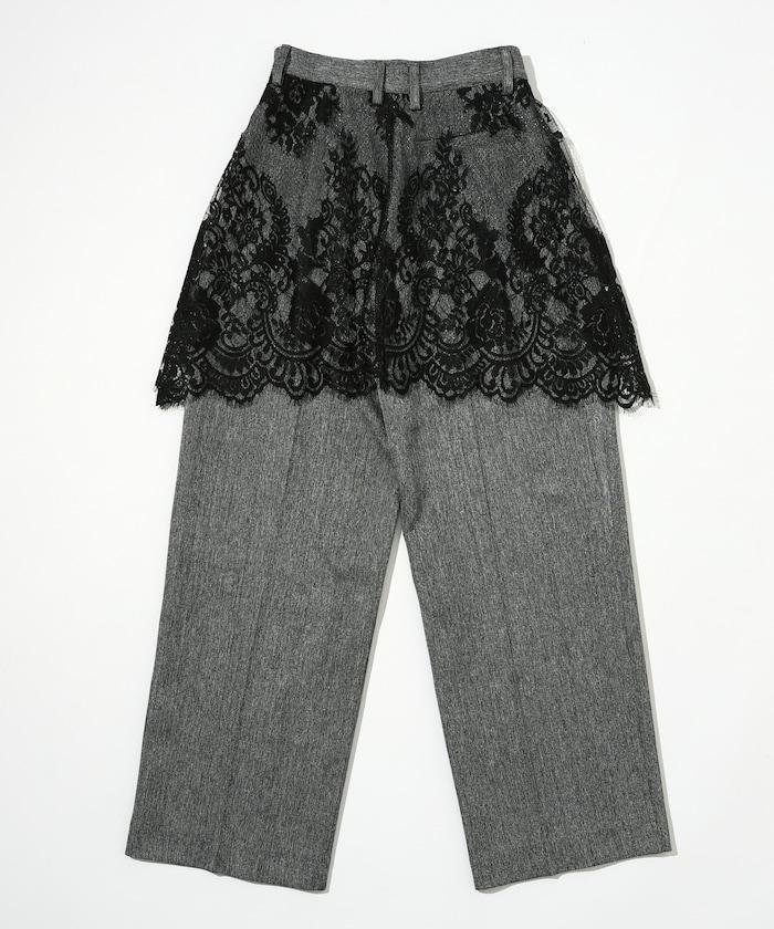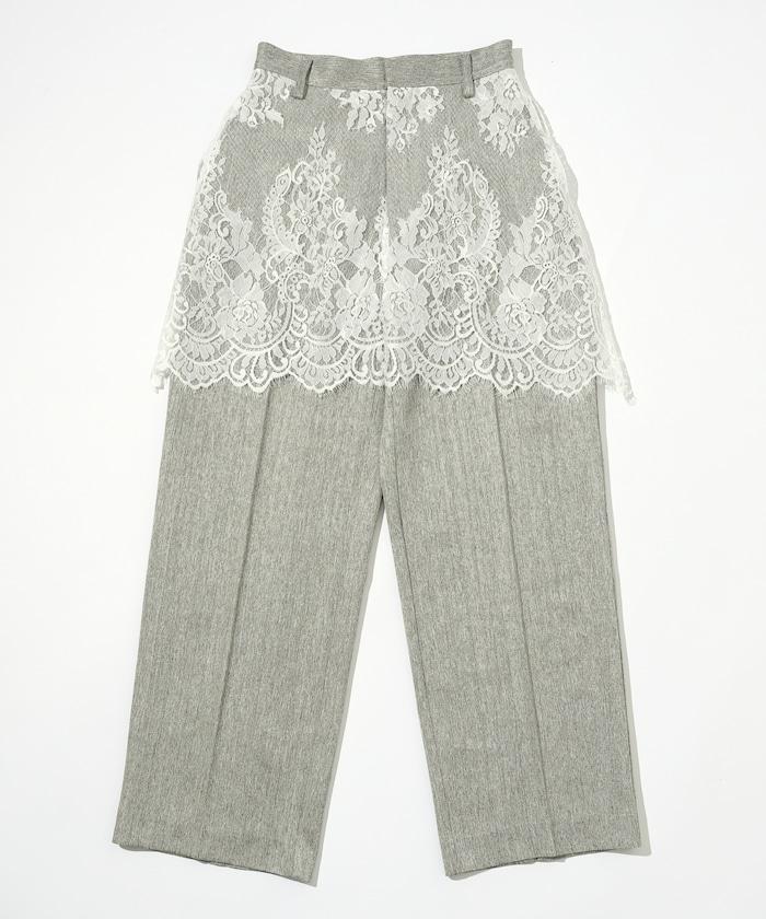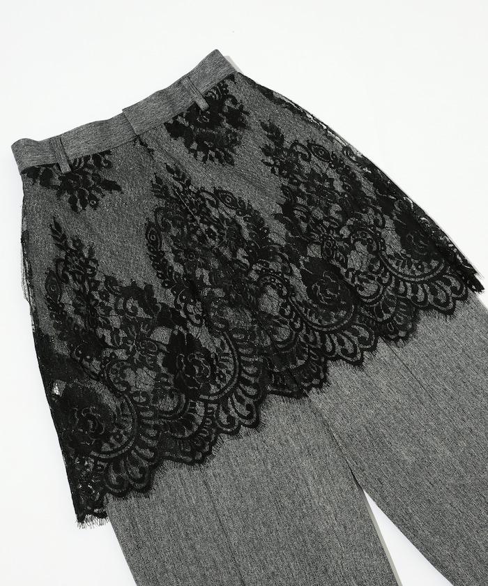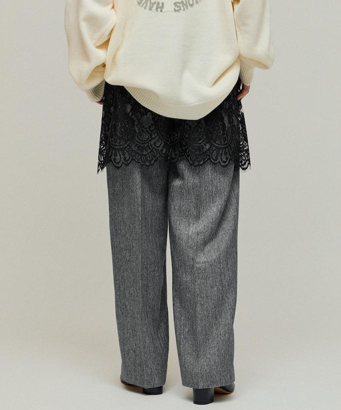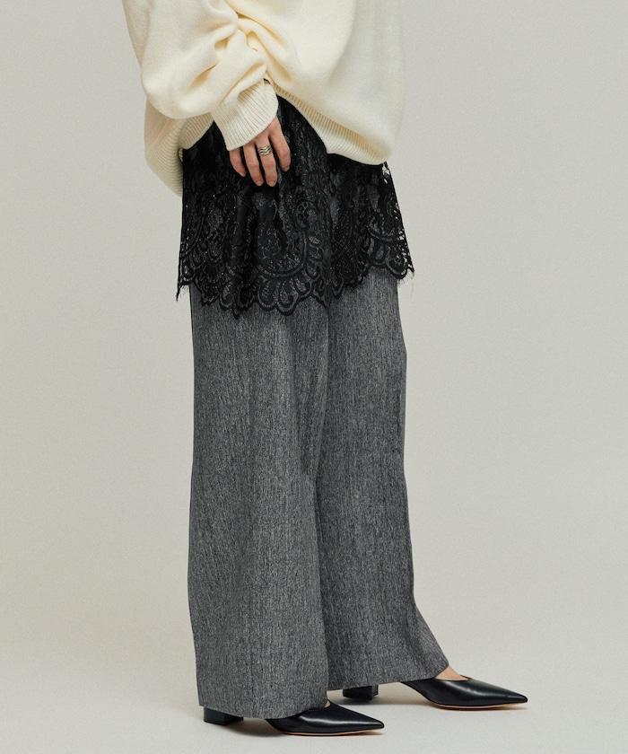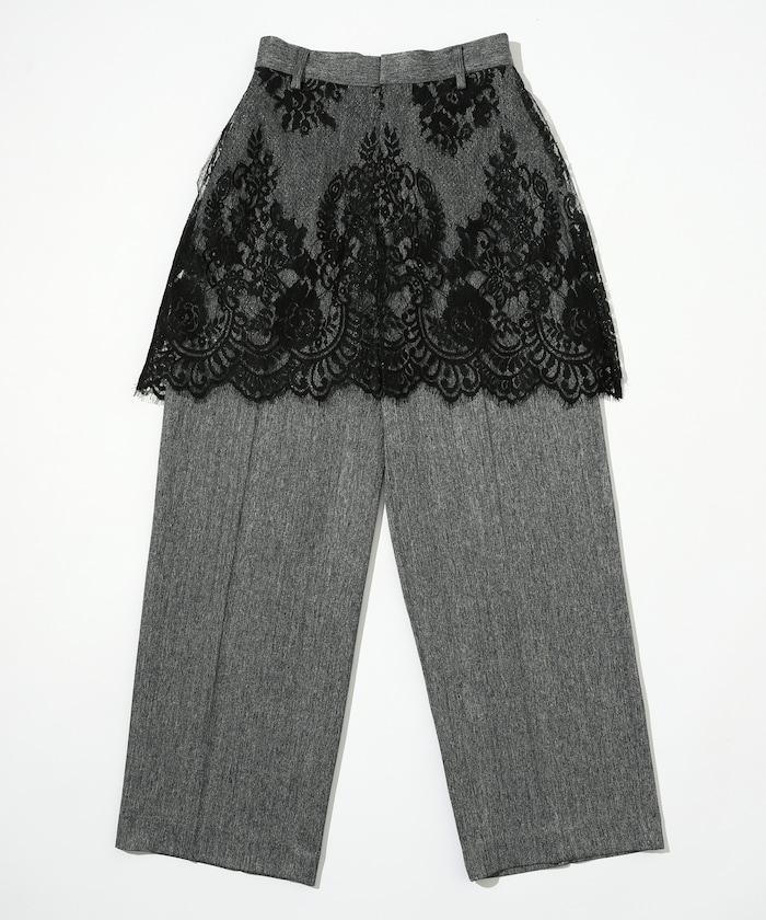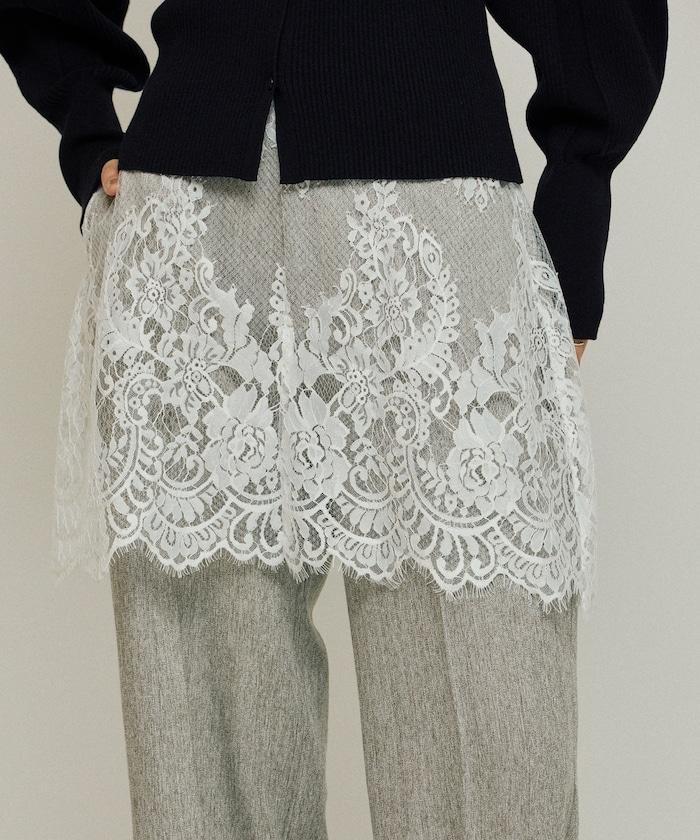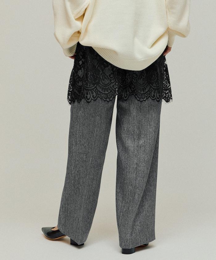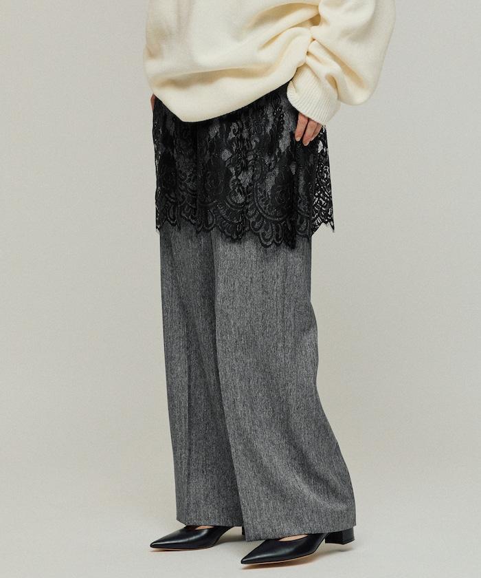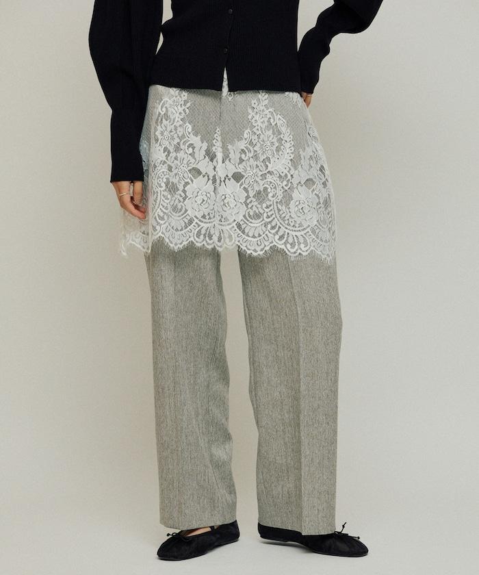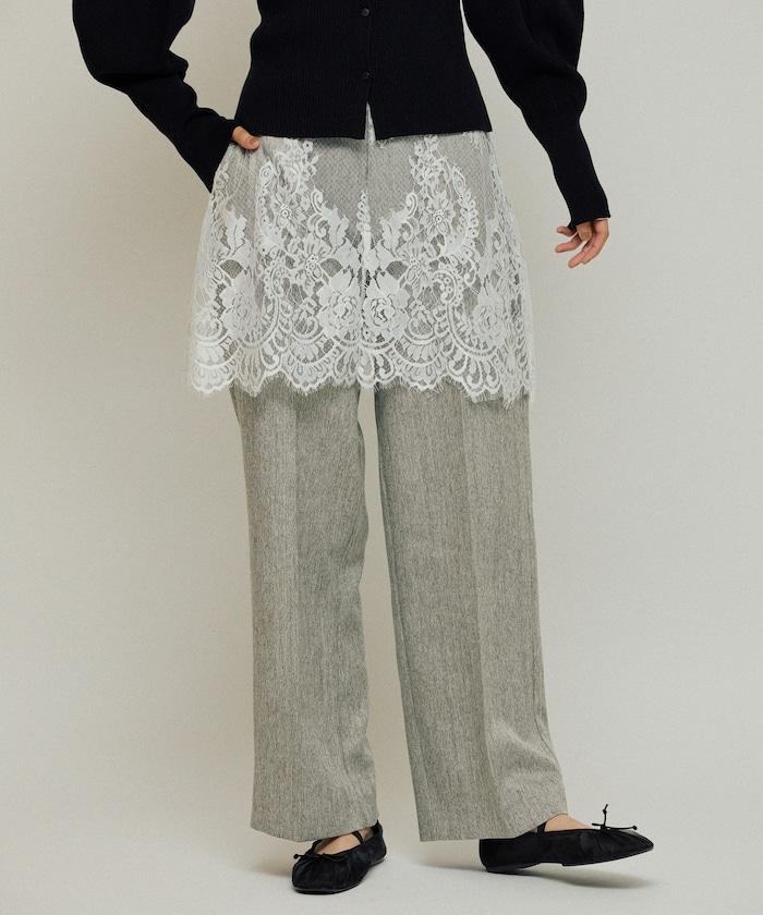 蕾絲拼接層疊長褲 / 中線壓褶寬鬆長褲