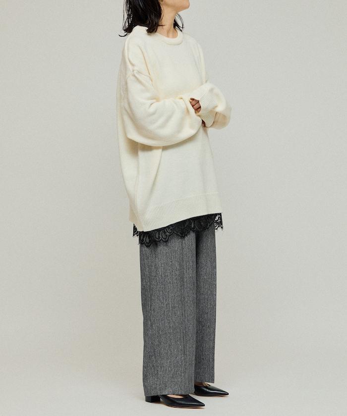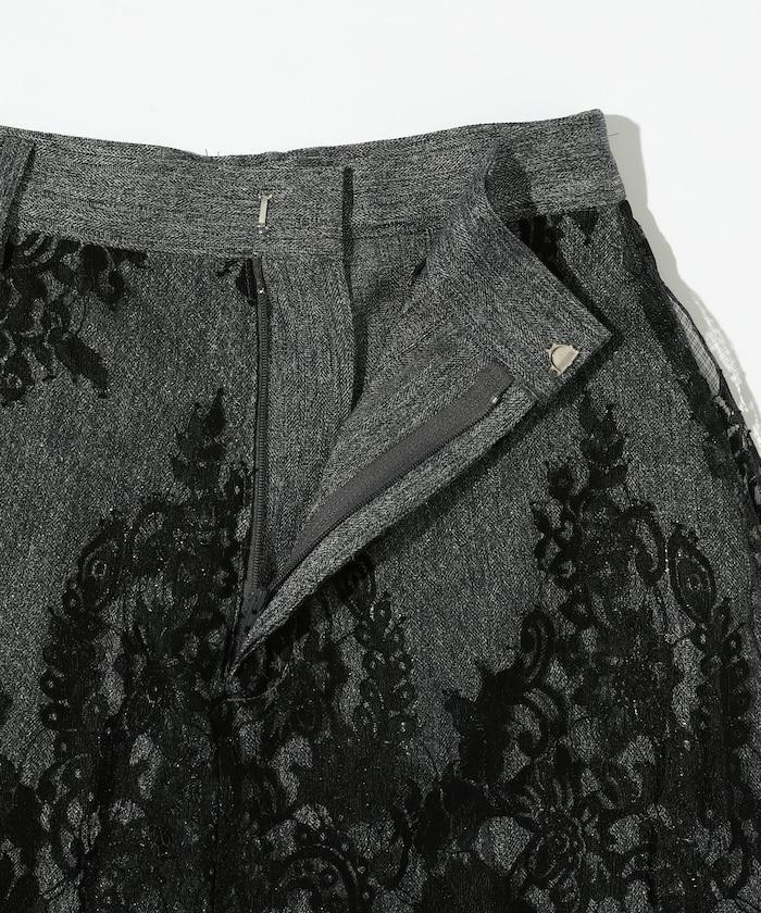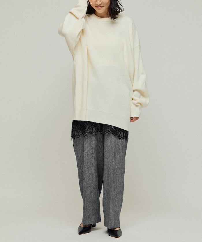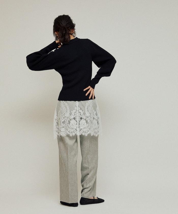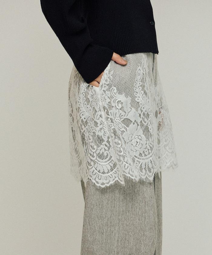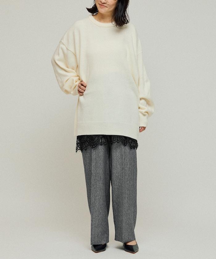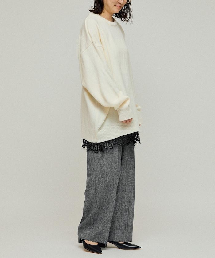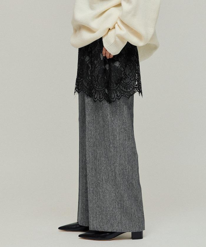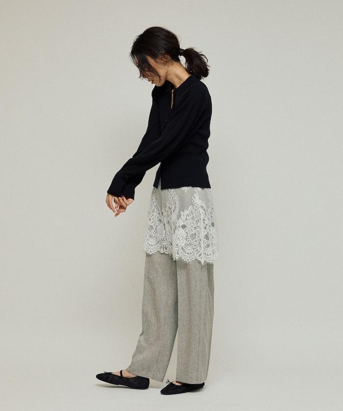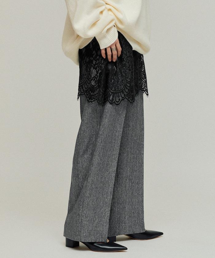 蕾絲拼接層疊長褲 / 中線壓褶寬鬆長褲