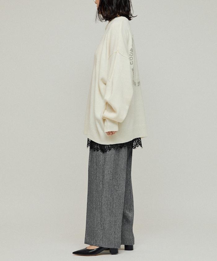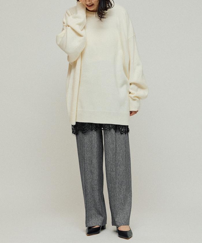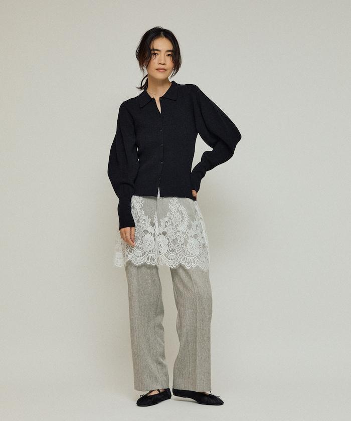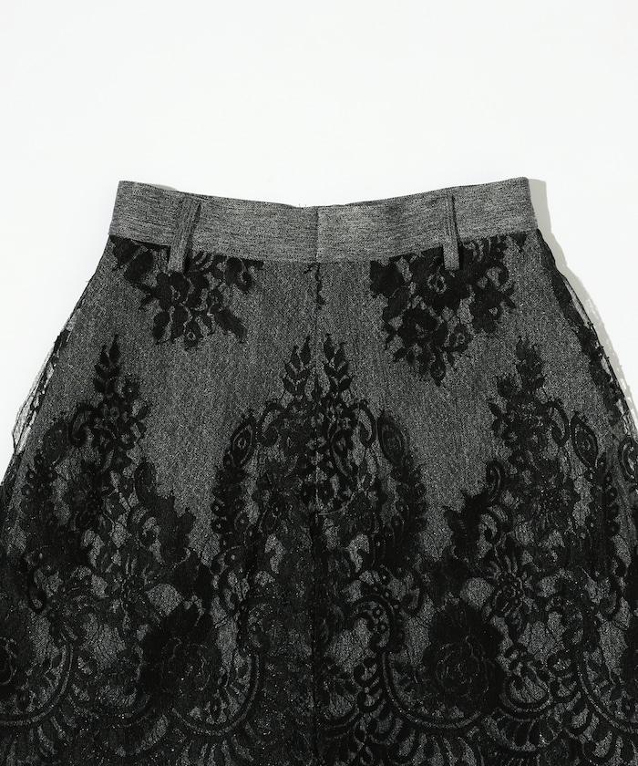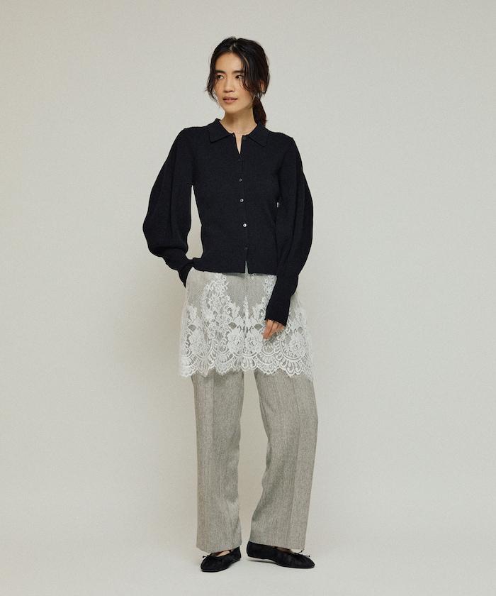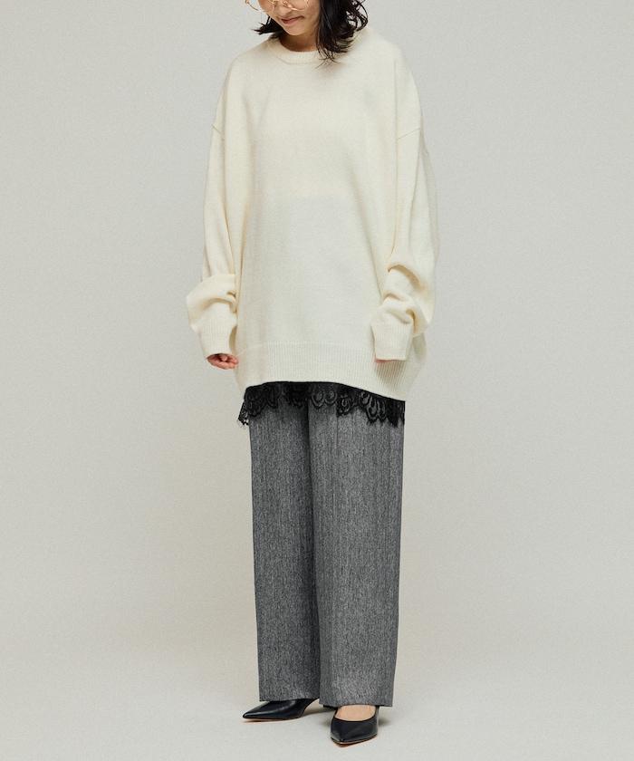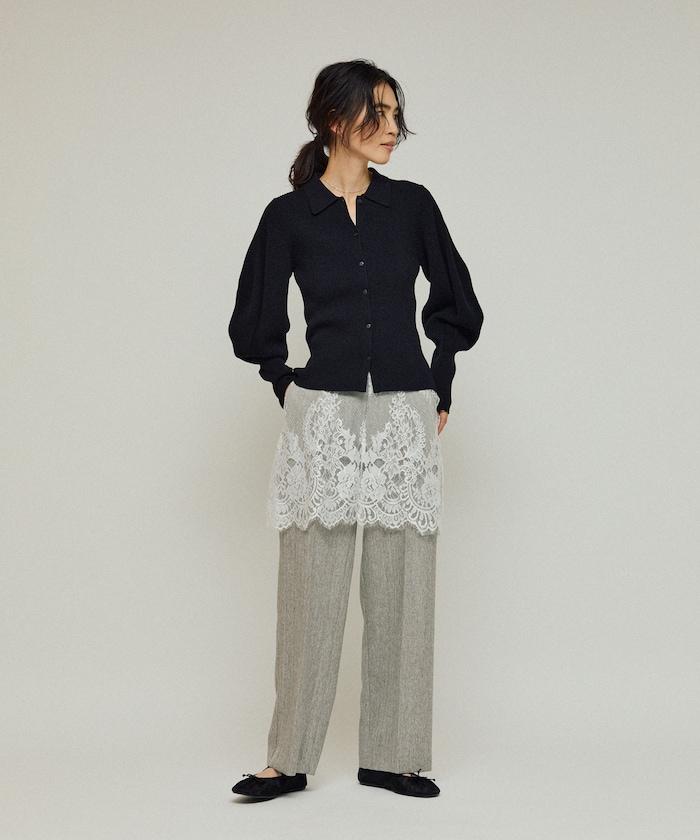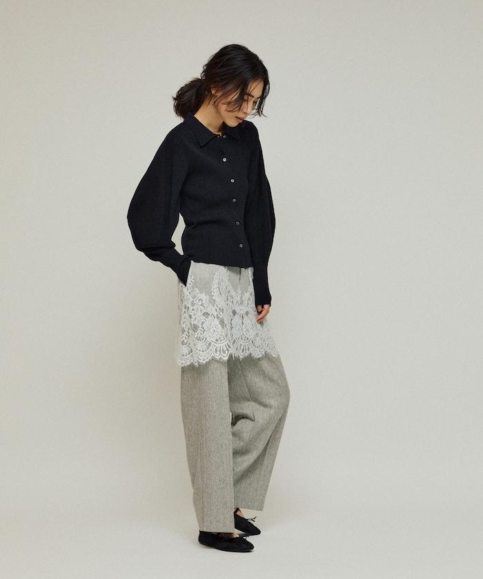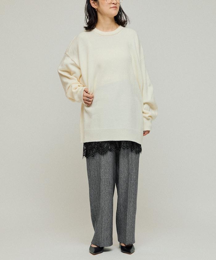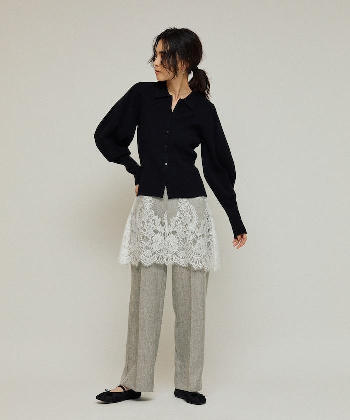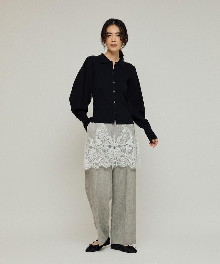 蕾絲拼接層疊長褲 / 中線壓褶寬鬆長褲