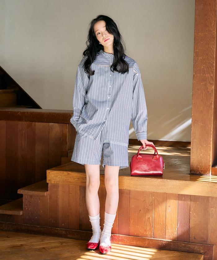 帶狀衣領增添了男人味,避免了襯衫過於甜美。