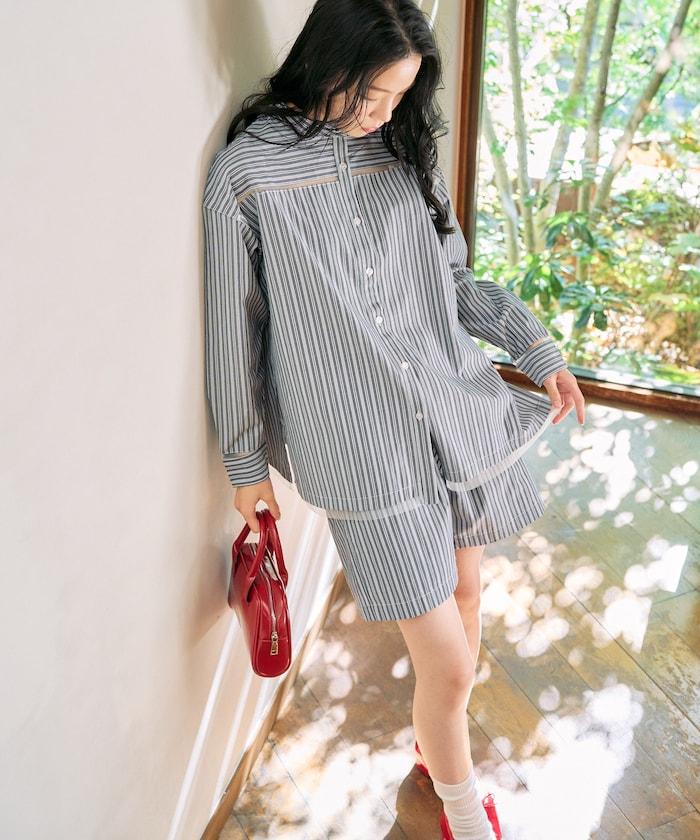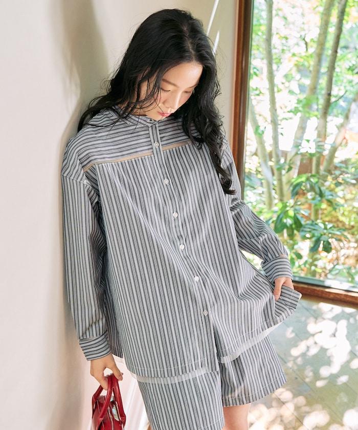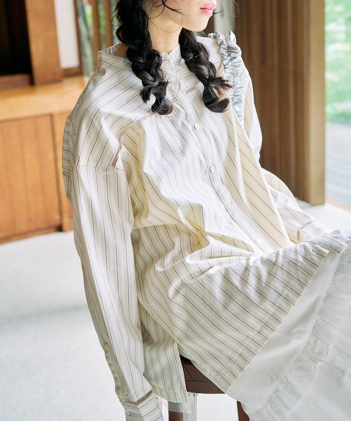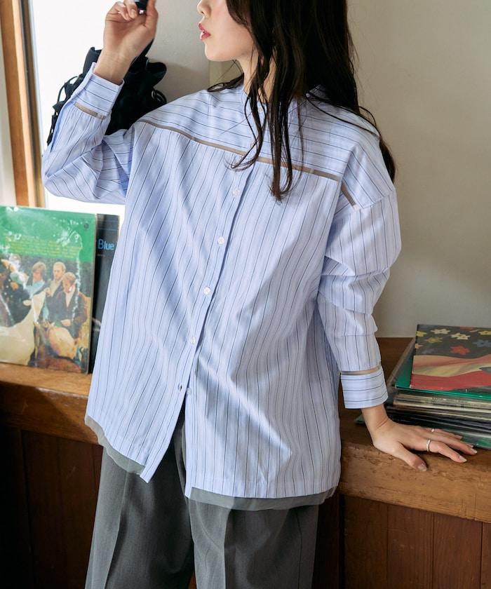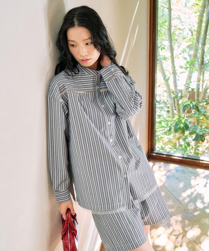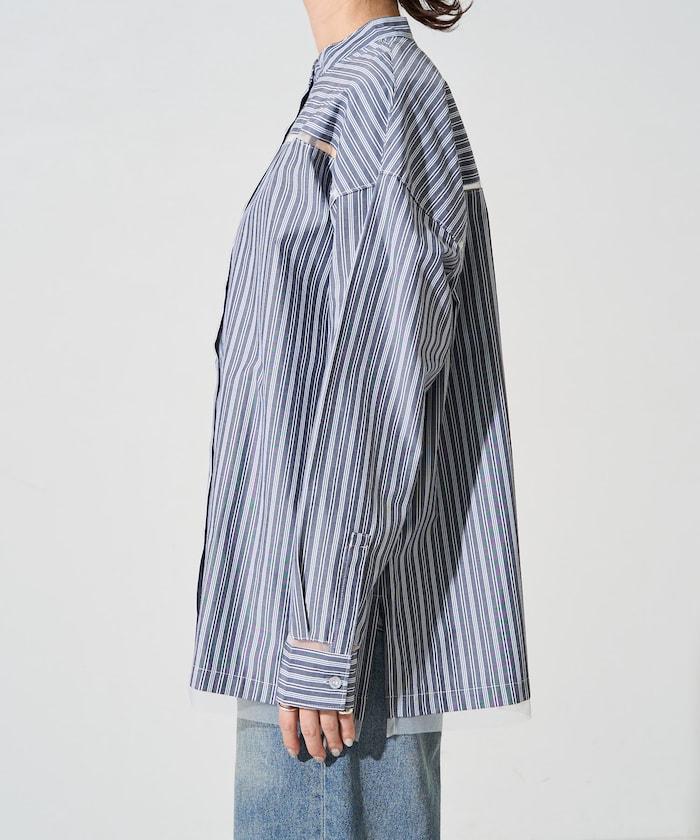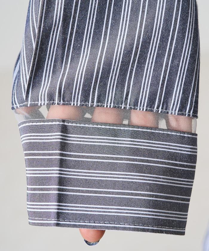 帶薄紗轉換的條紋襯衫(與設置兼容)