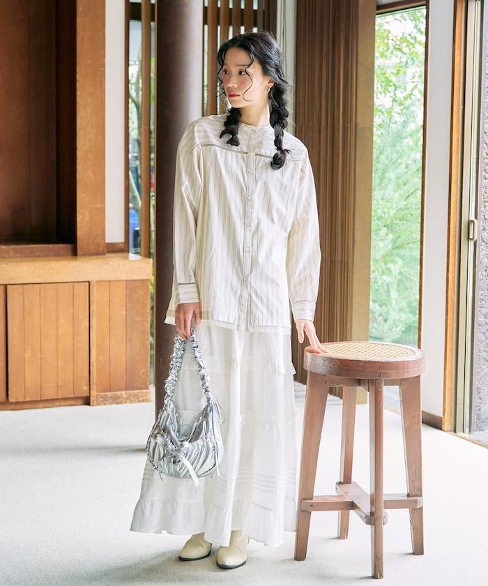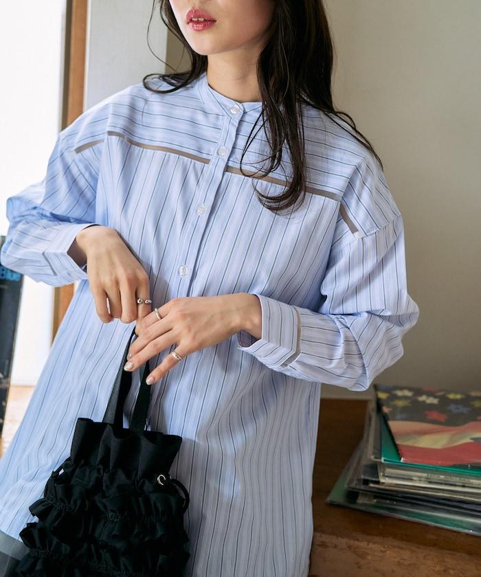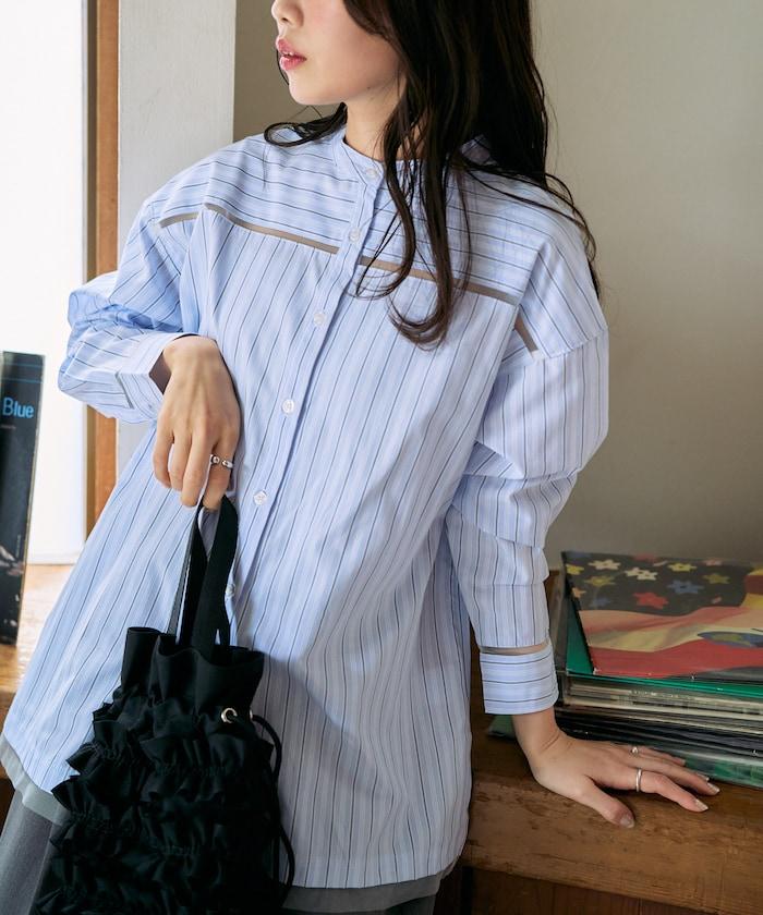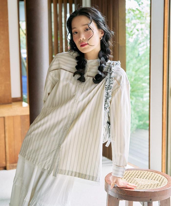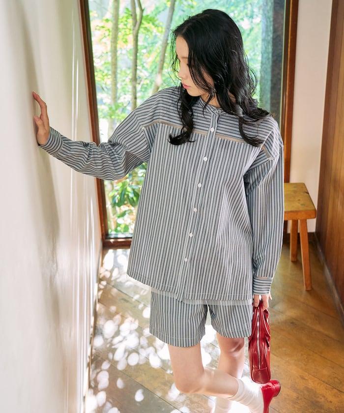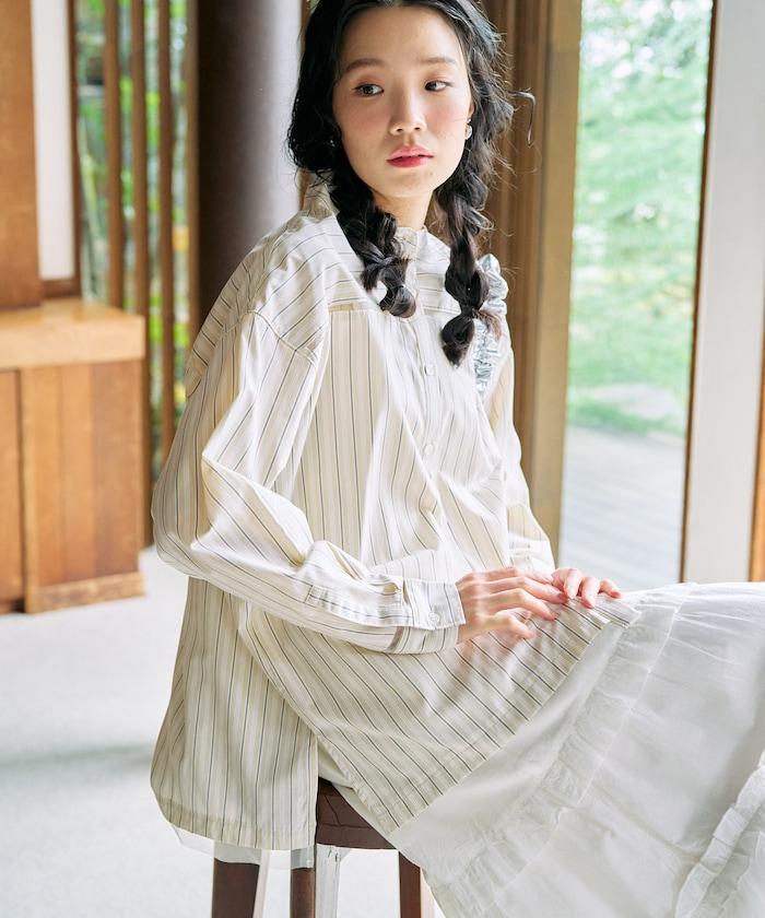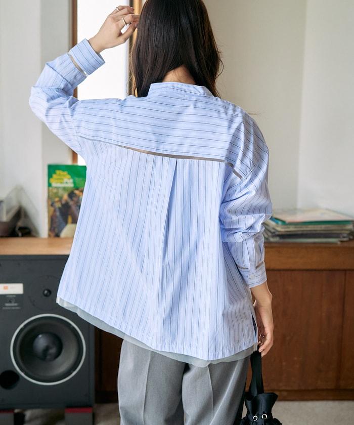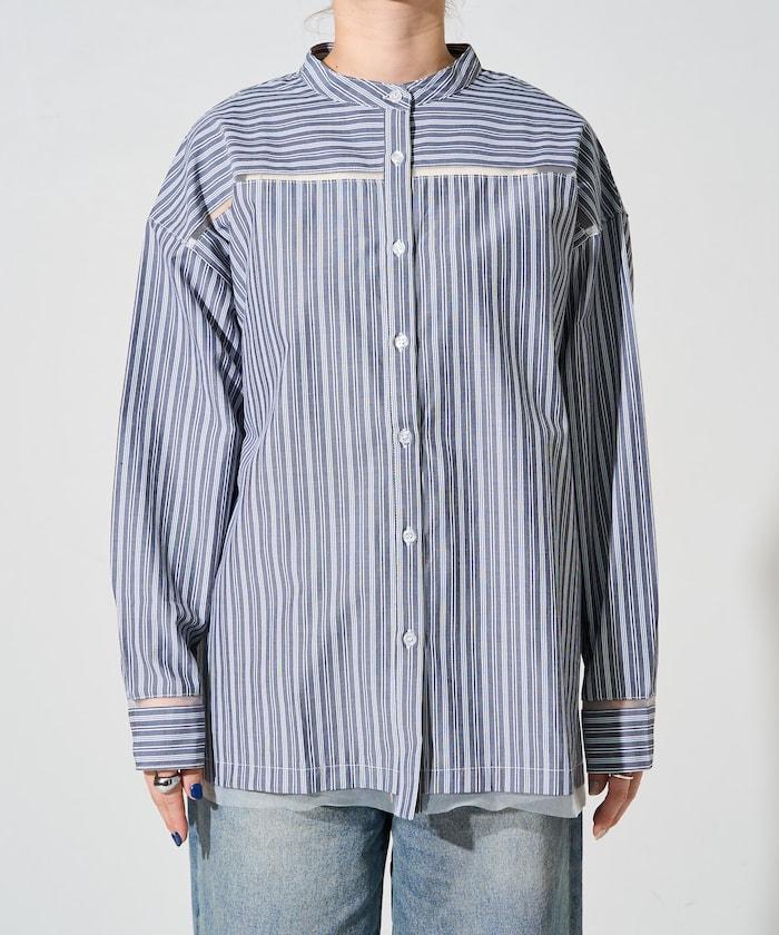 帶薄紗轉換的條紋襯衫(與設置兼容)