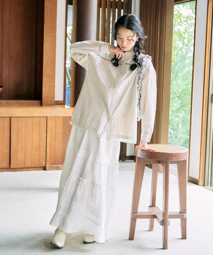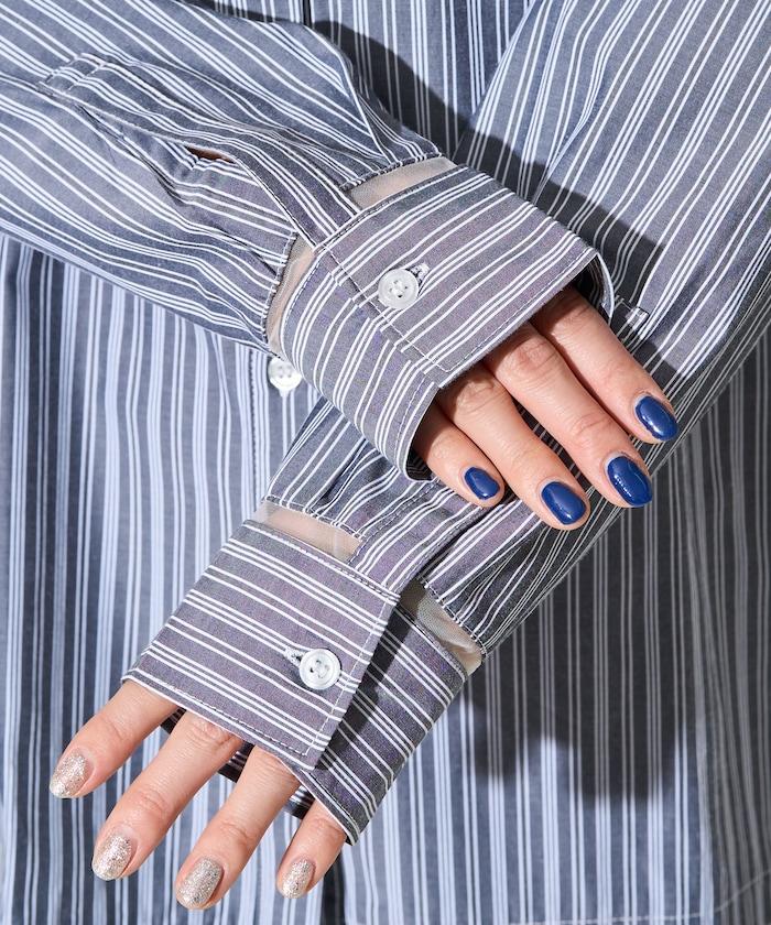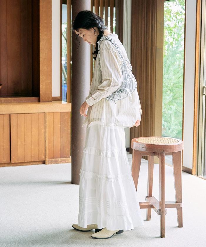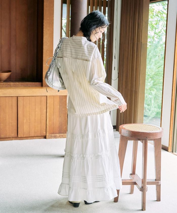 這款單品的魅力在於,即使是牛仔褲等休閒單品,與條紋和薄紗搭配在一起也會顯得非常整潔。