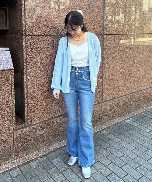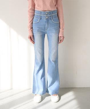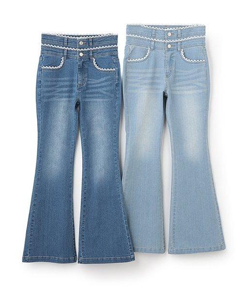 蕾絲拼接牛仔喇叭褲【韓國時尚】
