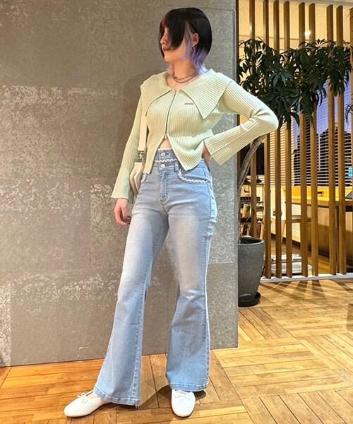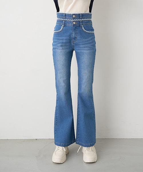 薩克斯風和淺藍色的雙色搭配蕾絲點綴,讓這條褲子的設計充滿春天的氣息。