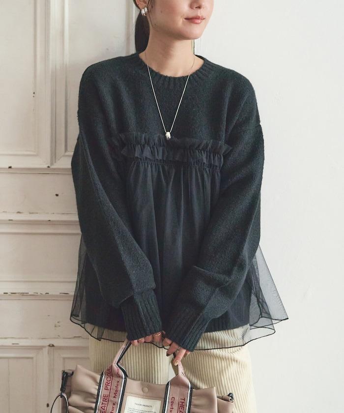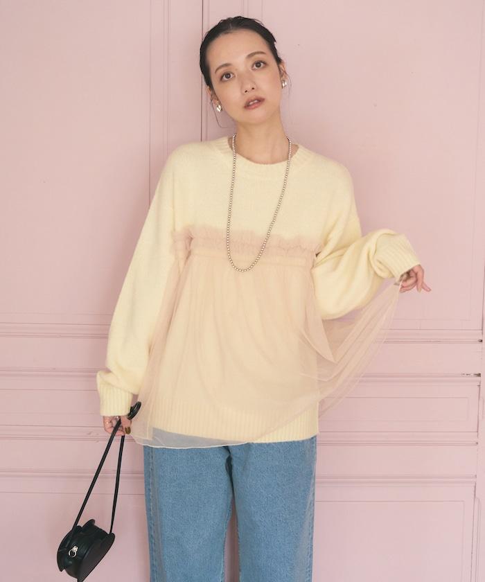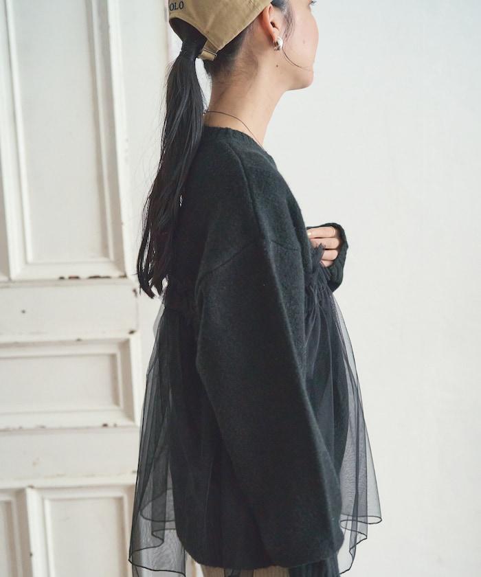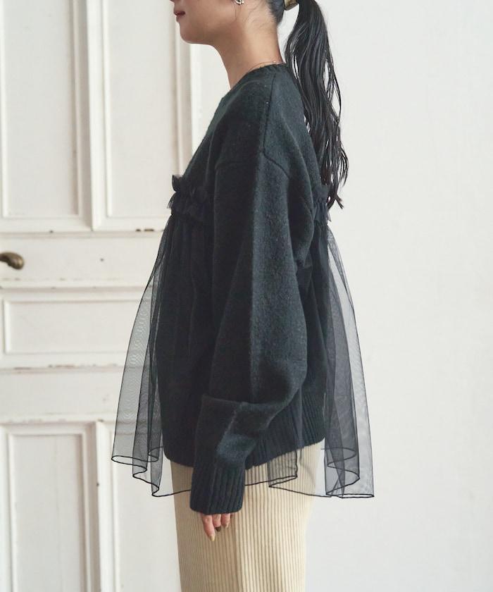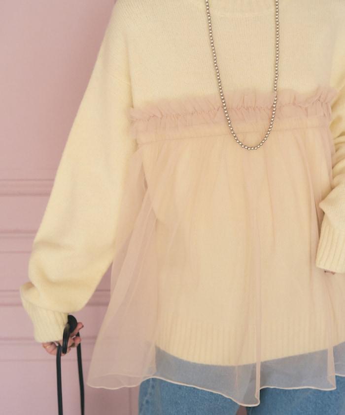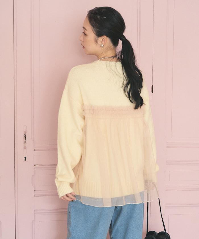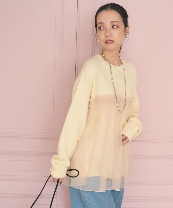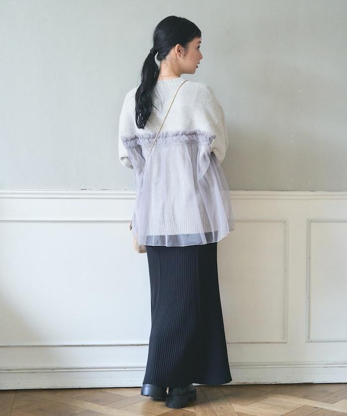 柔軟輕盈的針織衫採用薄紗對接設計。