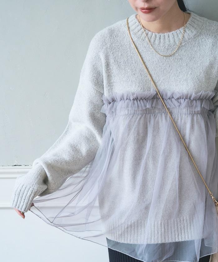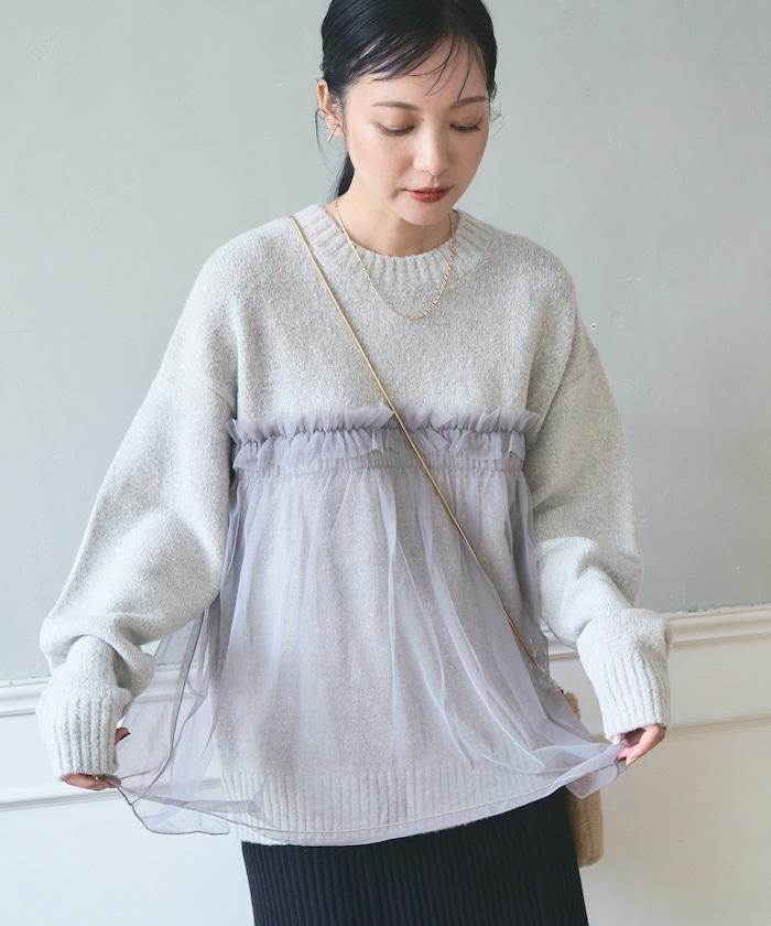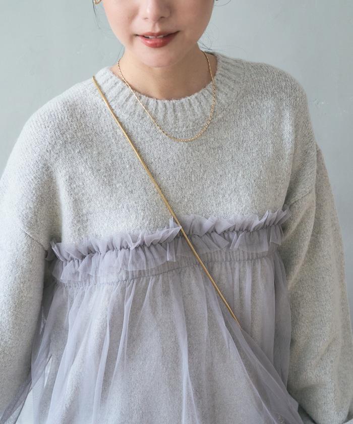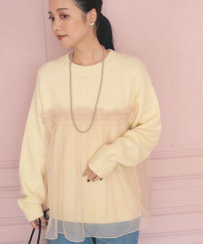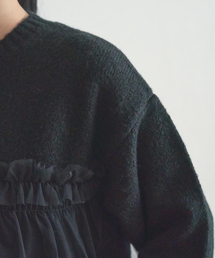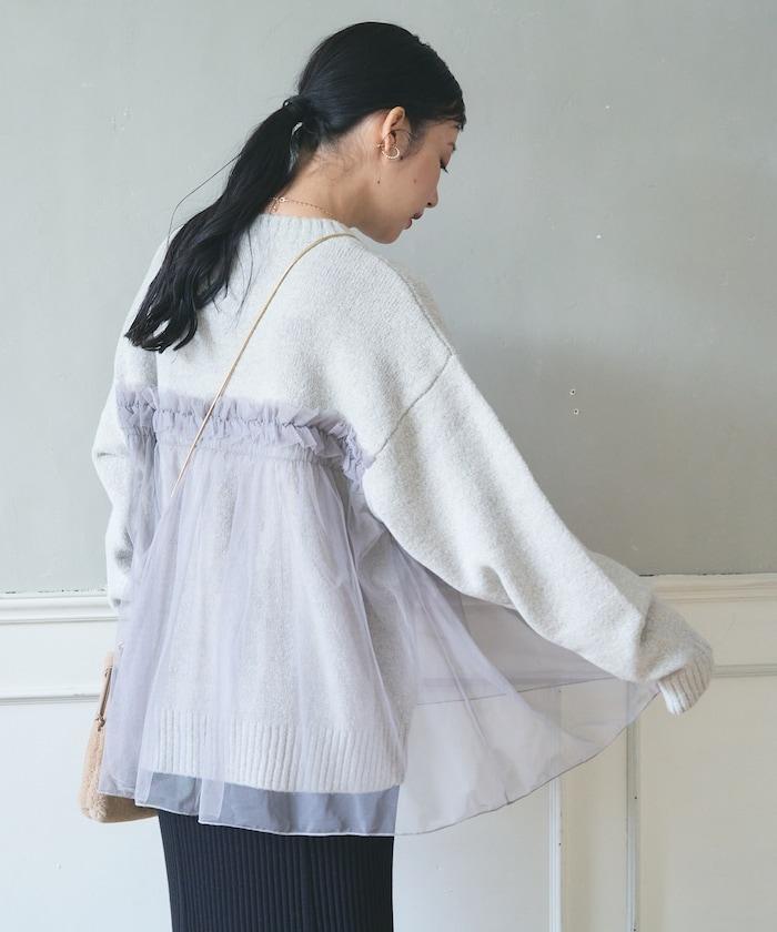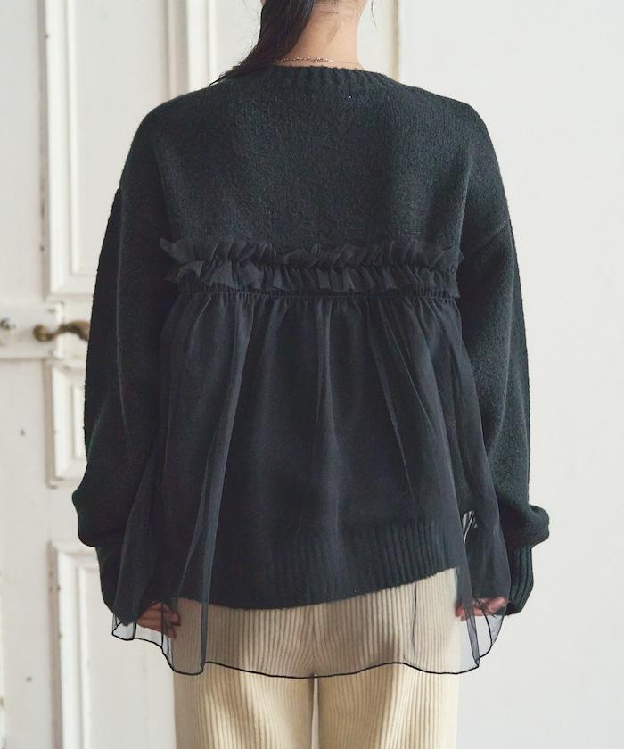 柔軟輕盈的針織衫採用薄紗對接設計。