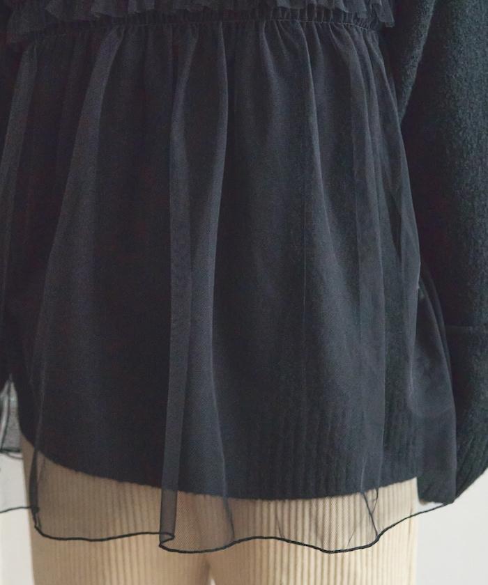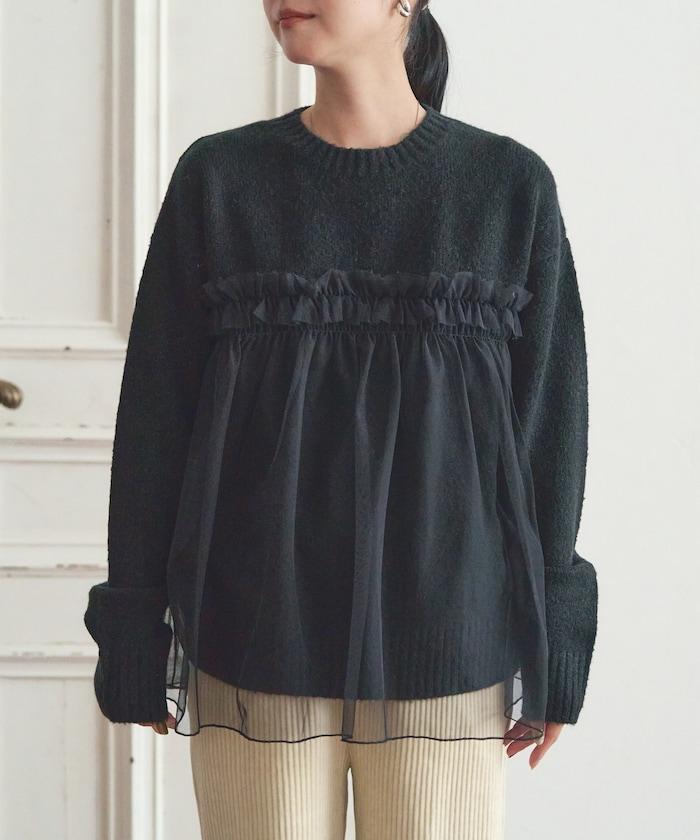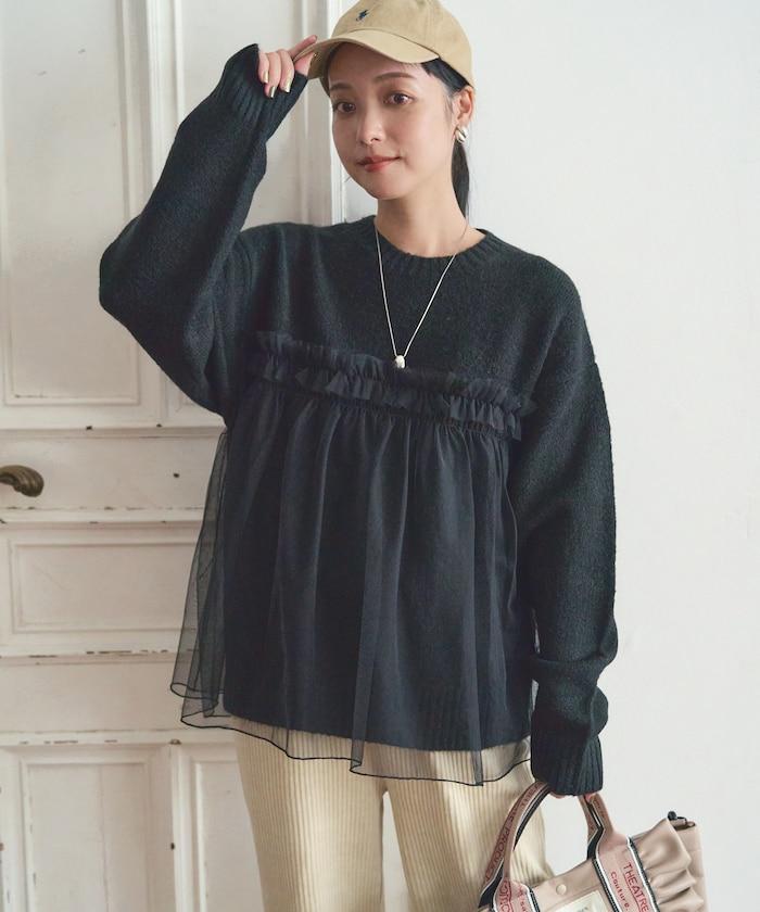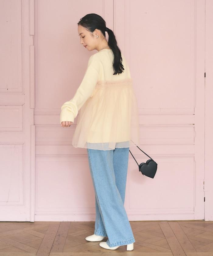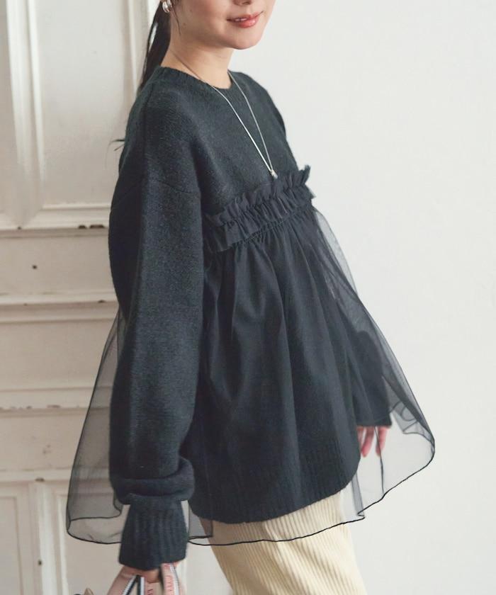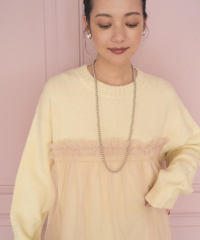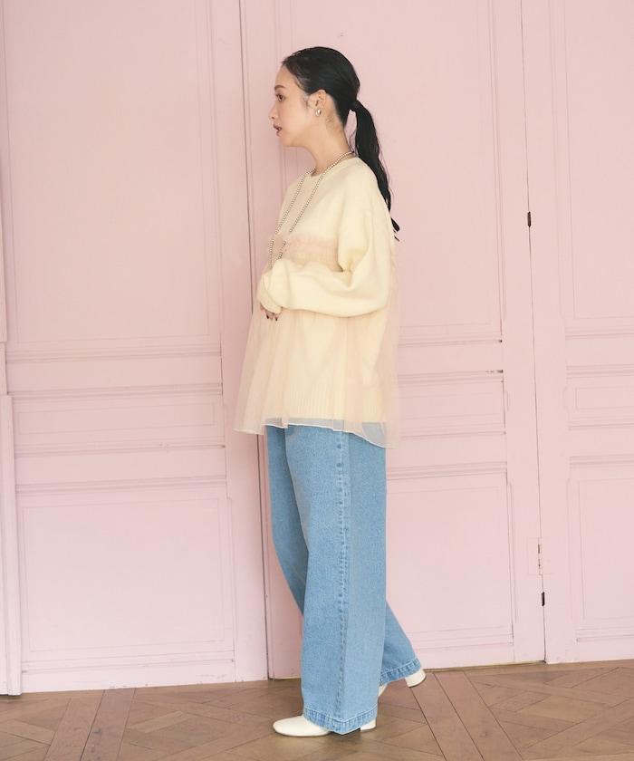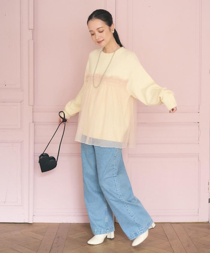 柔軟輕盈的針織衫採用薄紗對接設計。