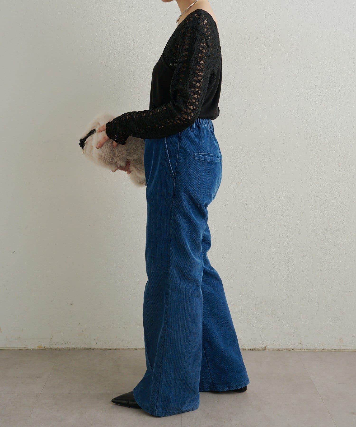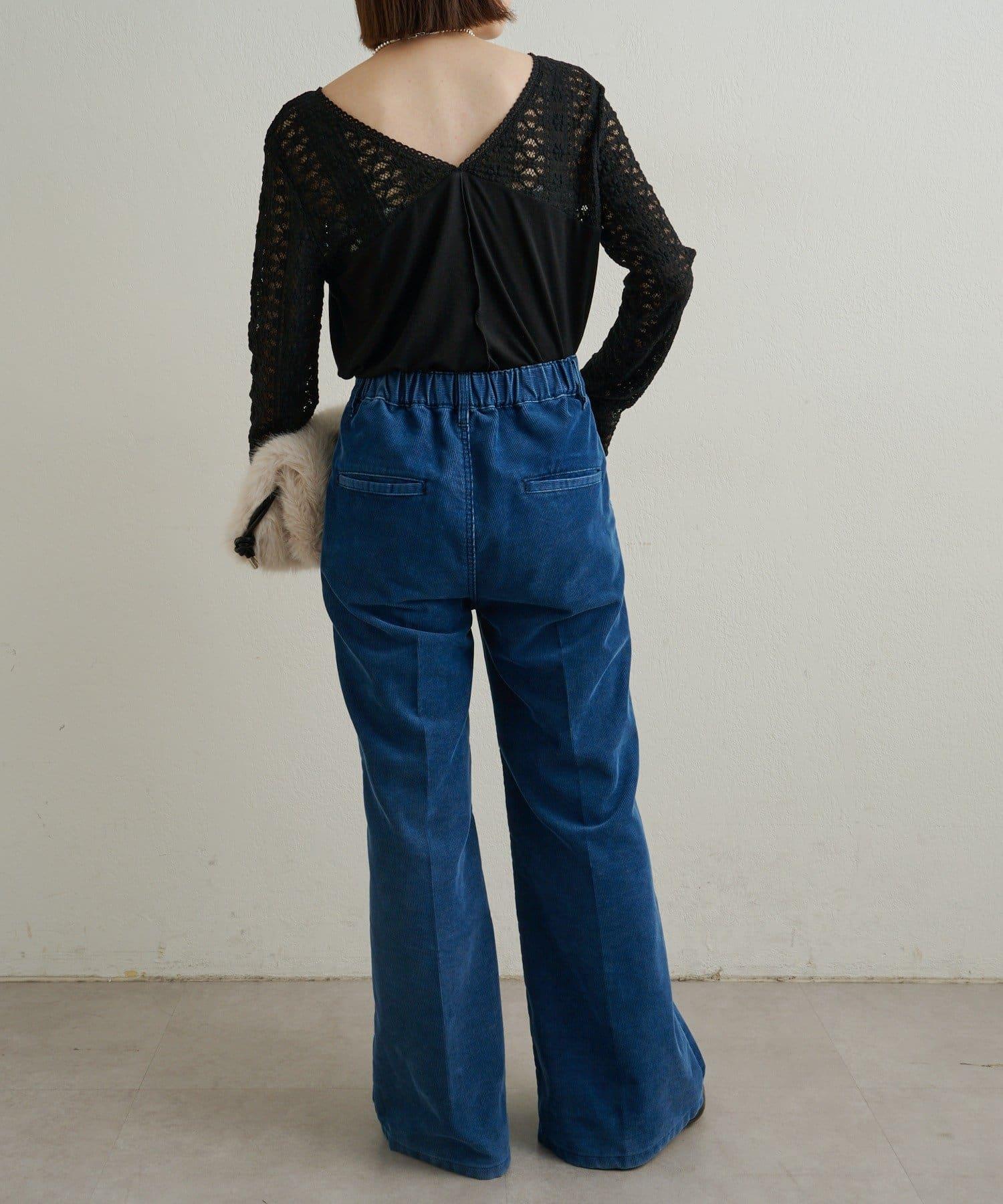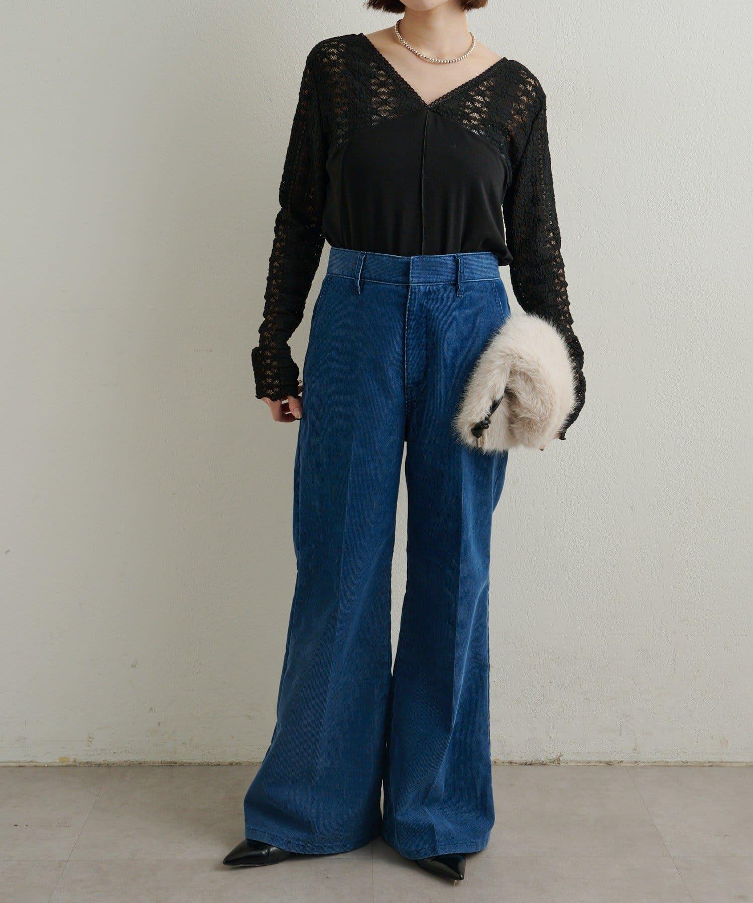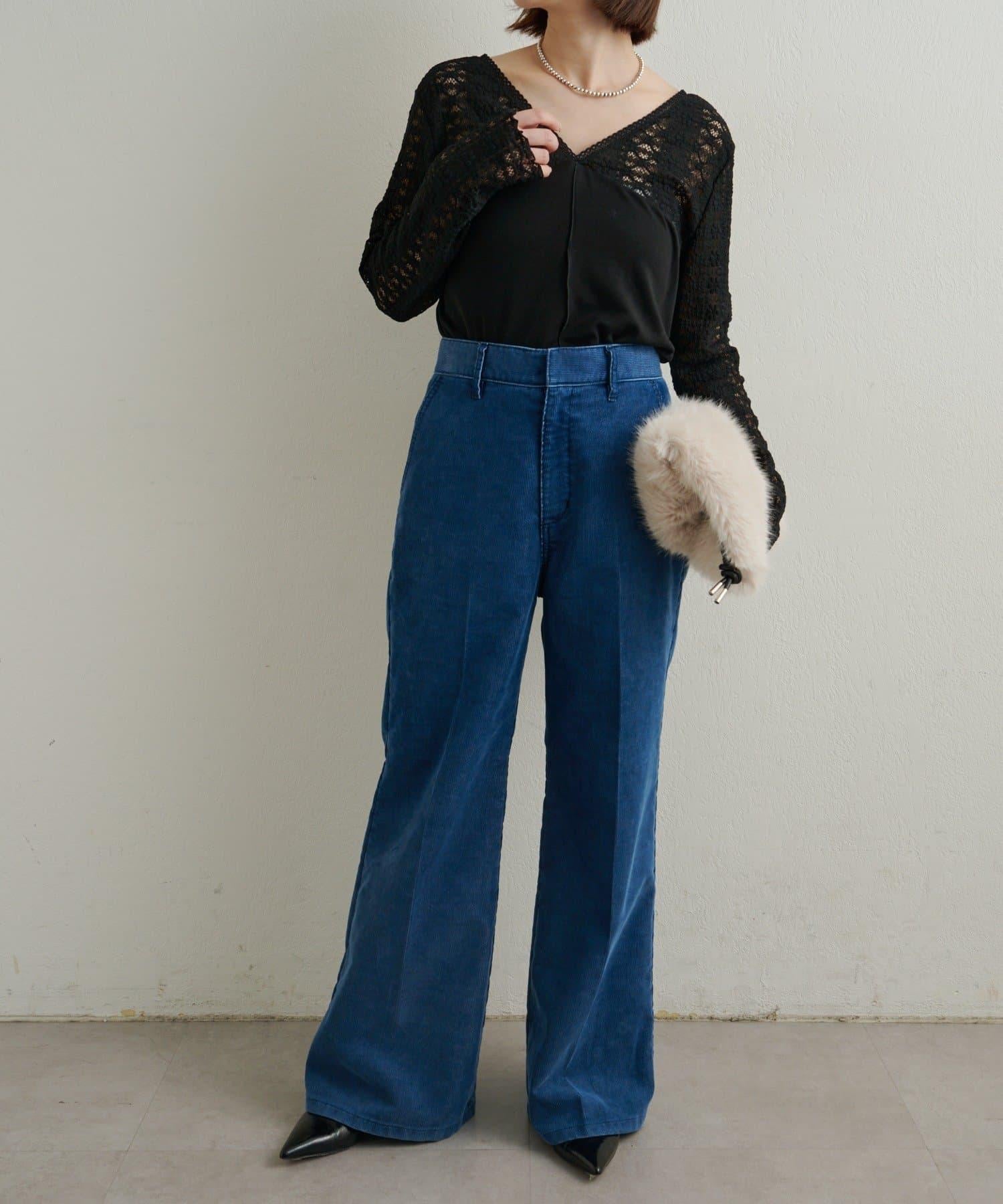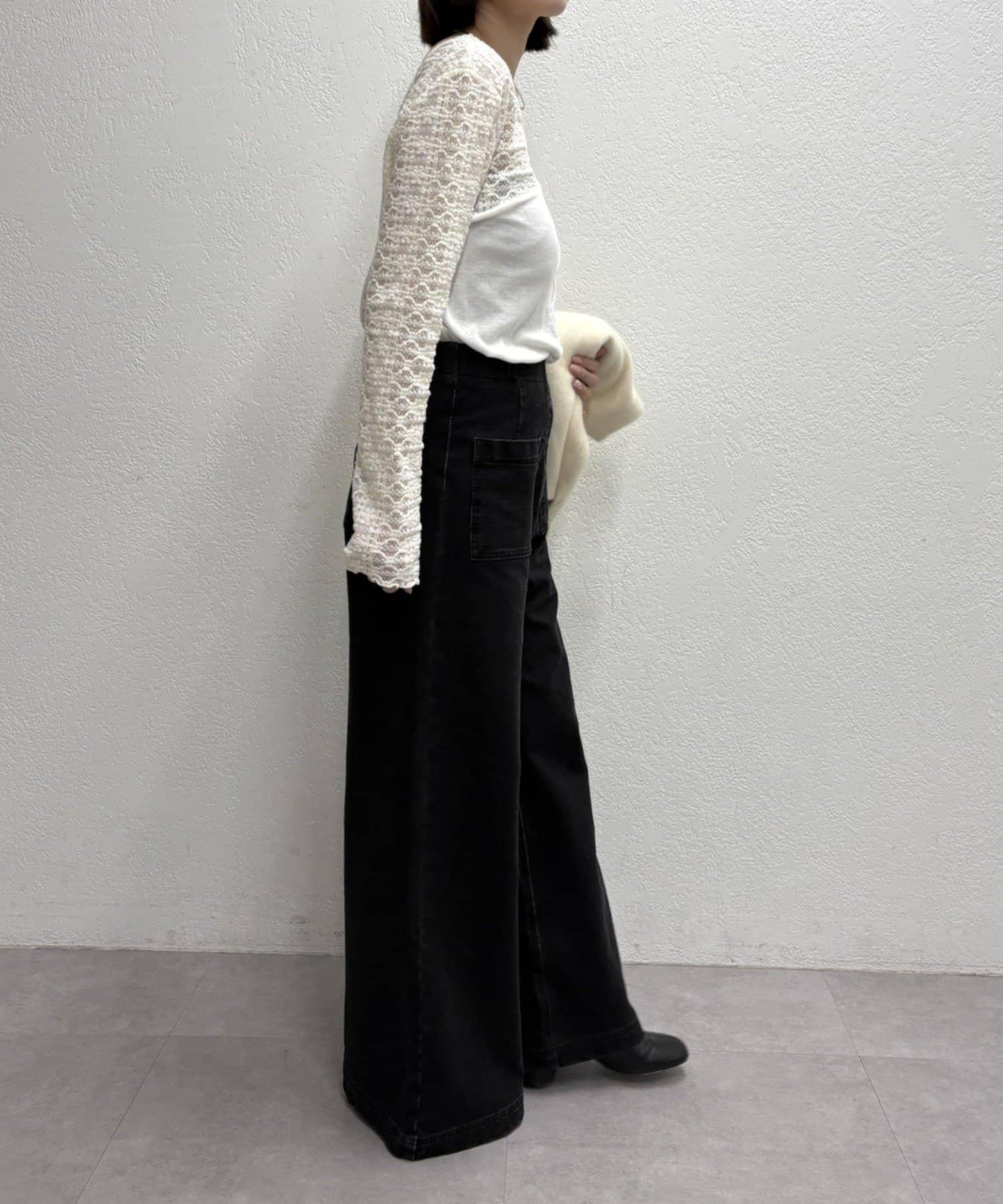 頸部的蕾絲材質為這款針織縫製的針織衫增添了女性氣息。