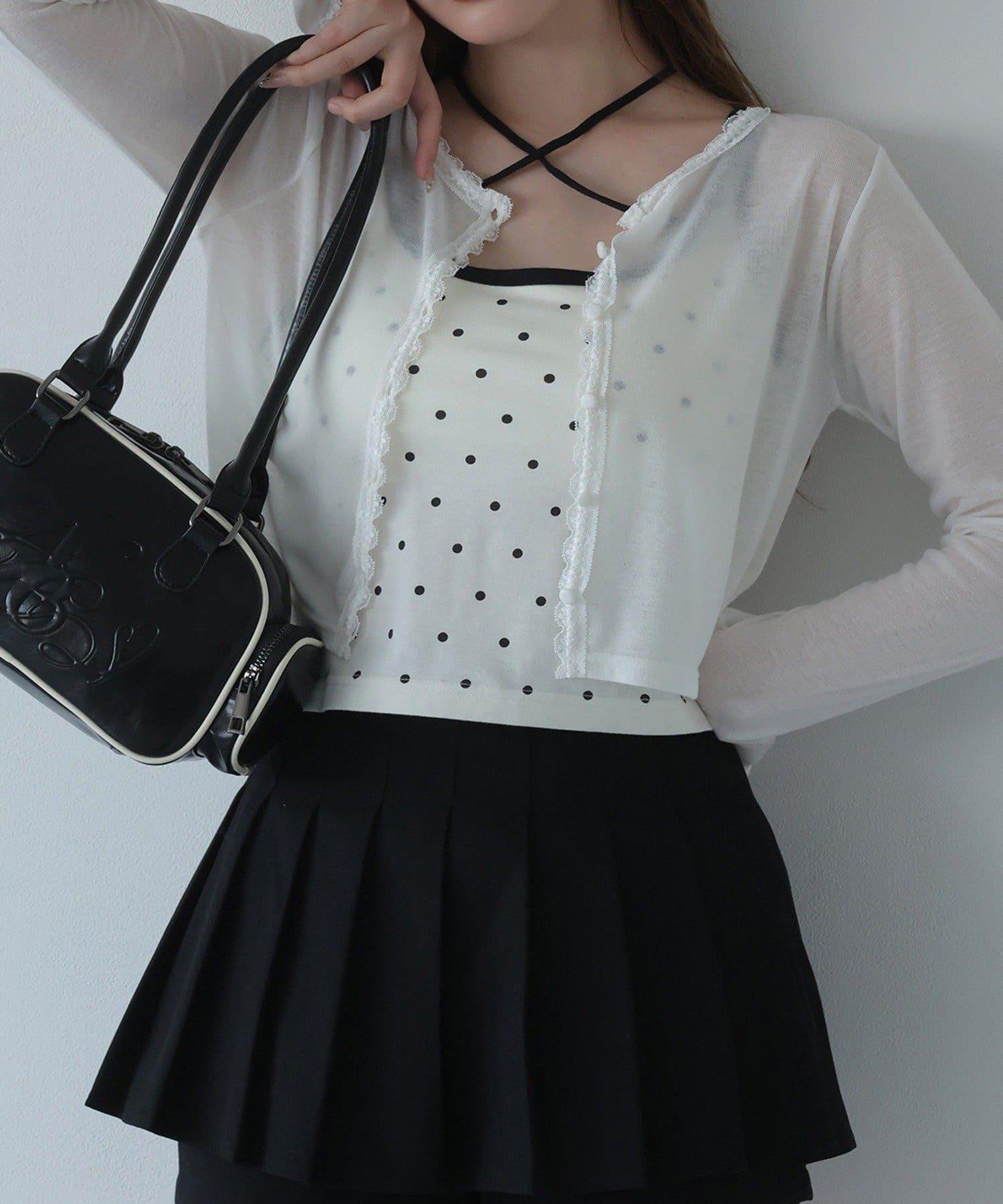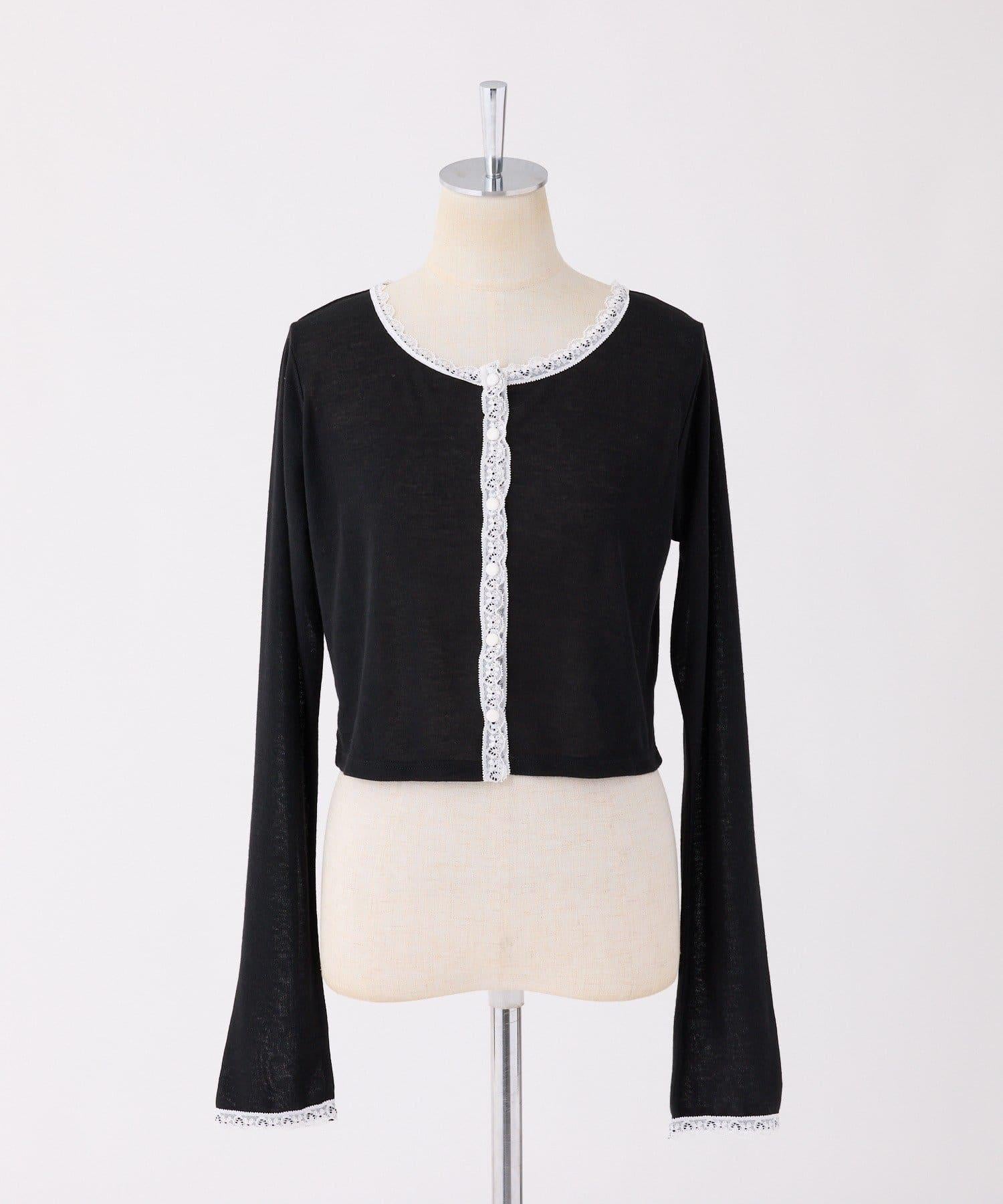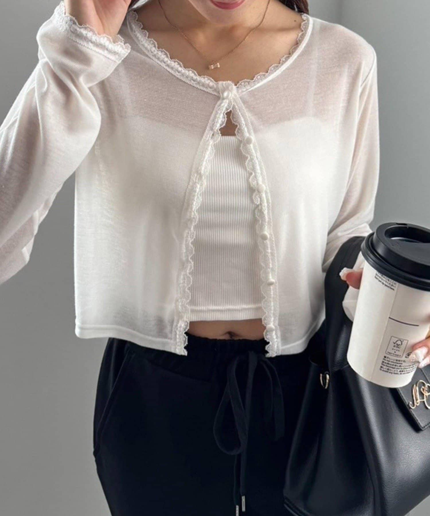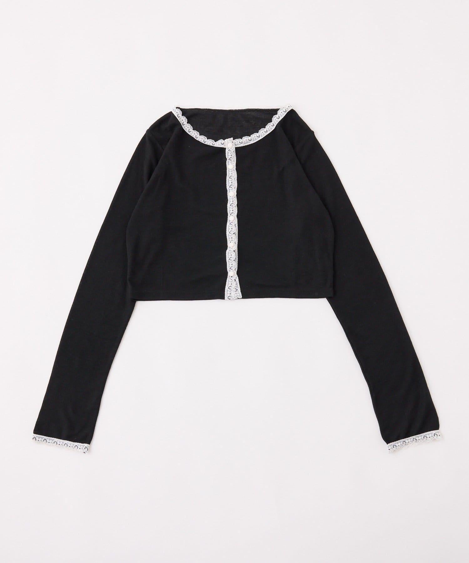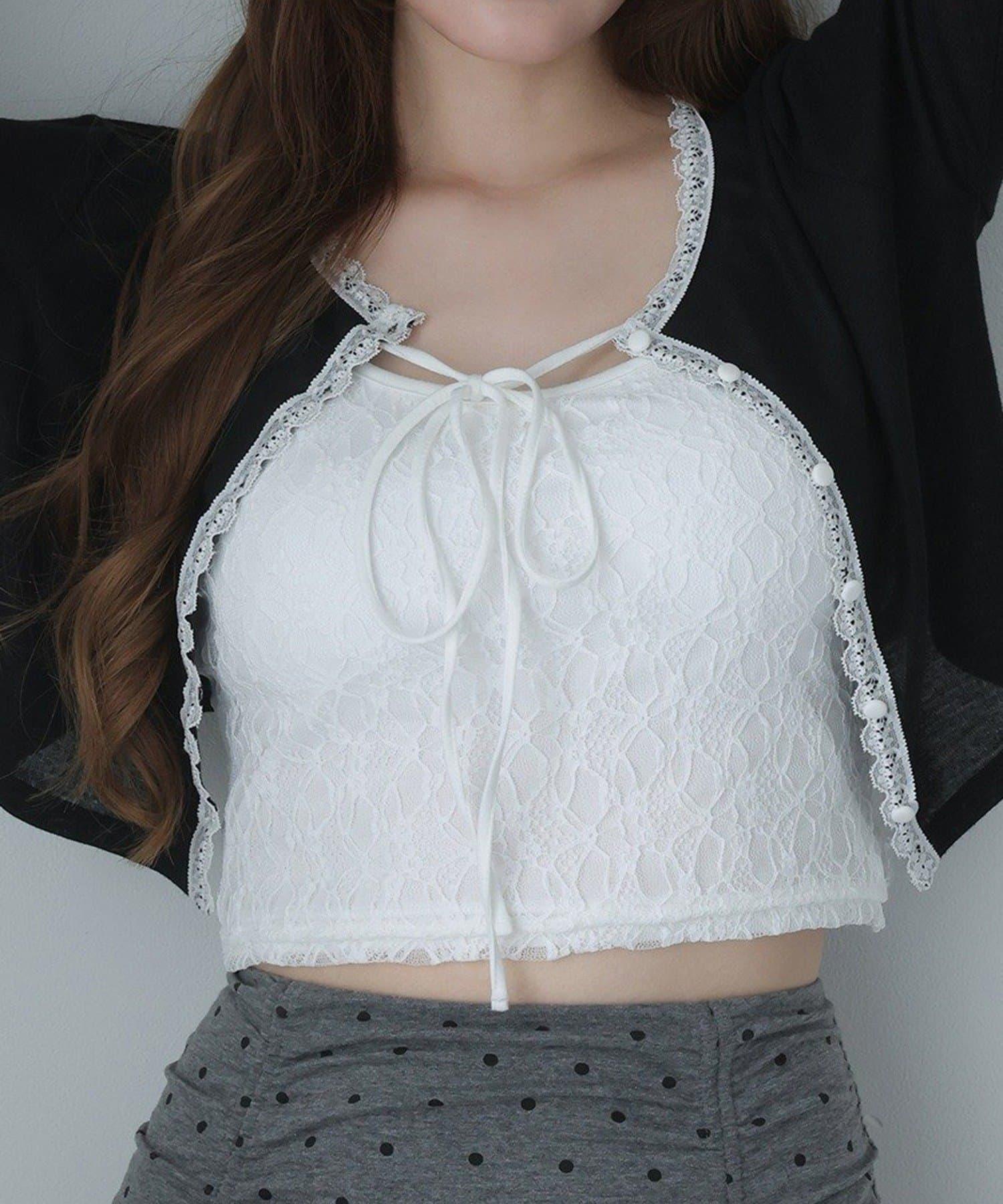 短款剪裁面料開衫,蕾絲花邊增添魅力。