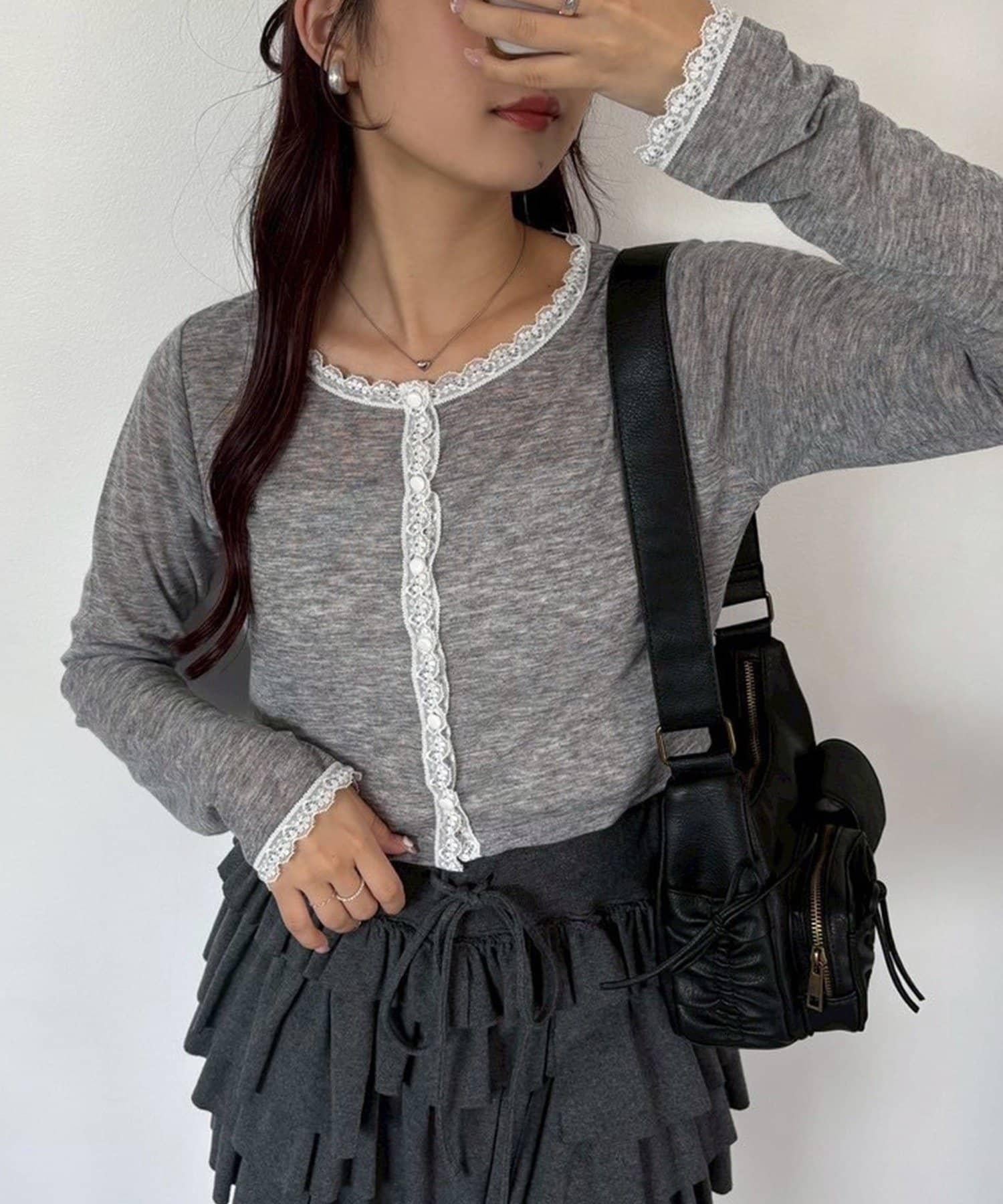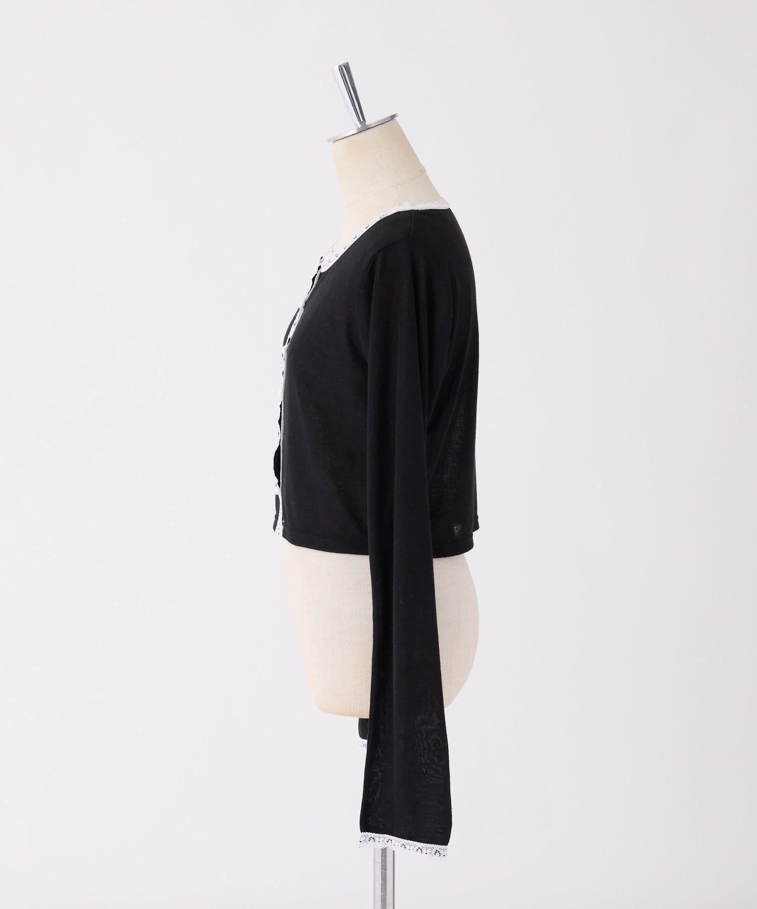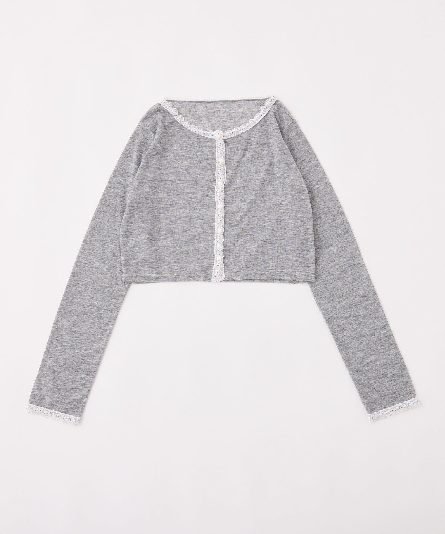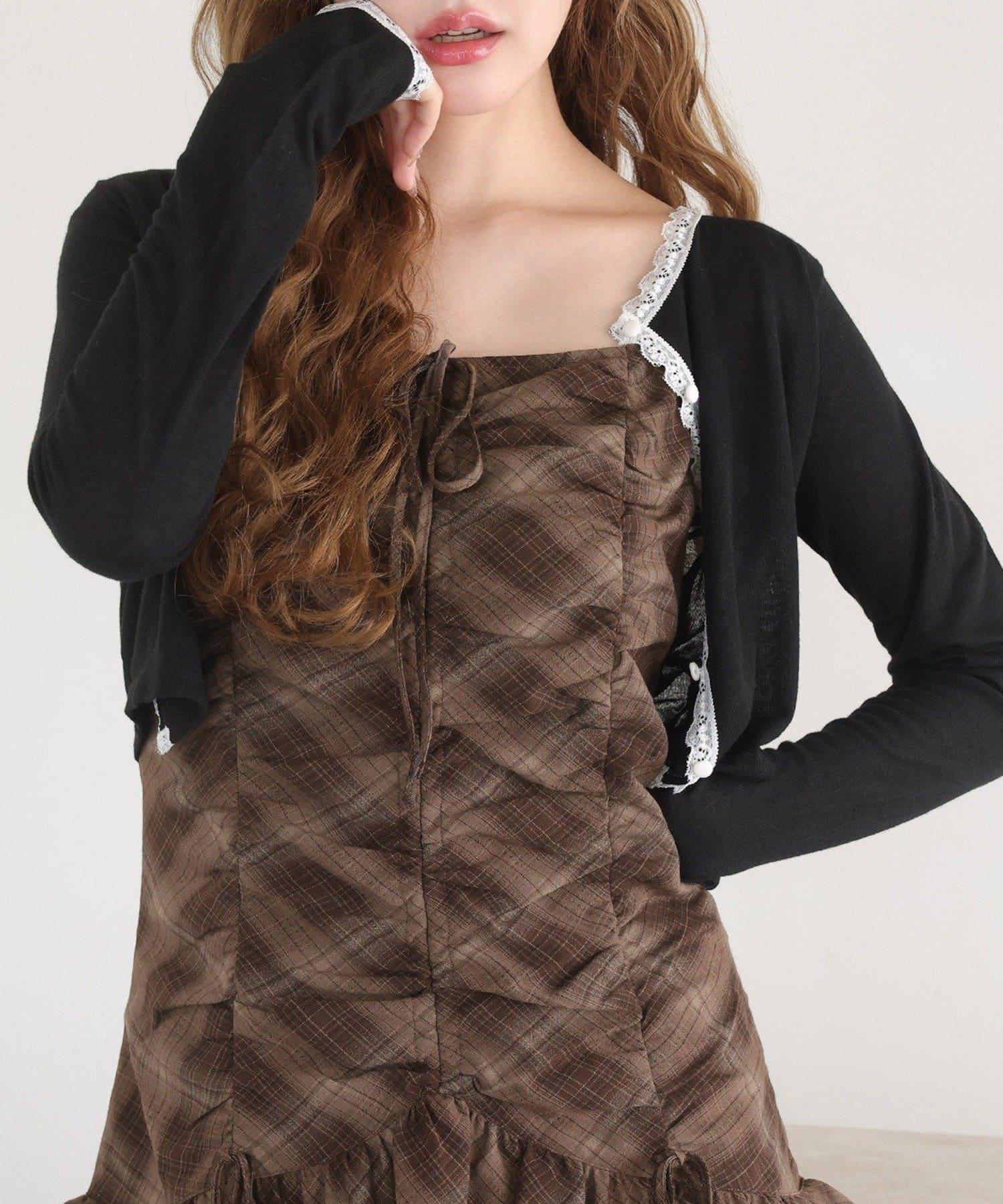 短款剪裁面料開衫,蕾絲花邊增添魅力。
