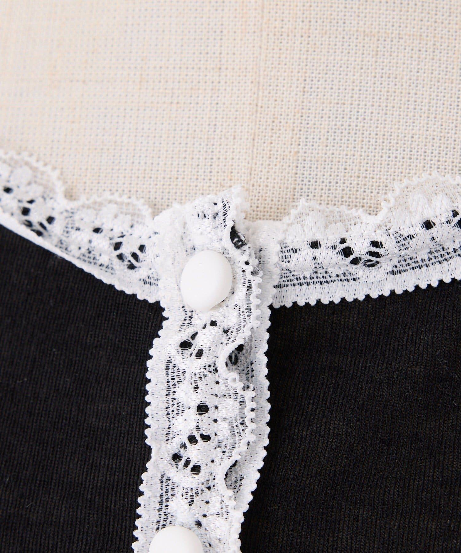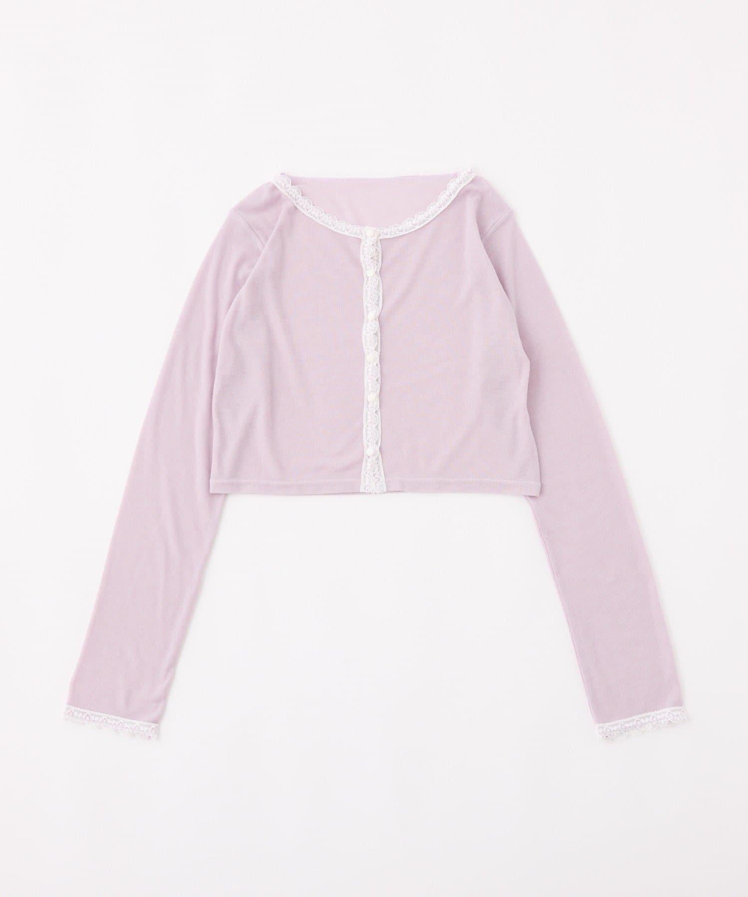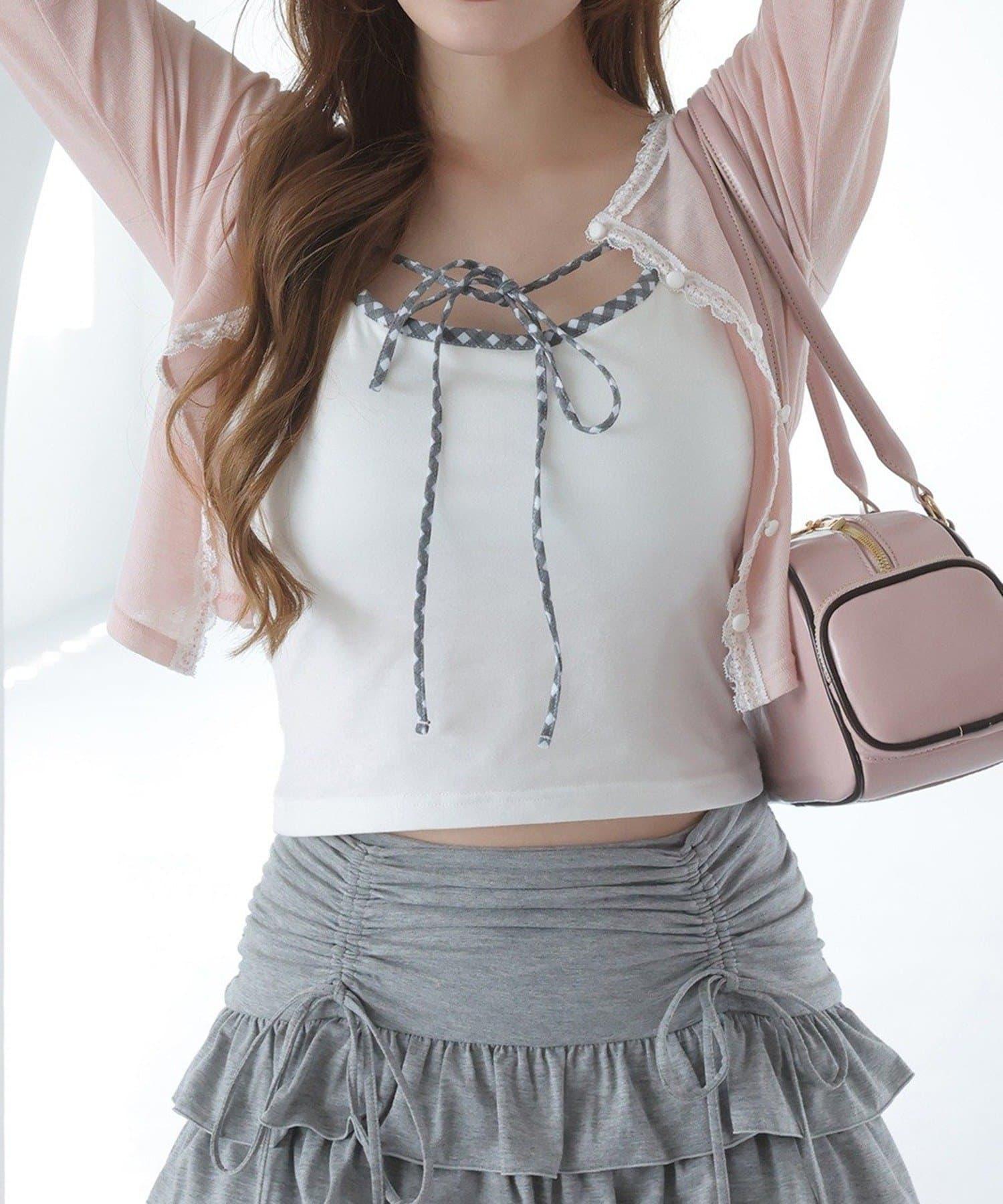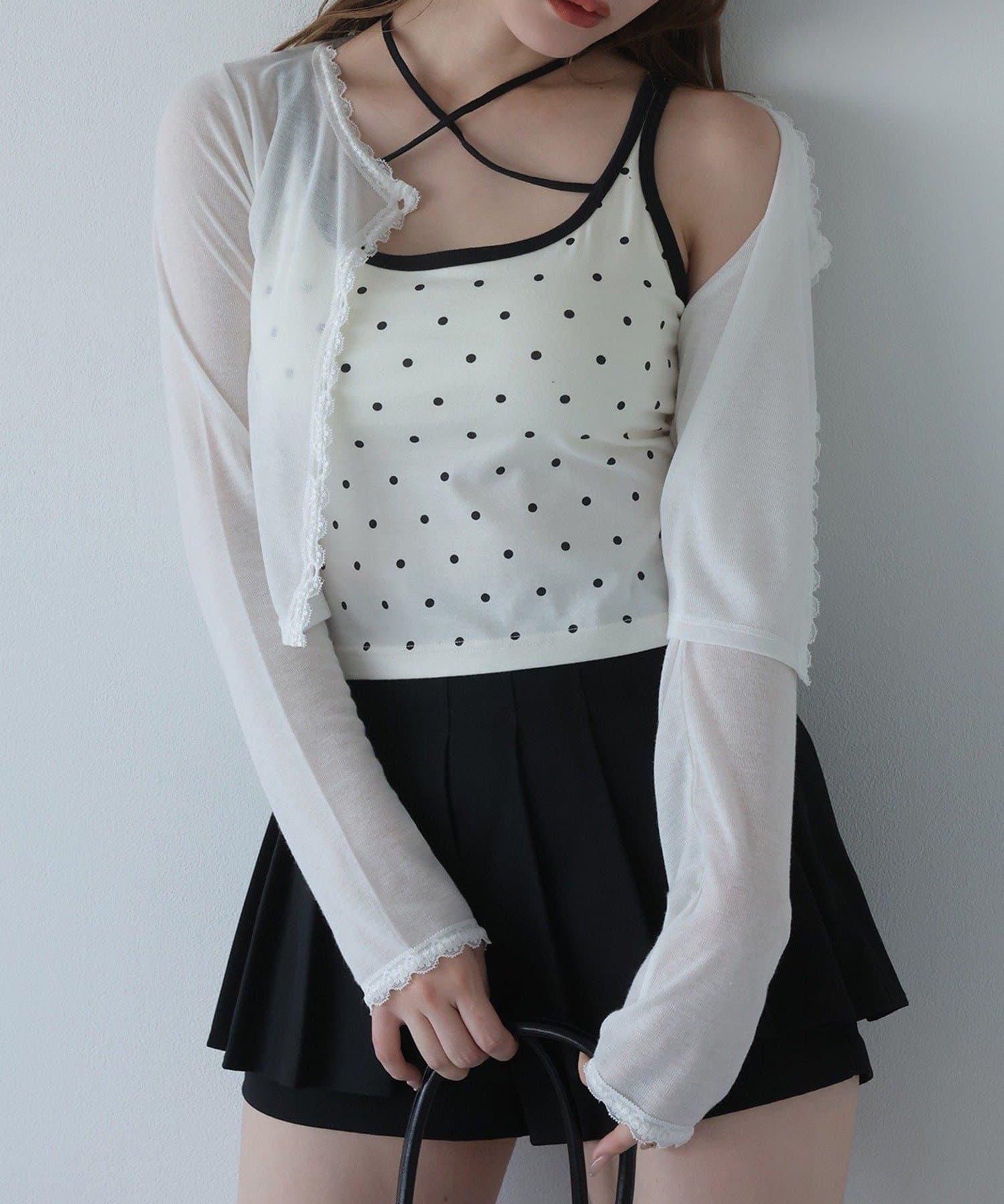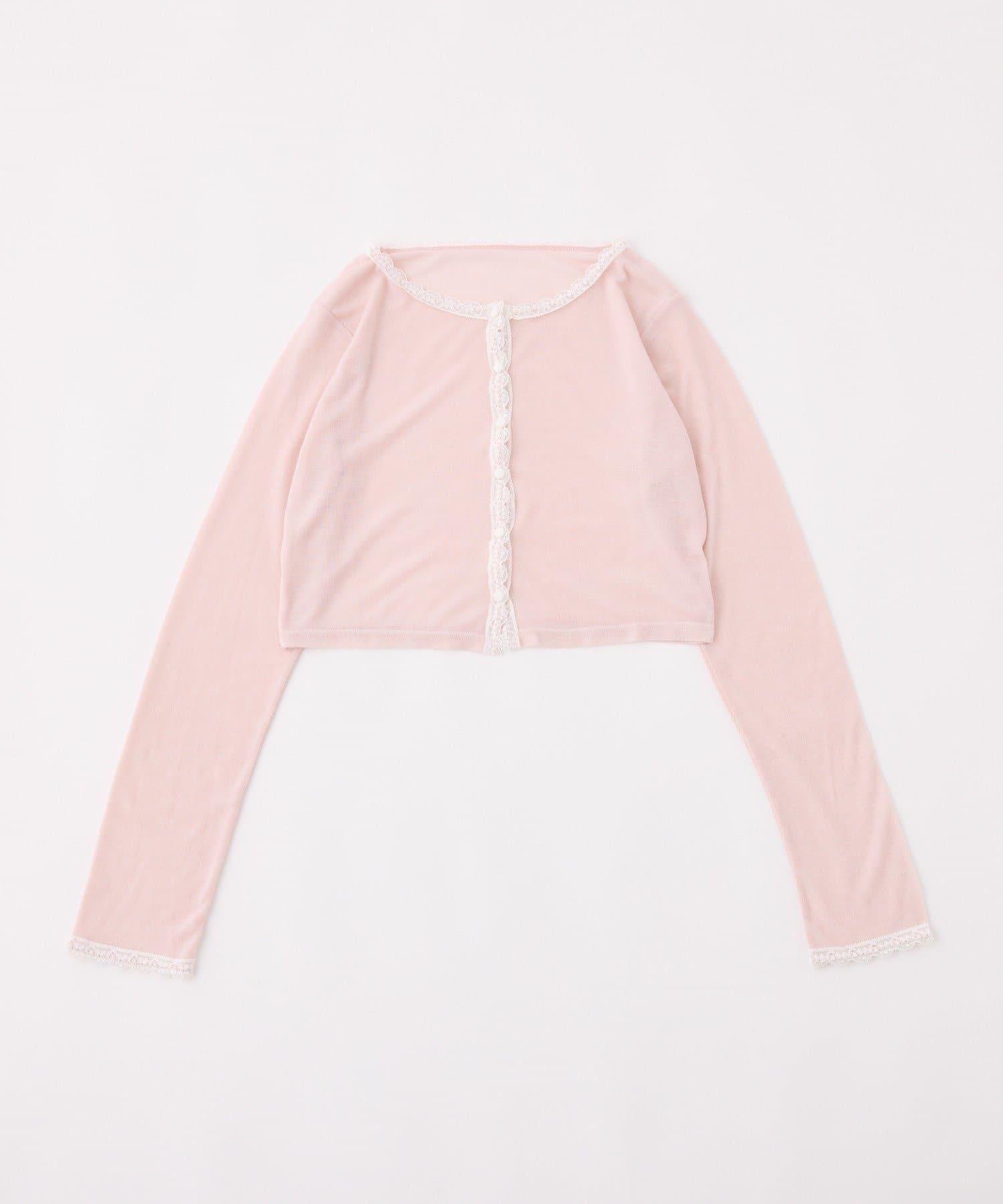 短款剪裁面料開衫,蕾絲花邊增添魅力。