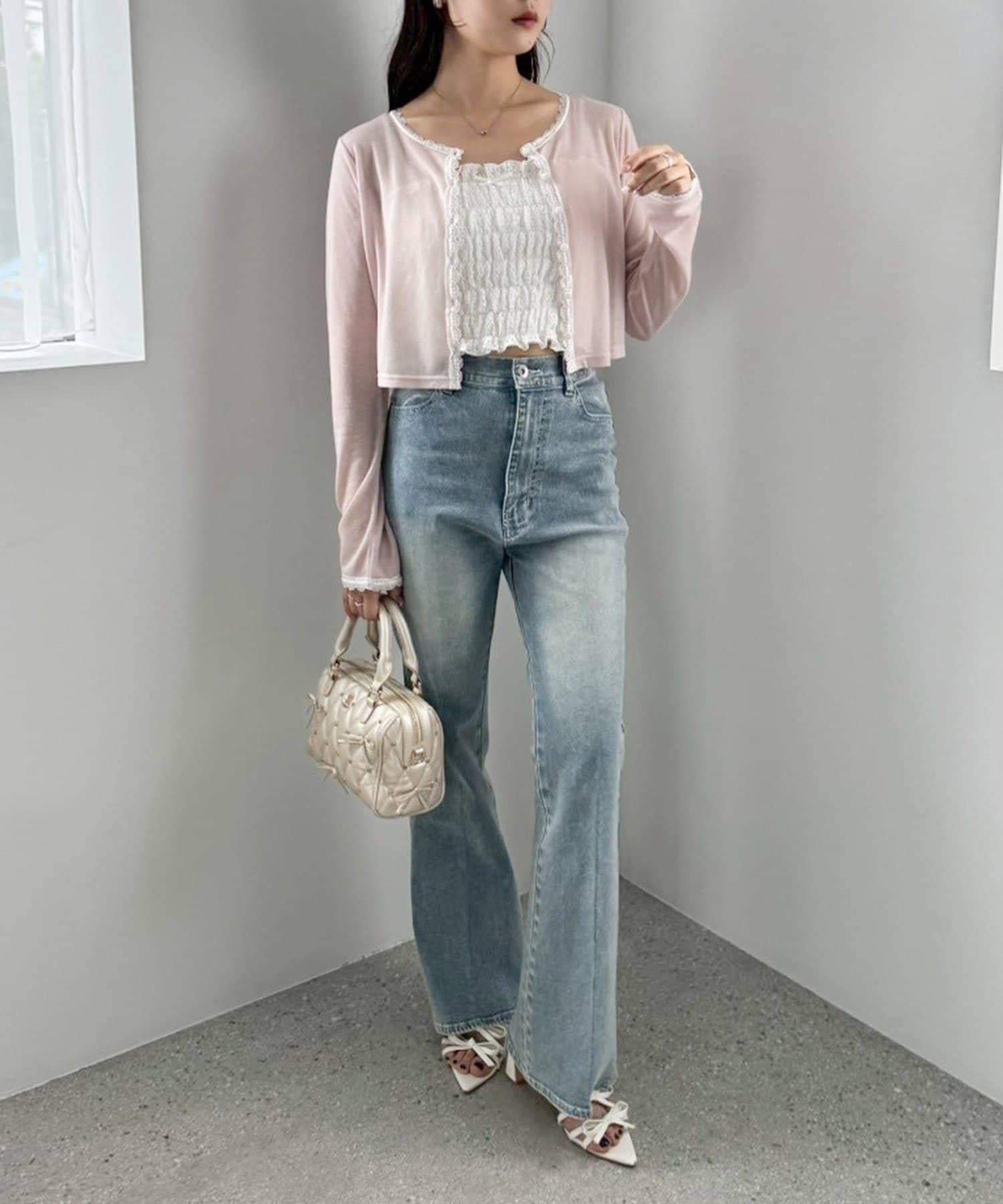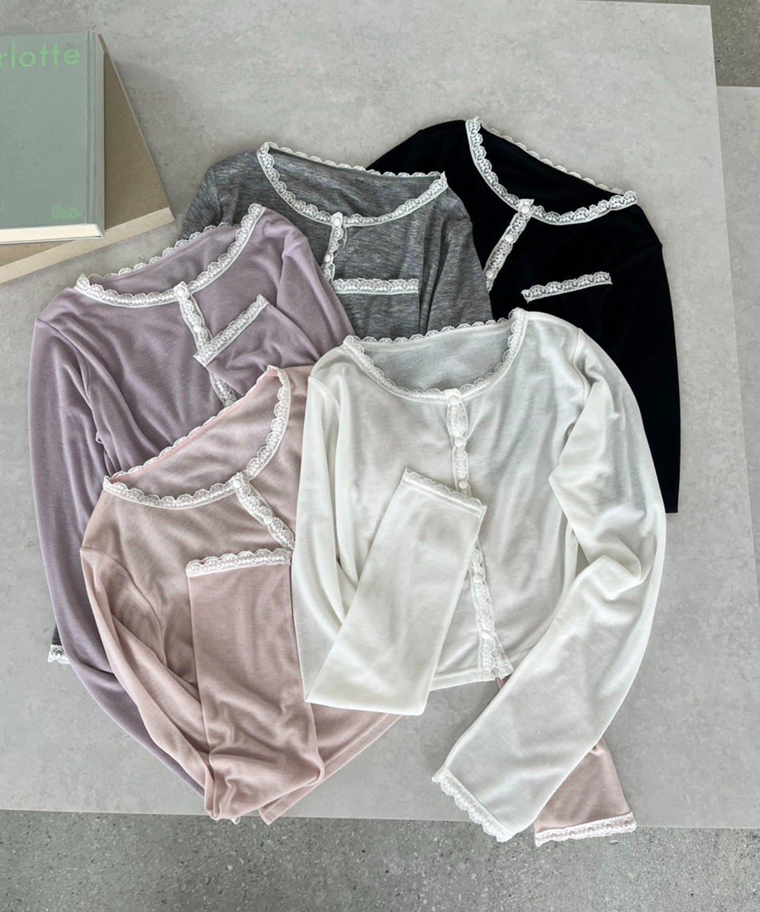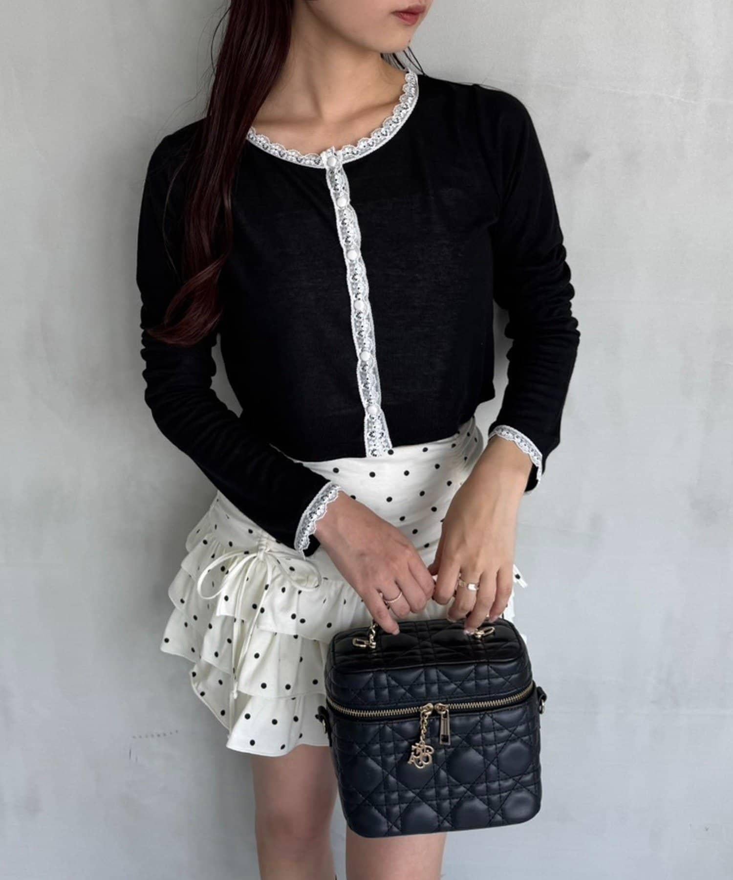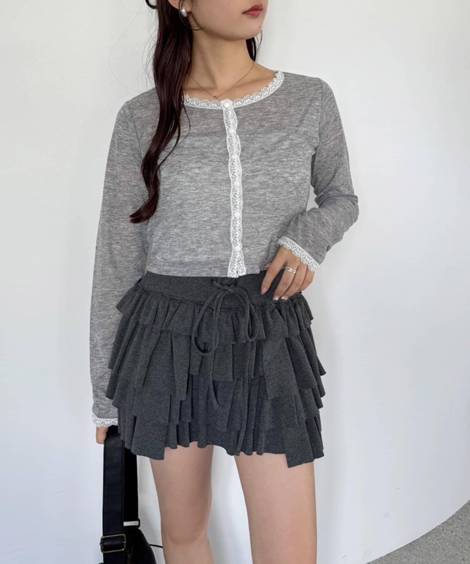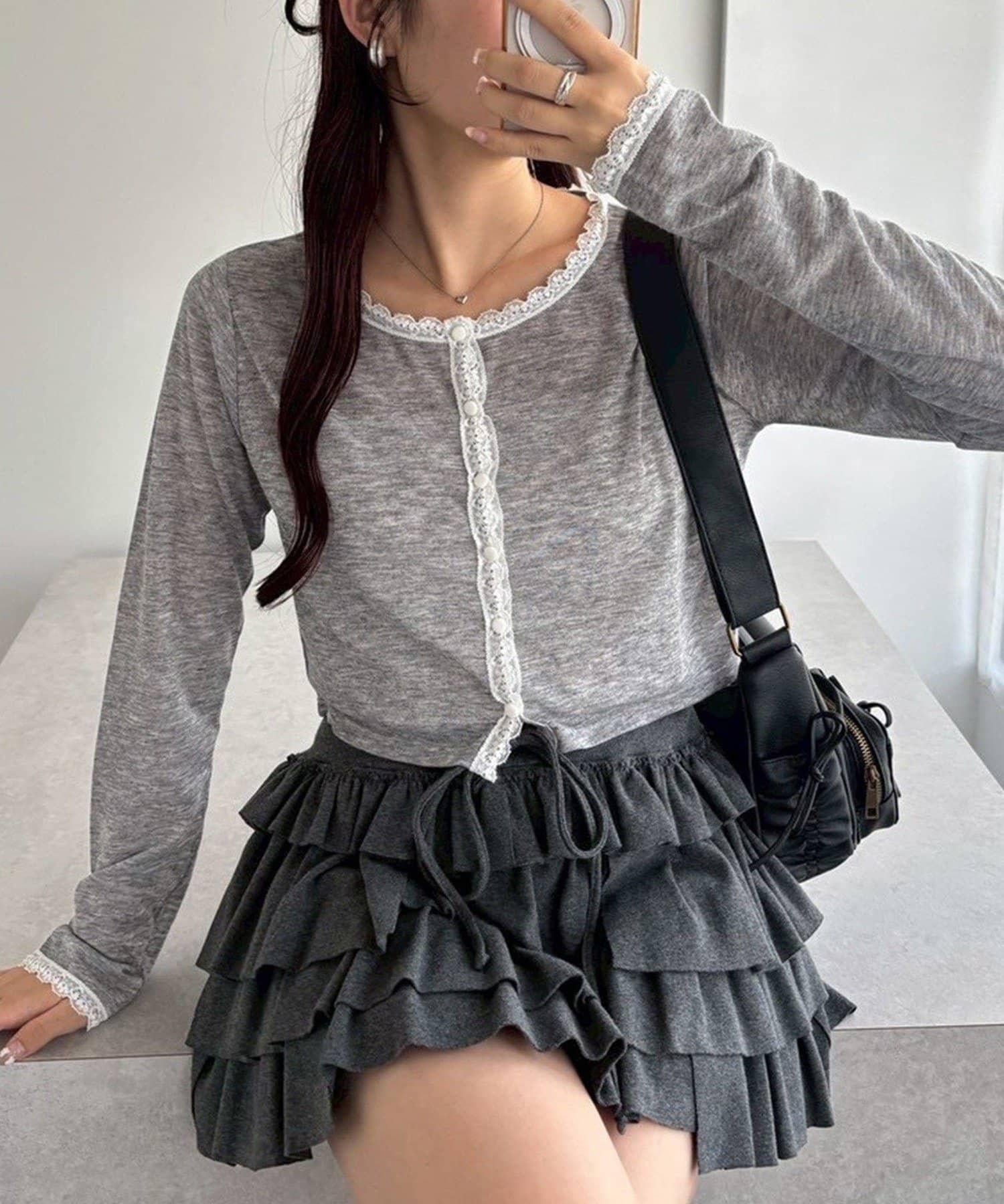 短款剪裁面料開衫,蕾絲花邊增添魅力。