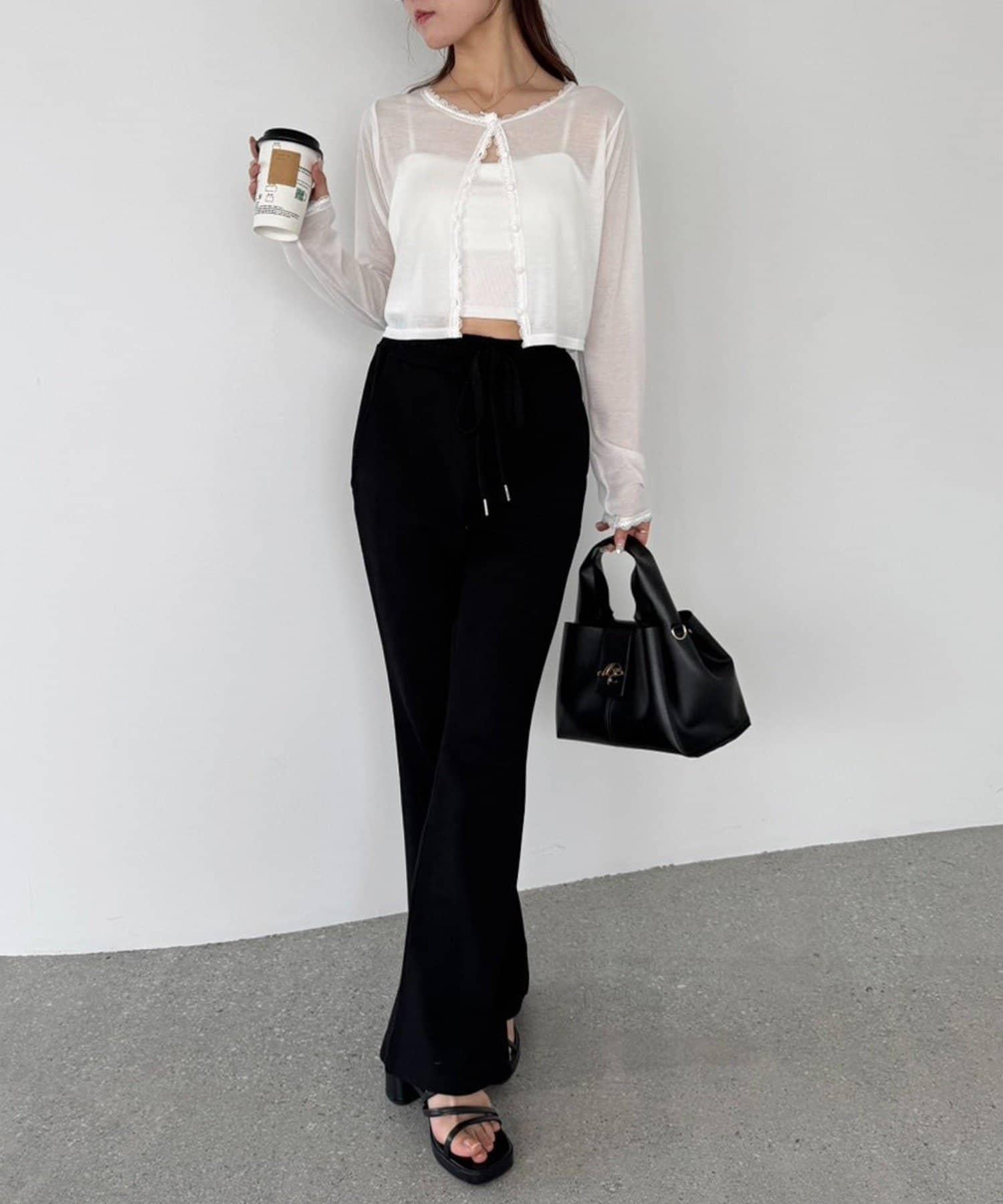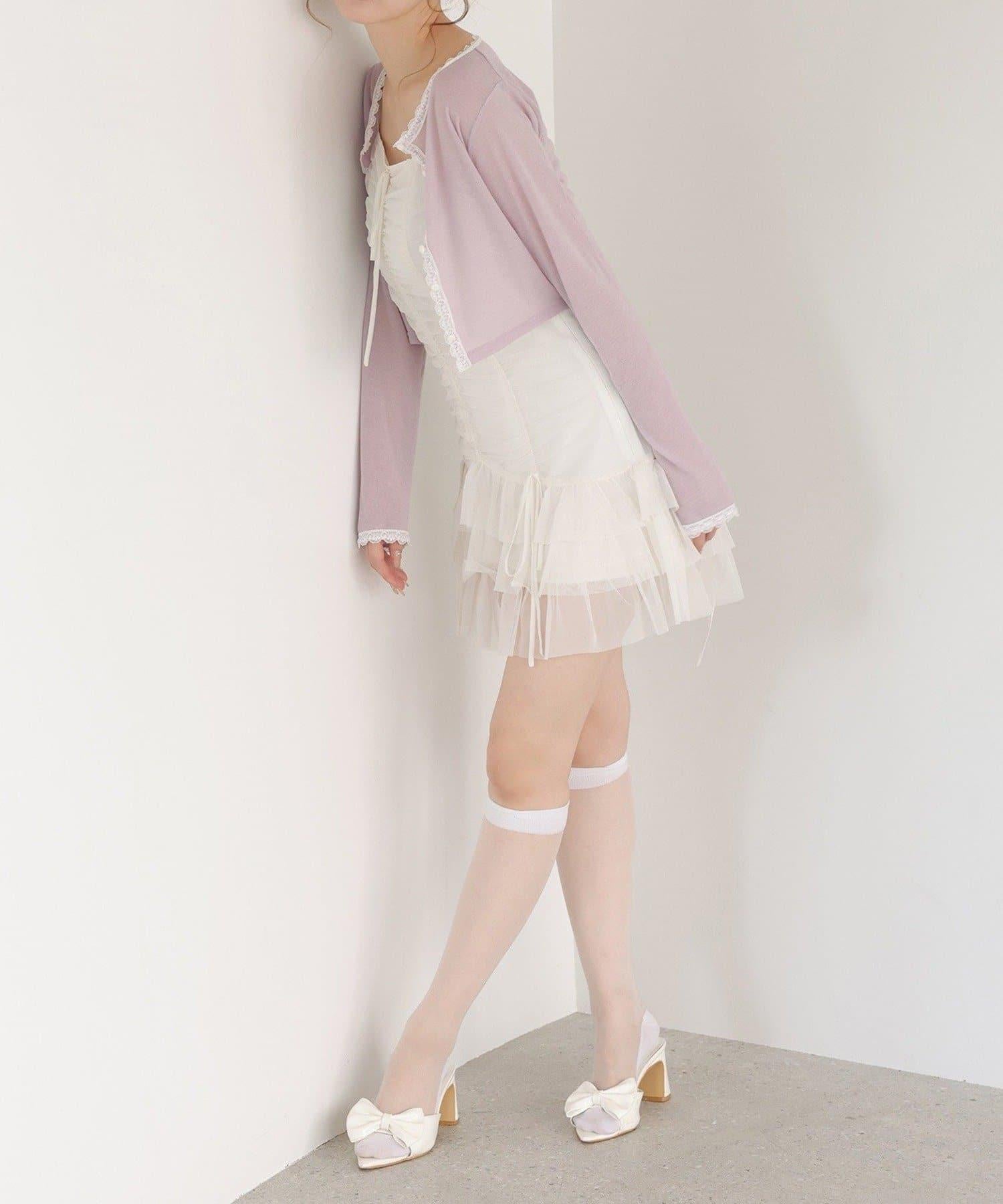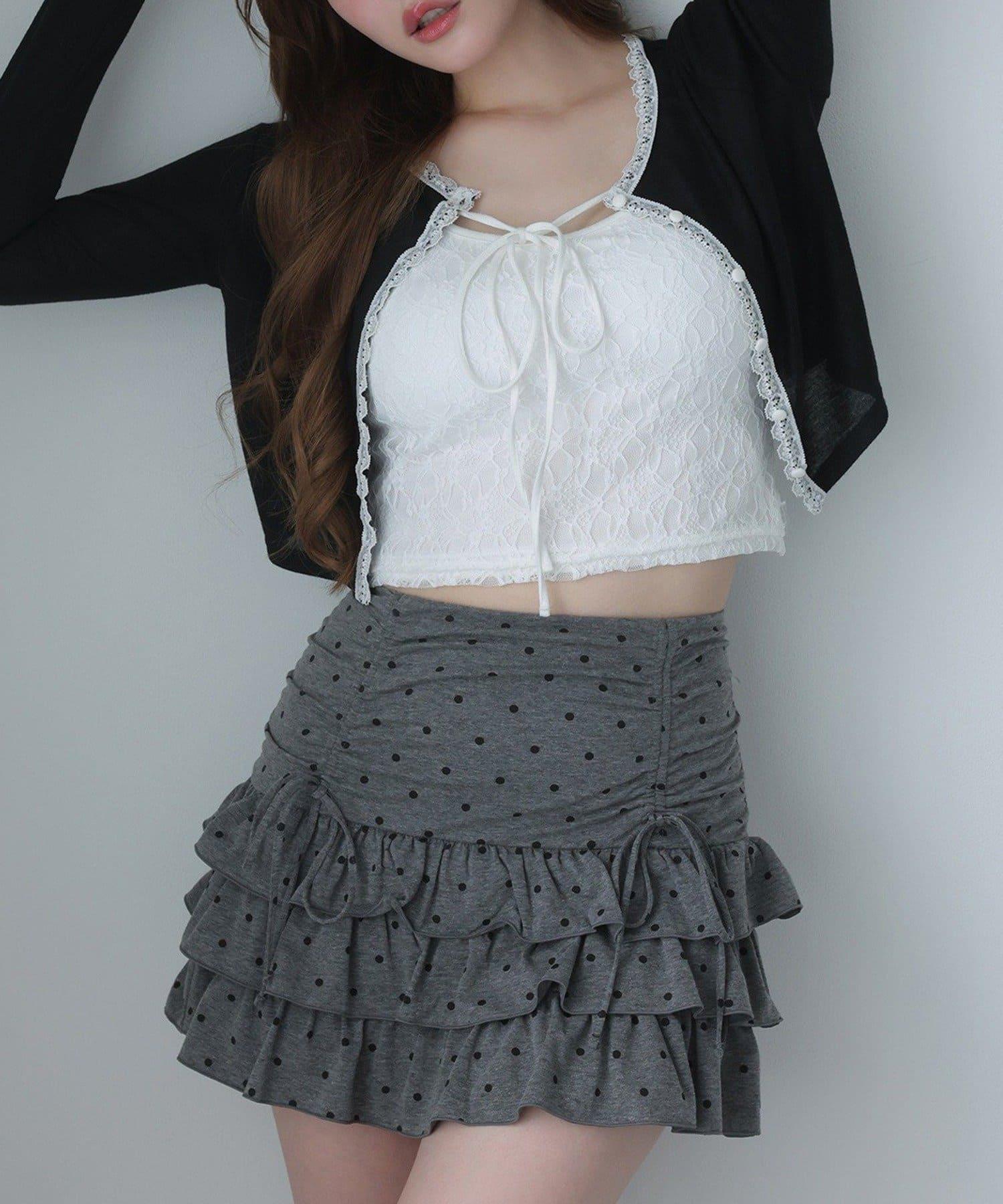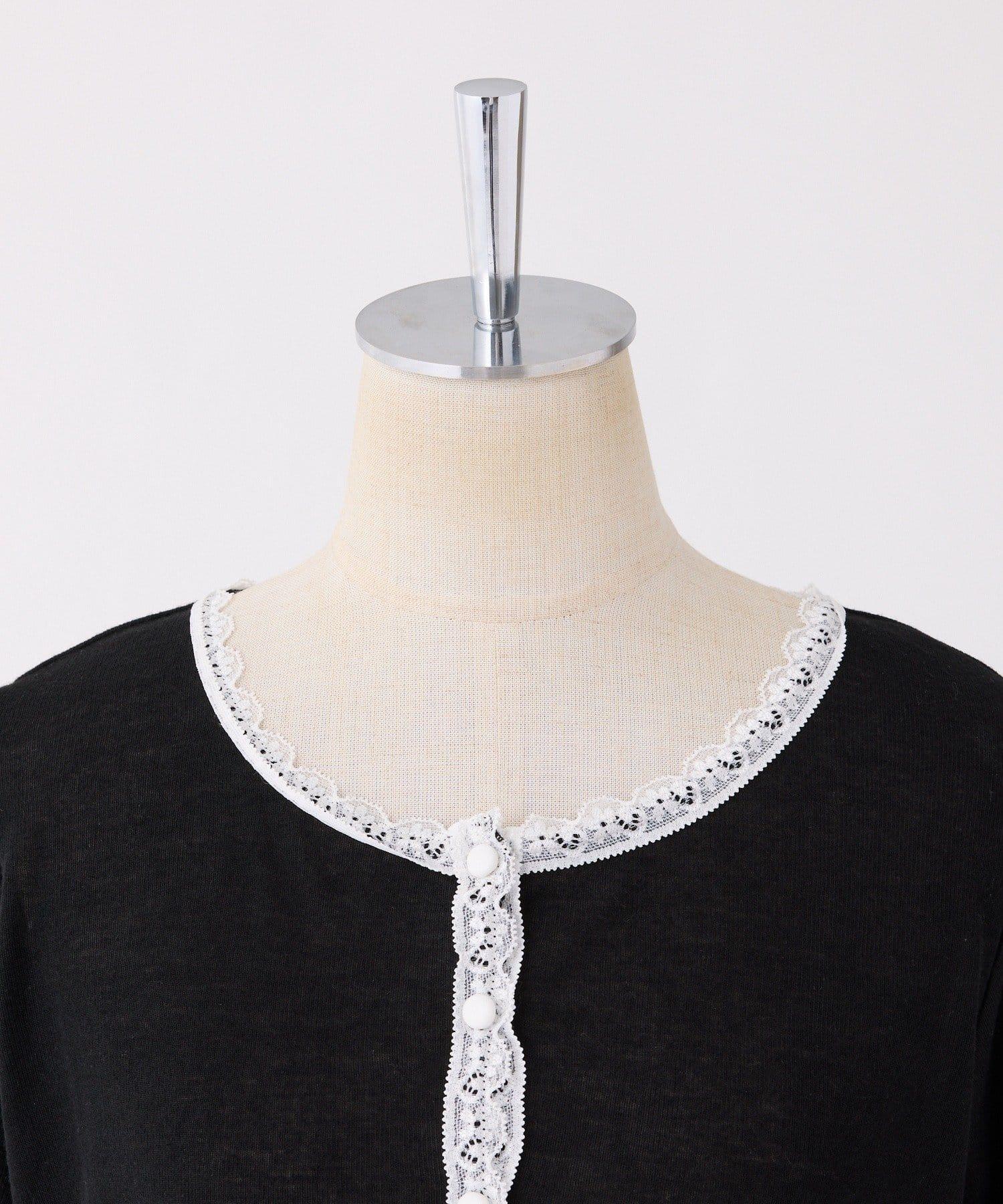 短款剪裁面料開衫,蕾絲花邊增添魅力。