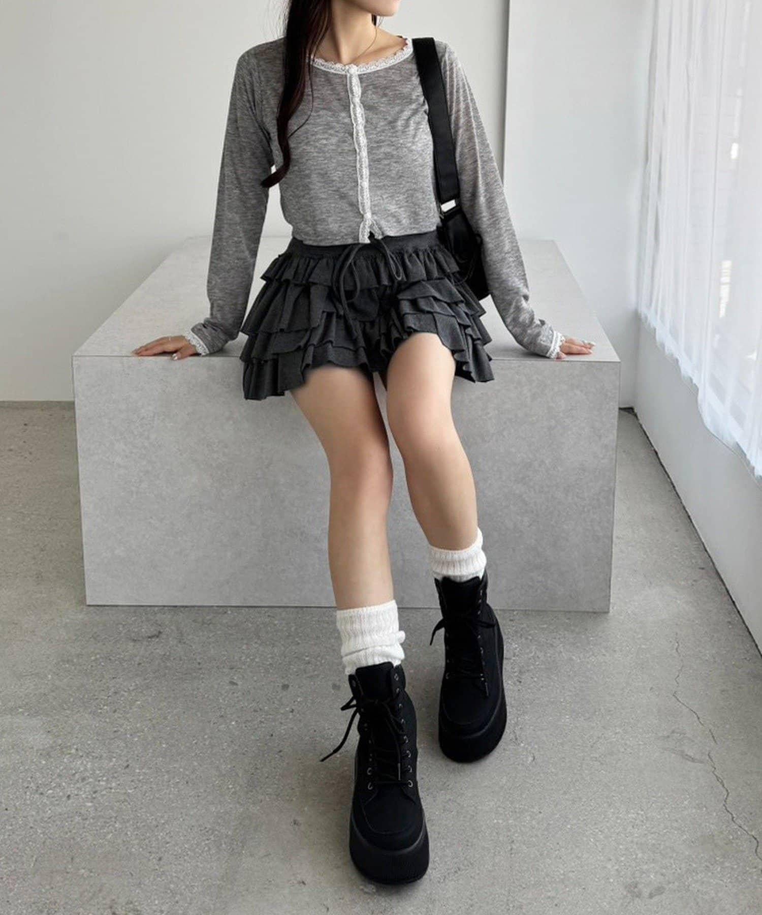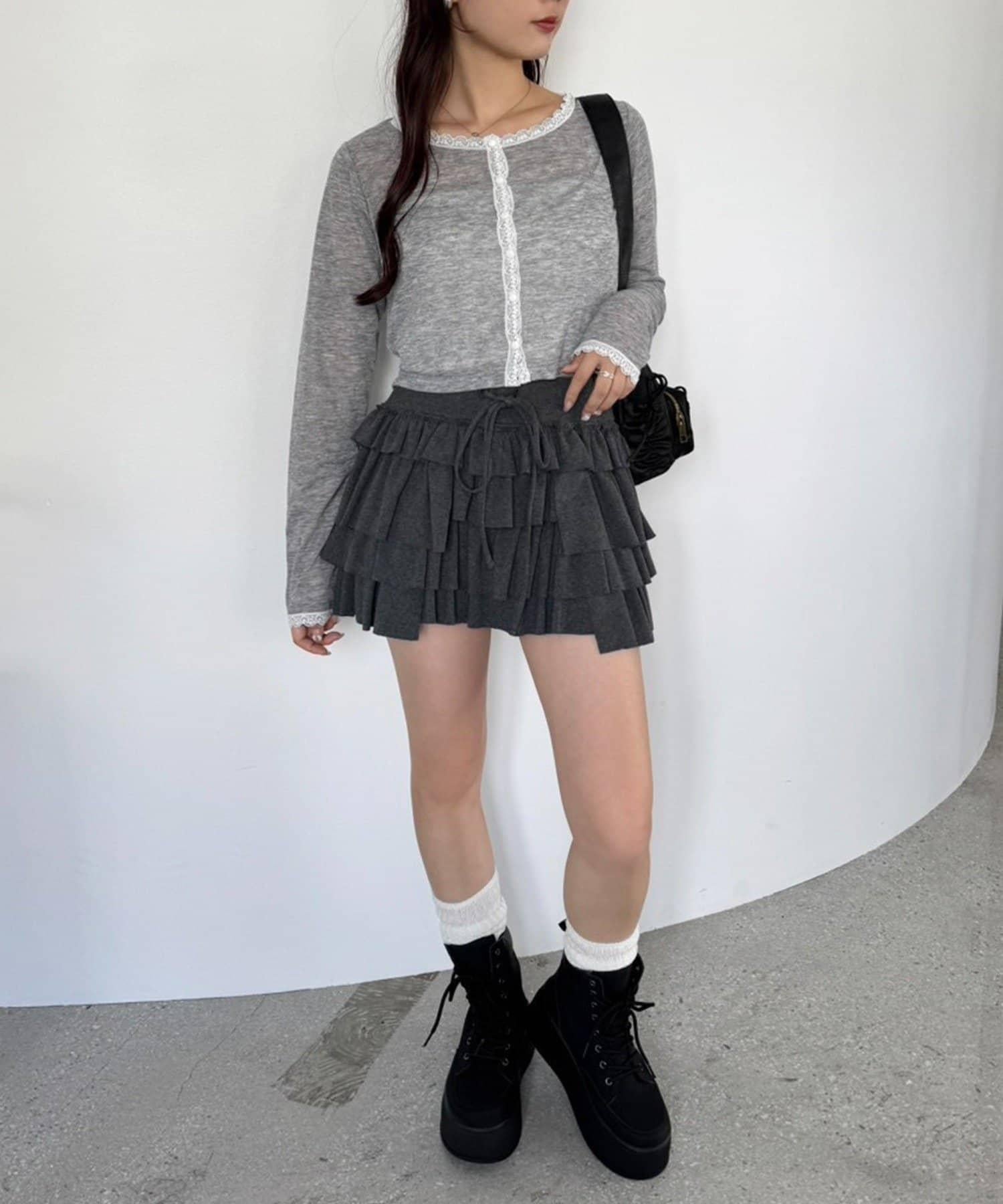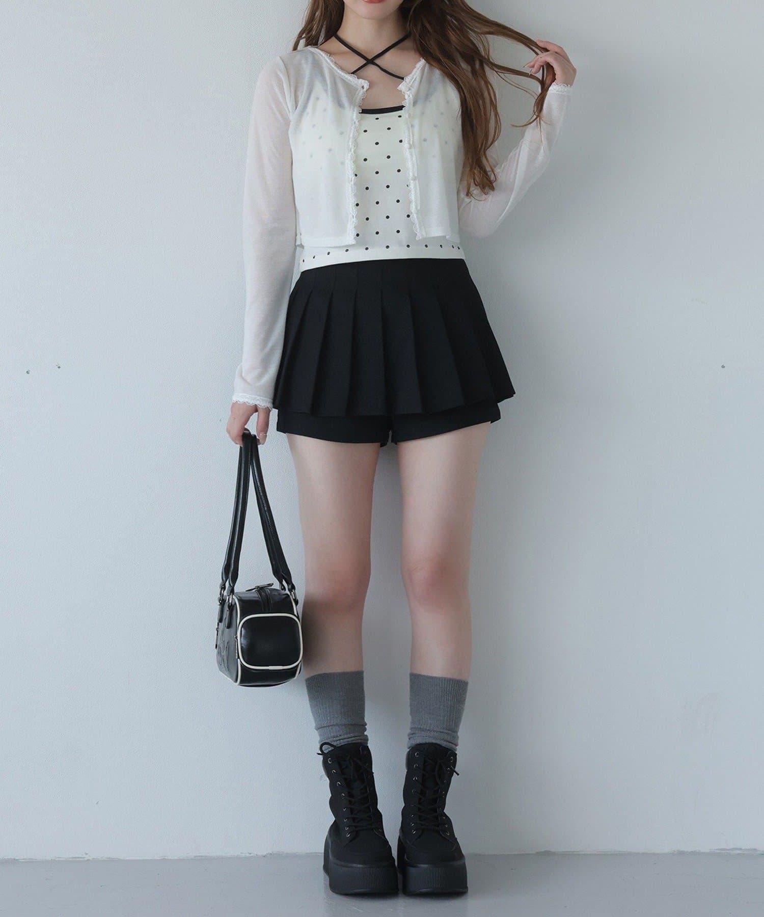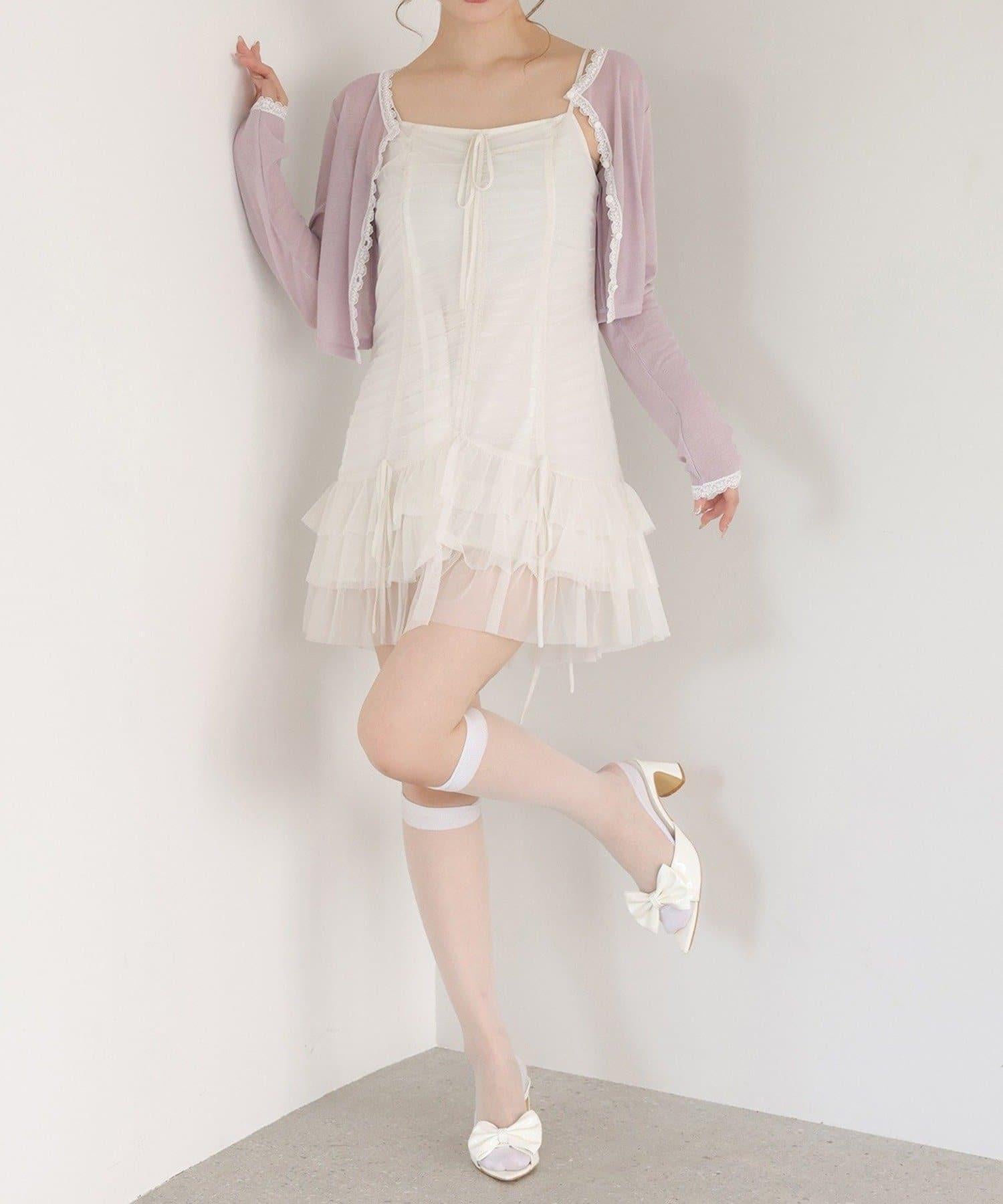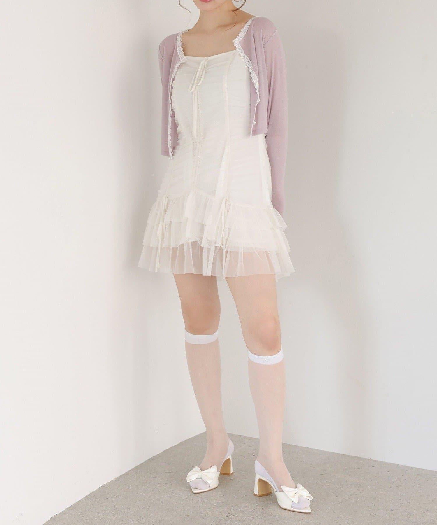 短款剪裁面料開衫,蕾絲花邊增添魅力。