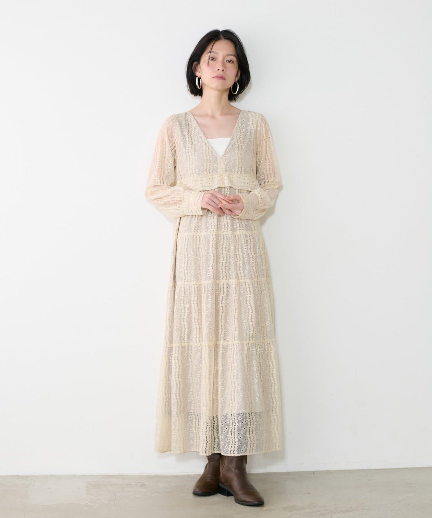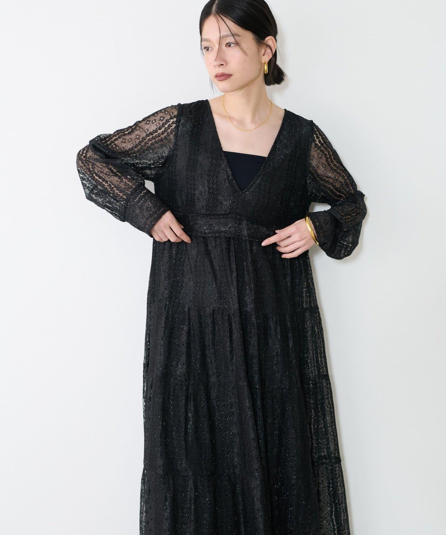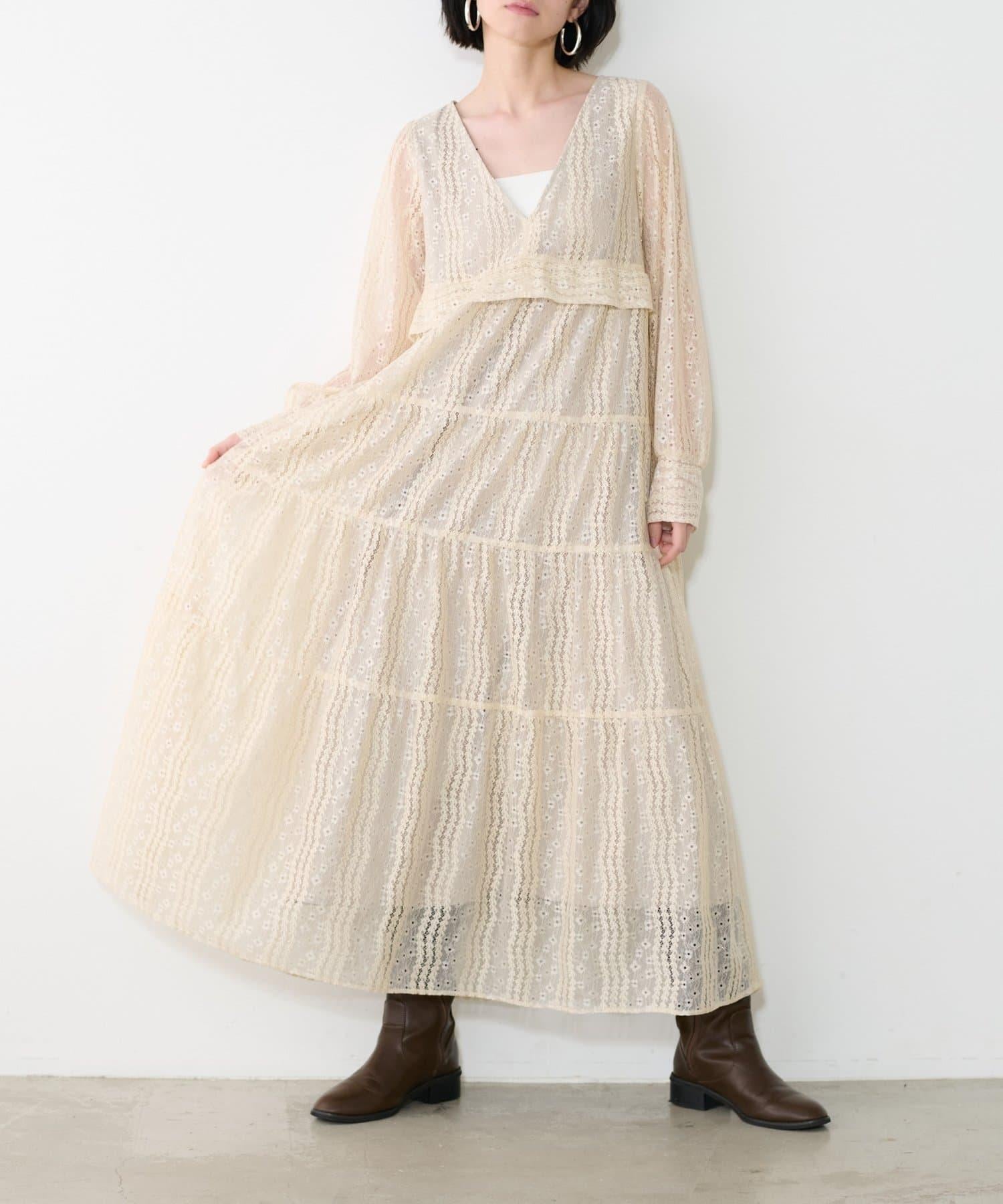 連身長裙,精緻的蕾絲設計令人印象深刻。