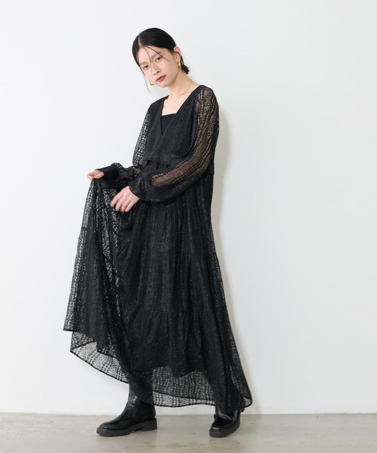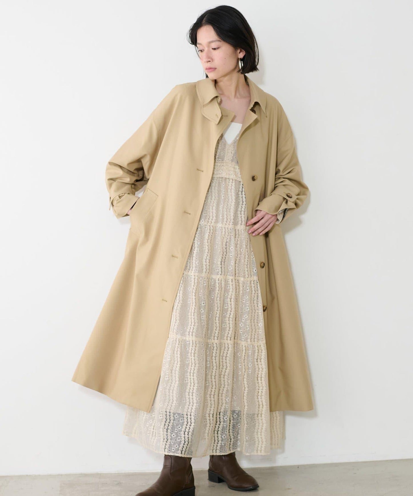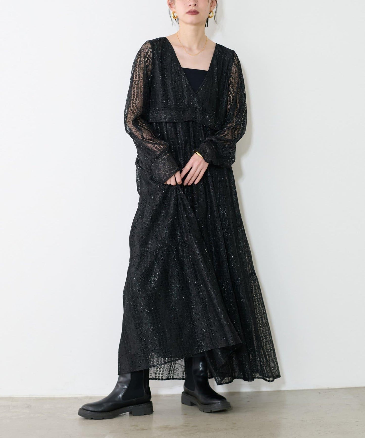連身長裙,精緻的蕾絲設計令人印象深刻。