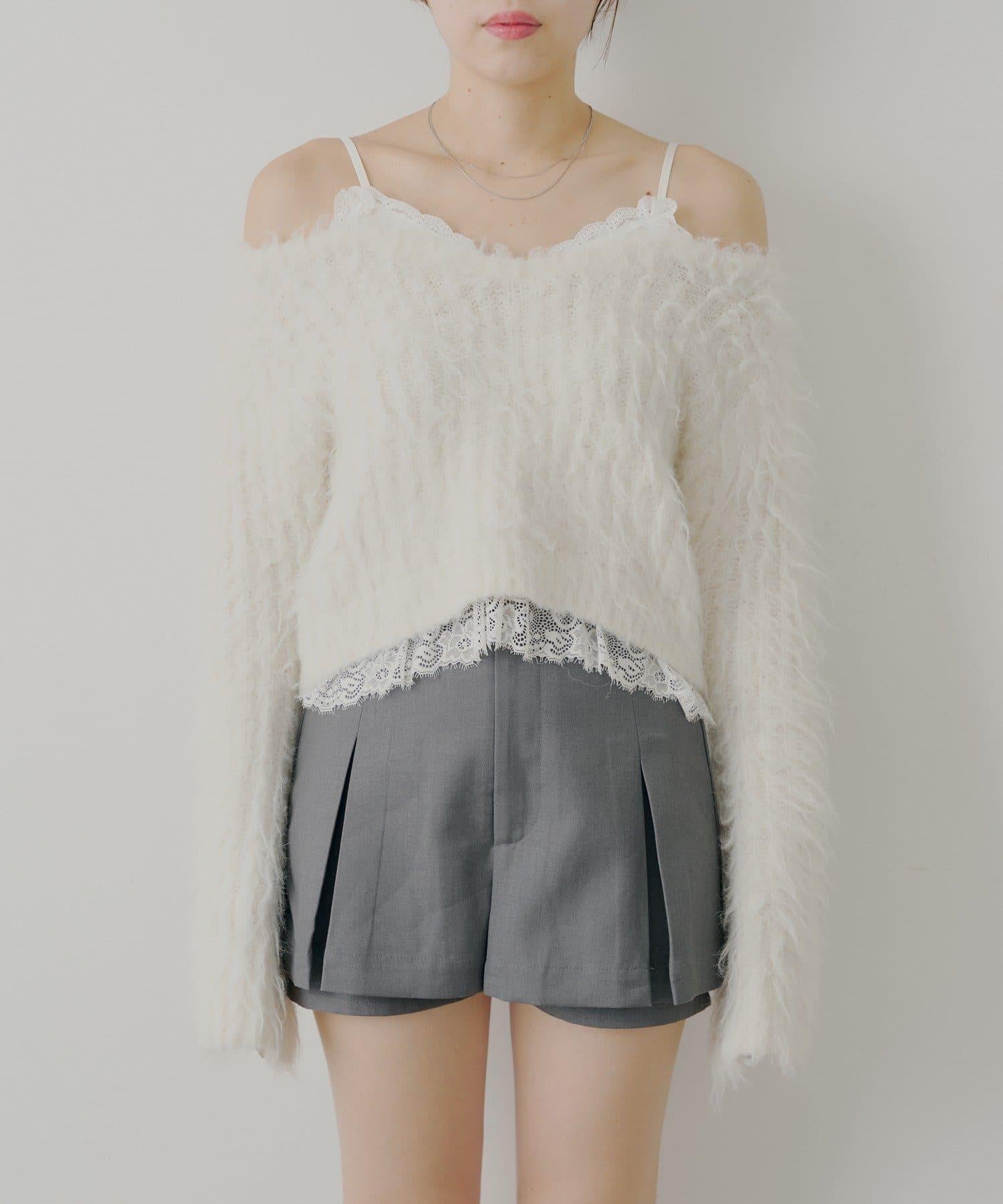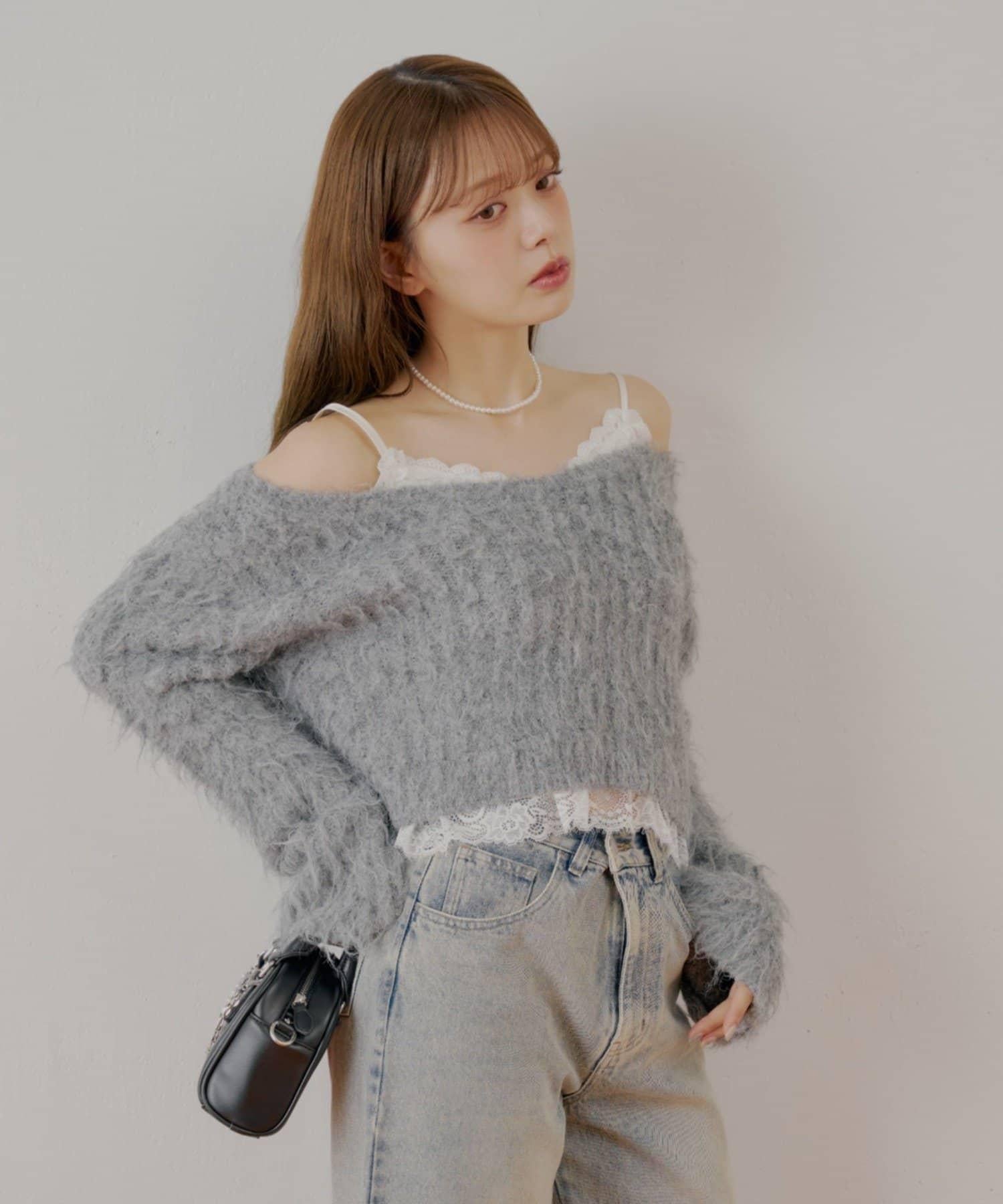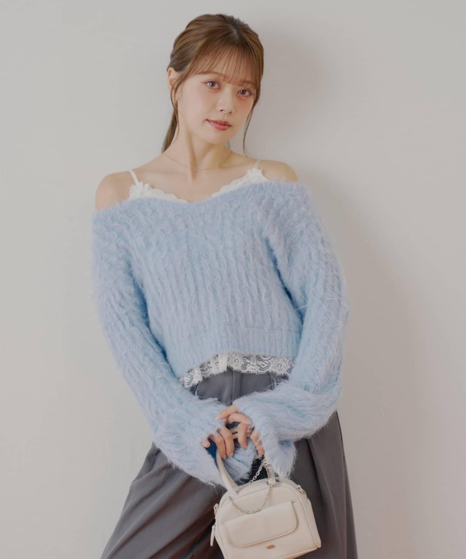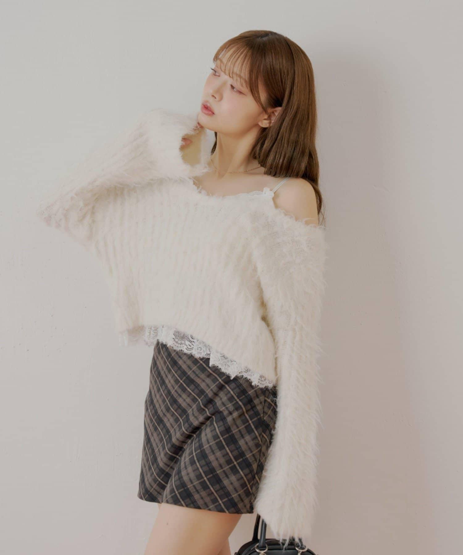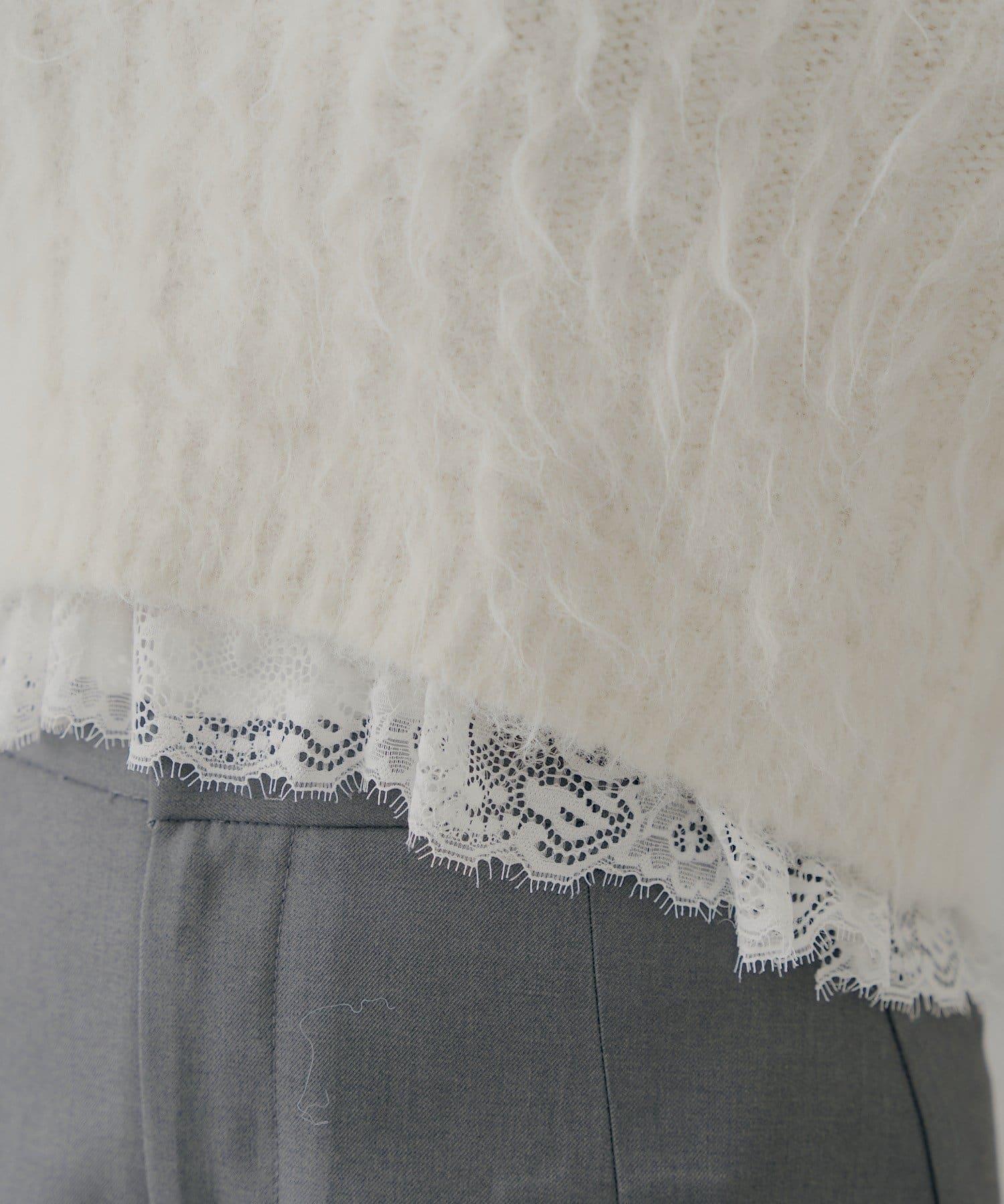 可愛的針織♡,蕾絲和毛茸茸的針織對接設計