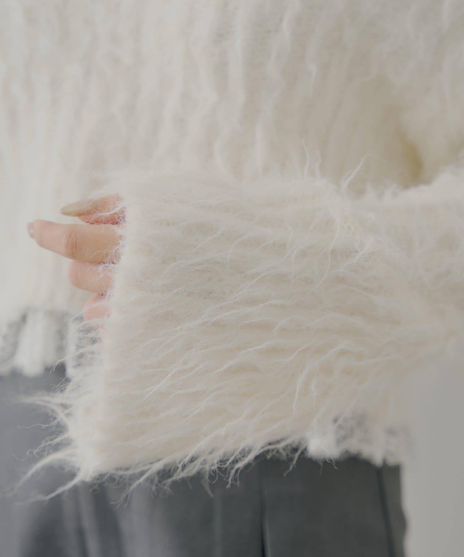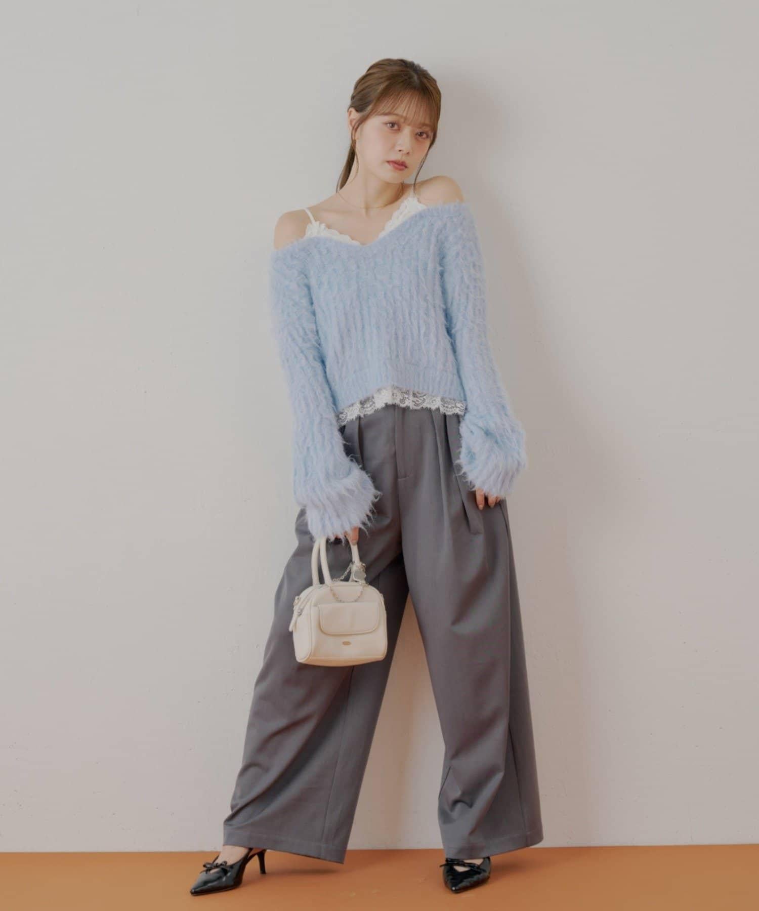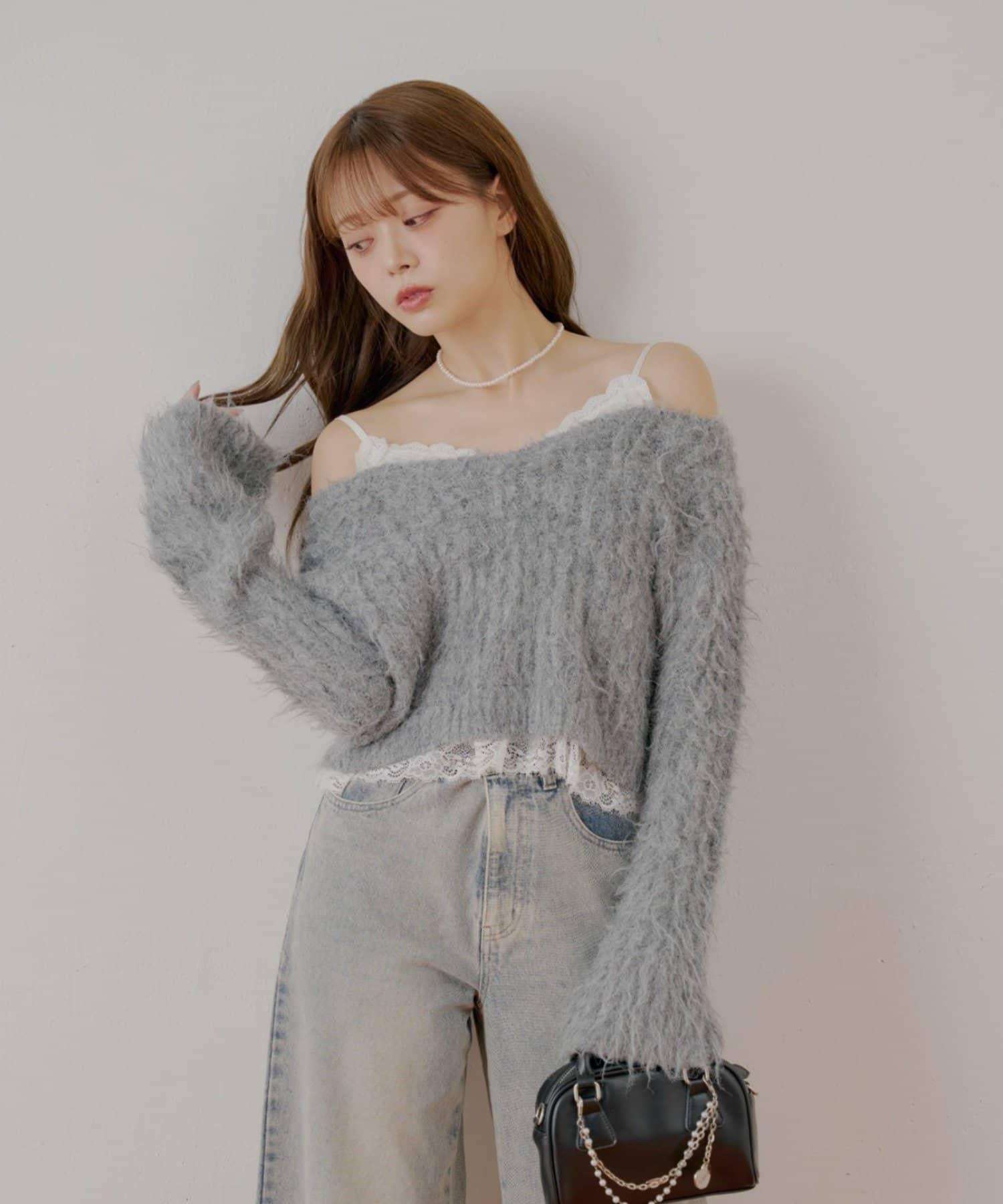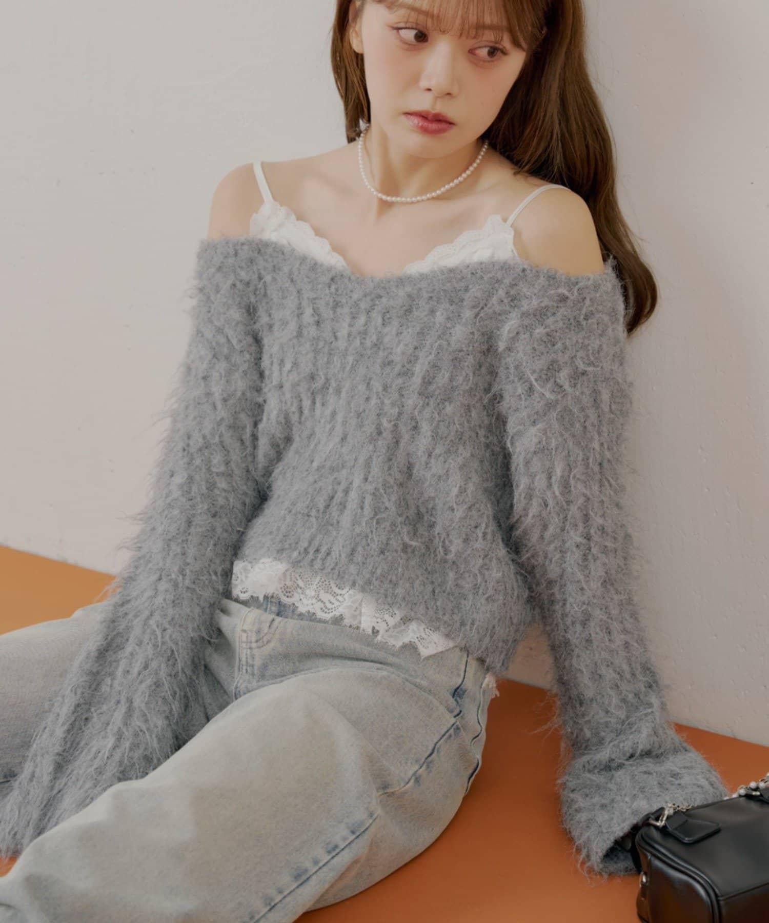 可愛的針織♡,蕾絲和毛茸茸的針織對接設計