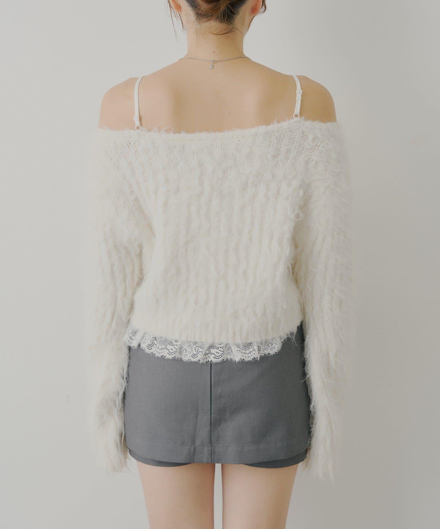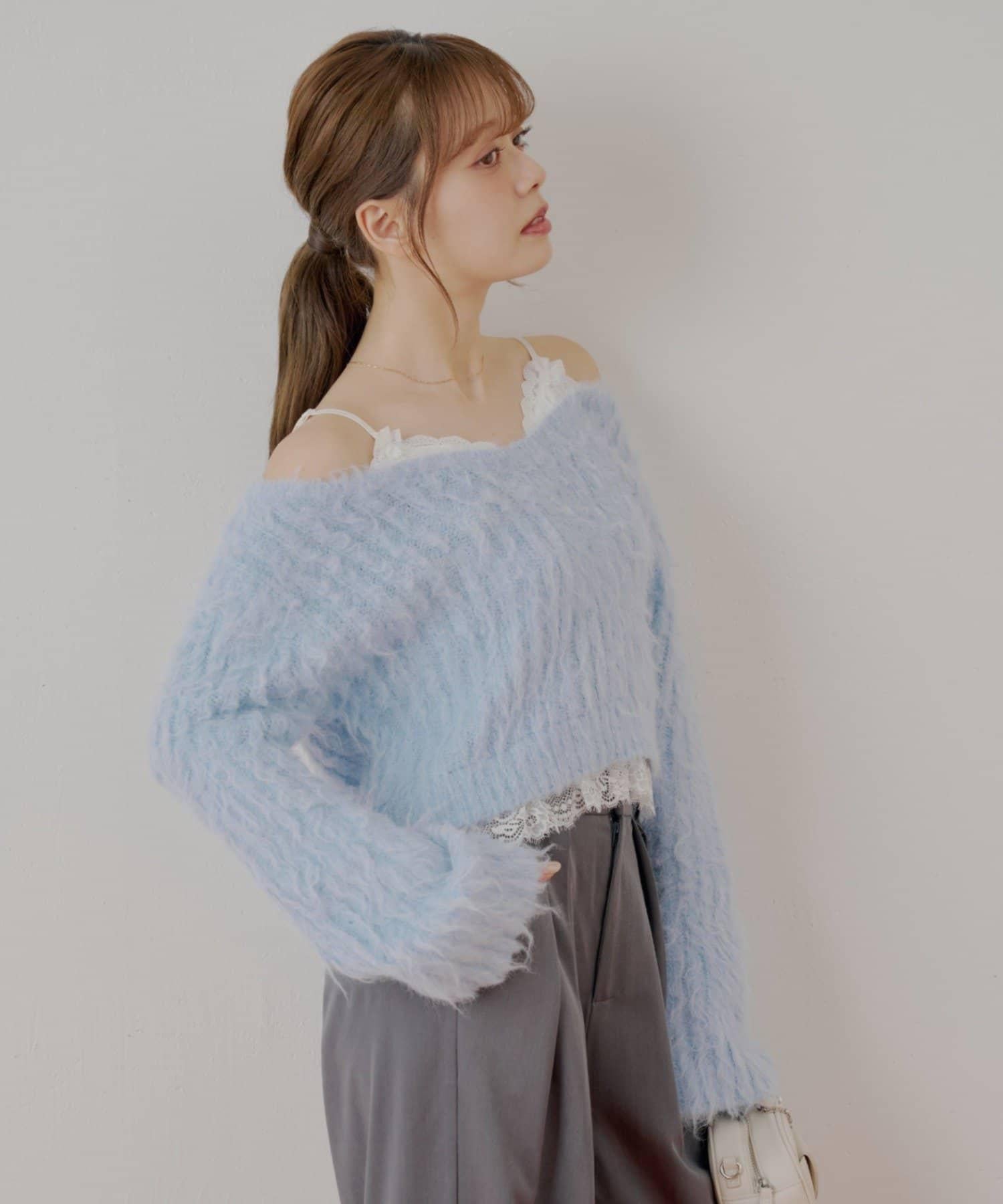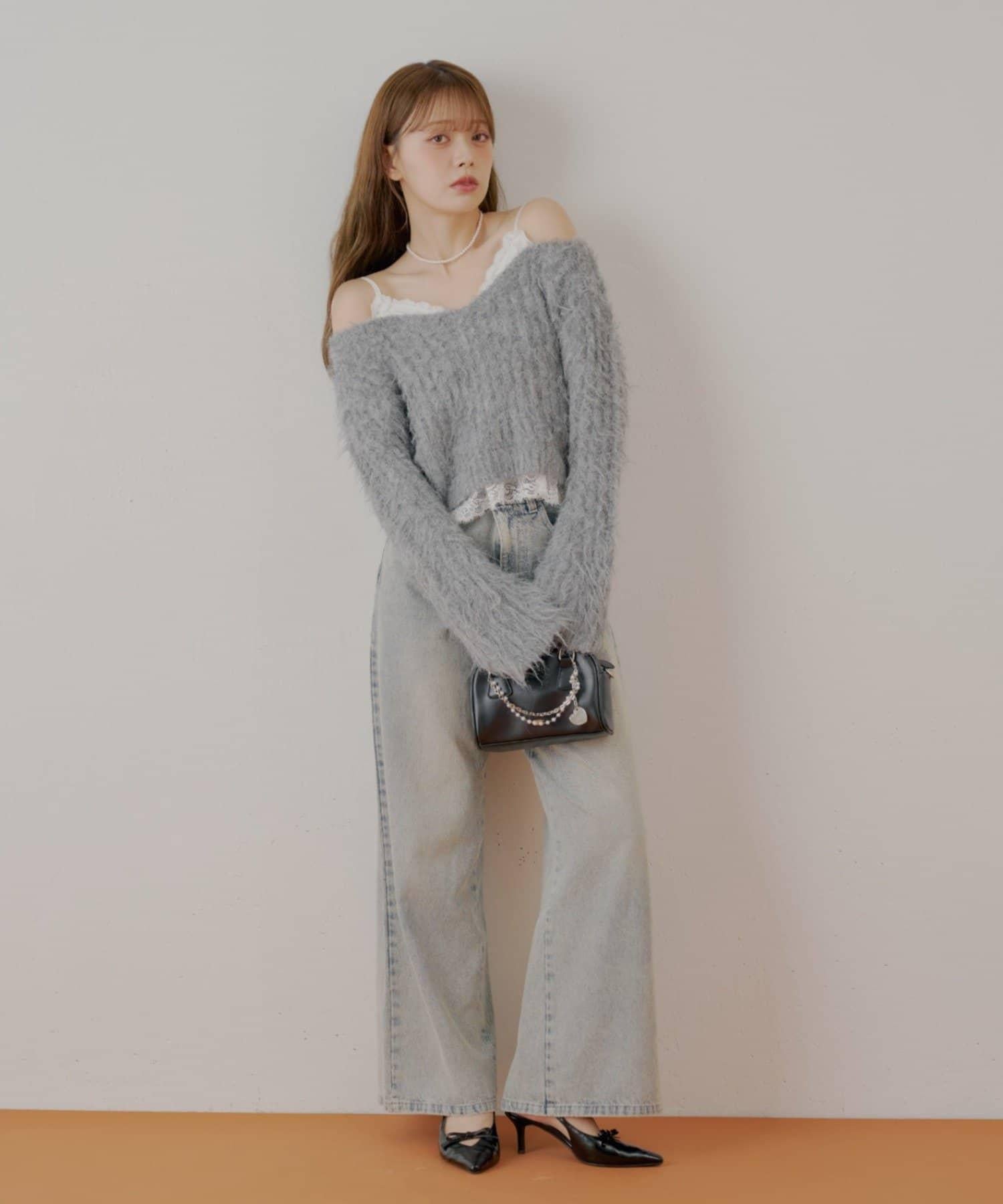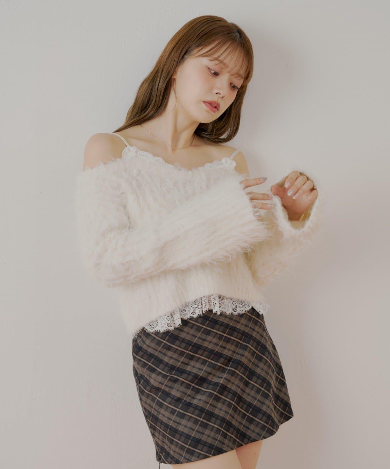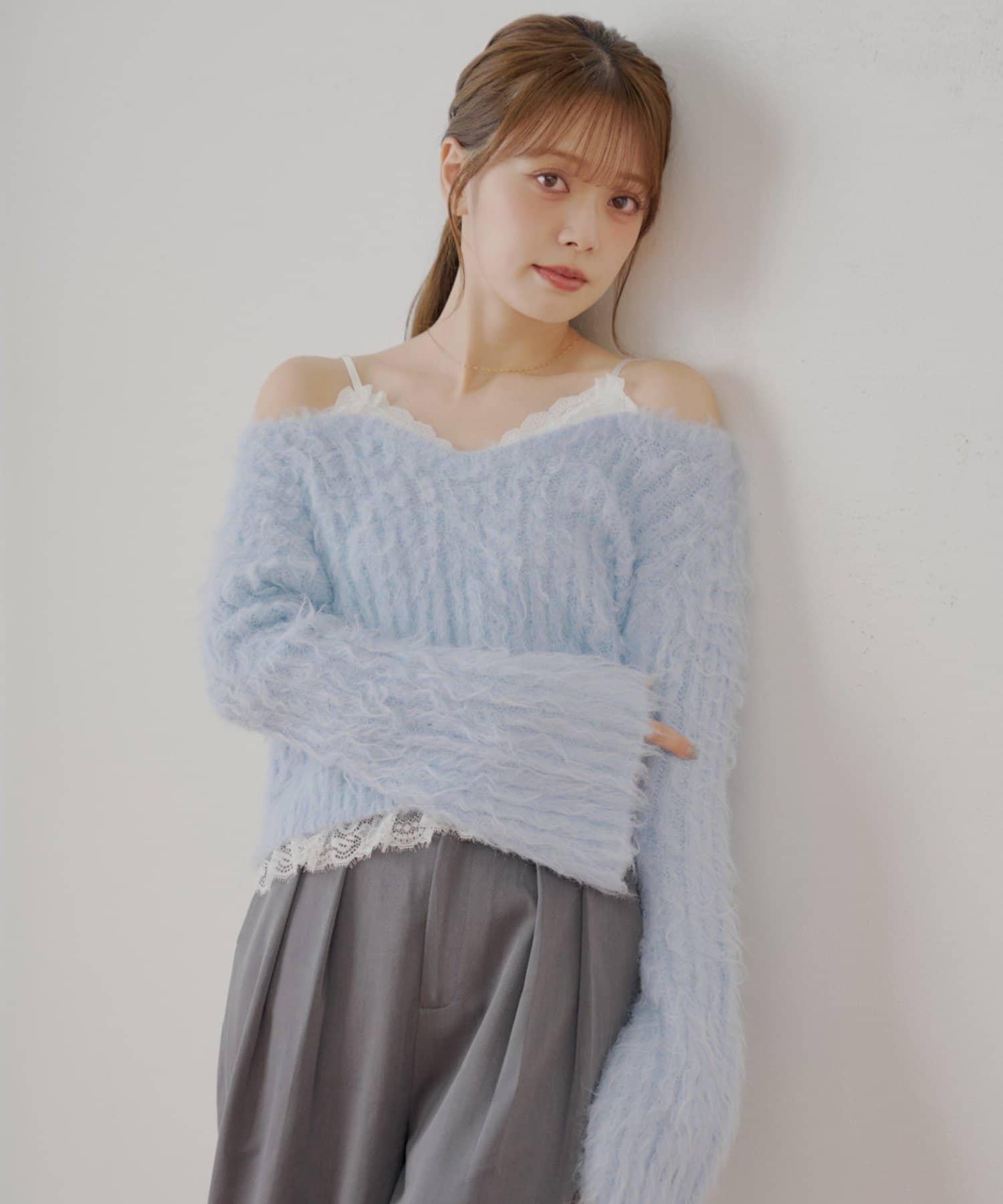 可愛的針織♡,蕾絲和毛茸茸的針織對接設計