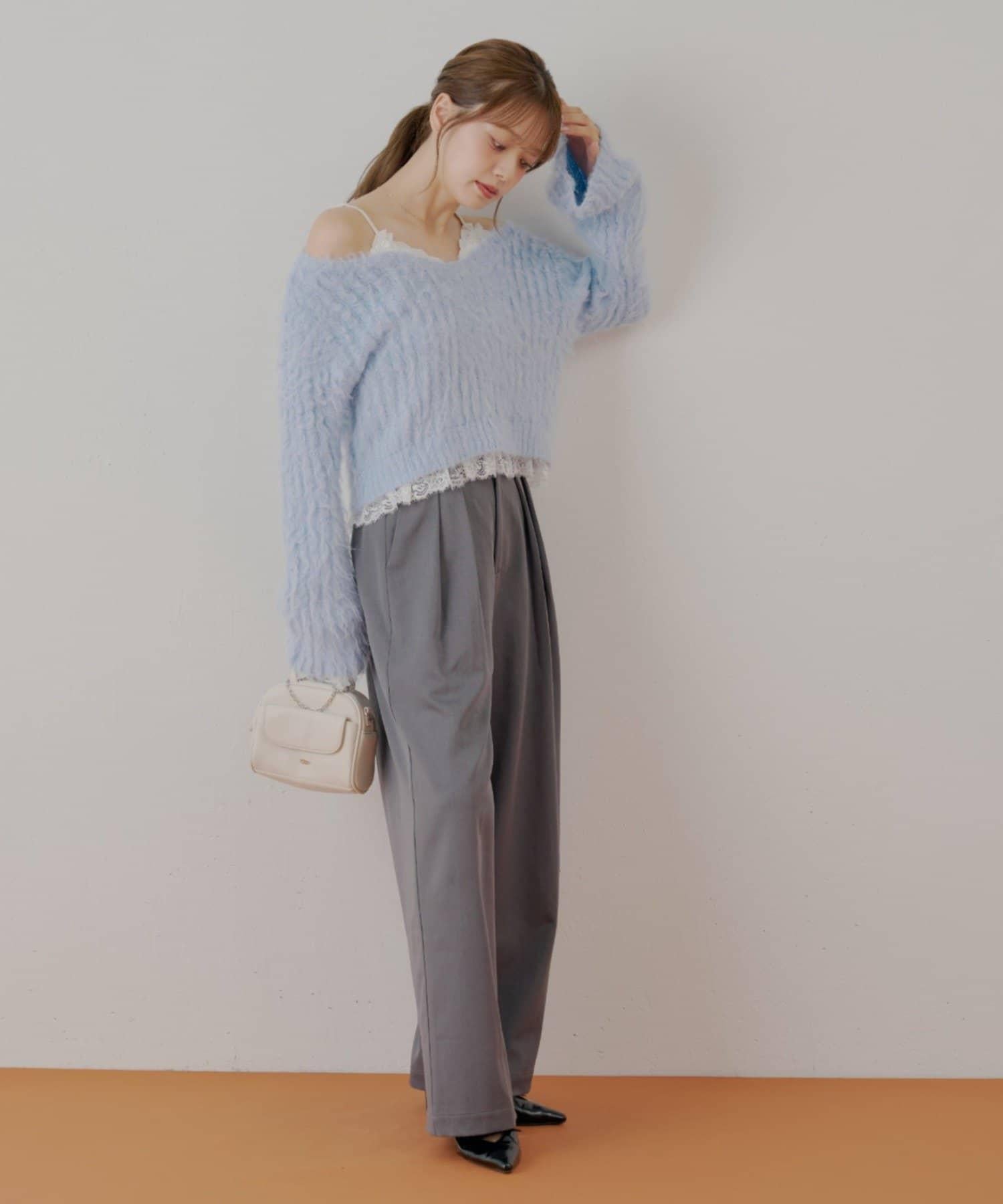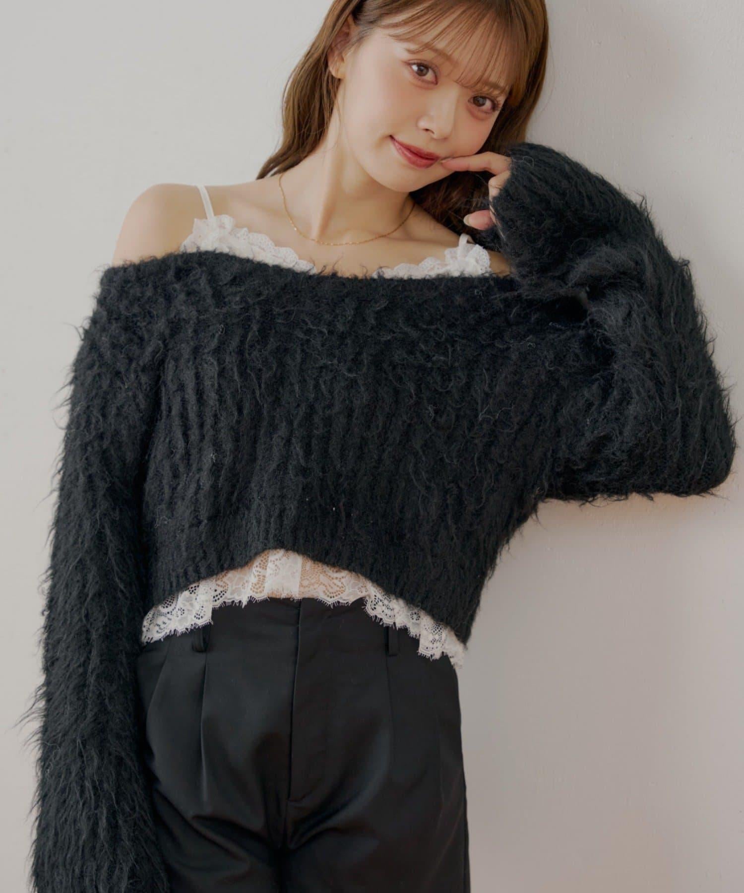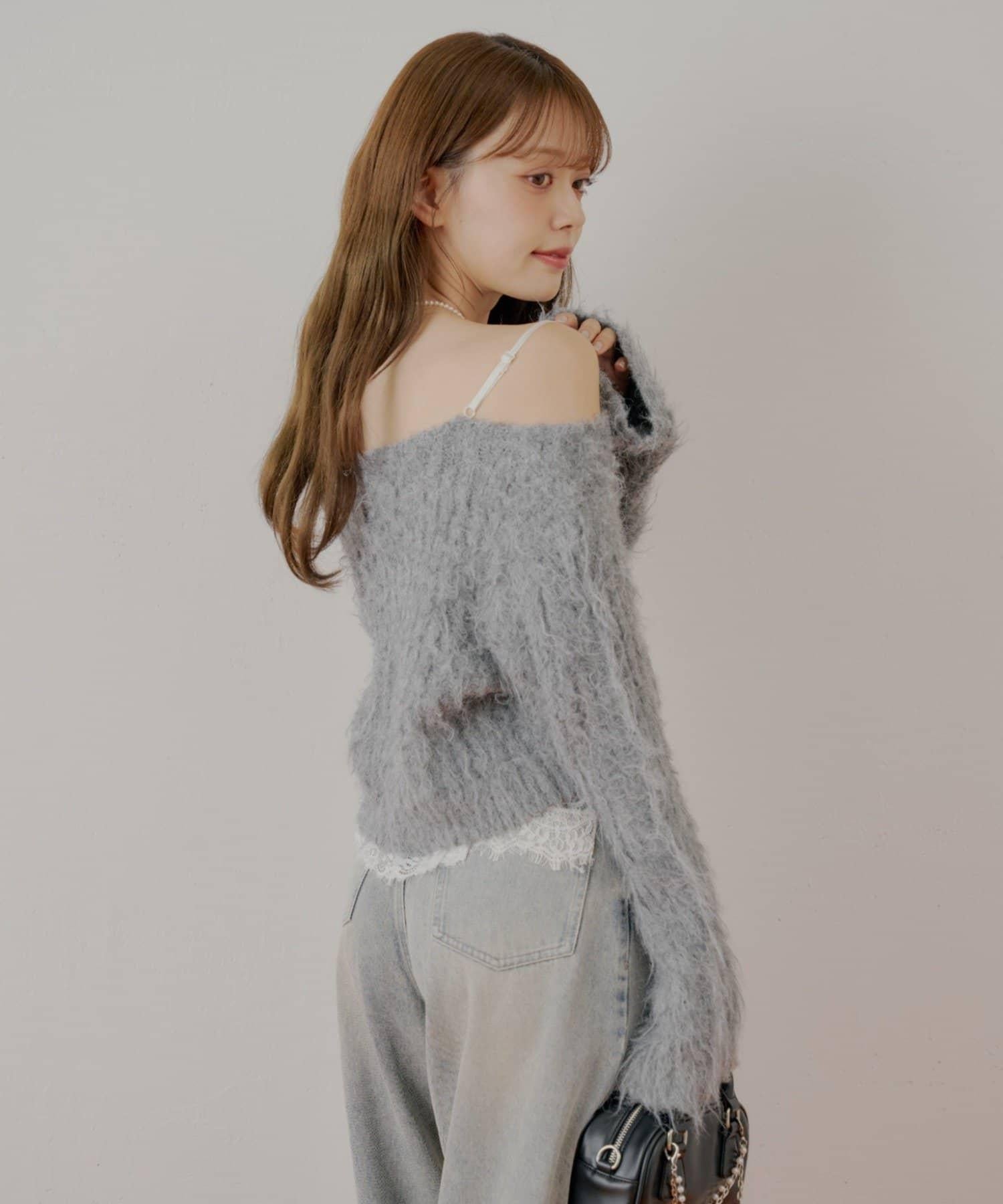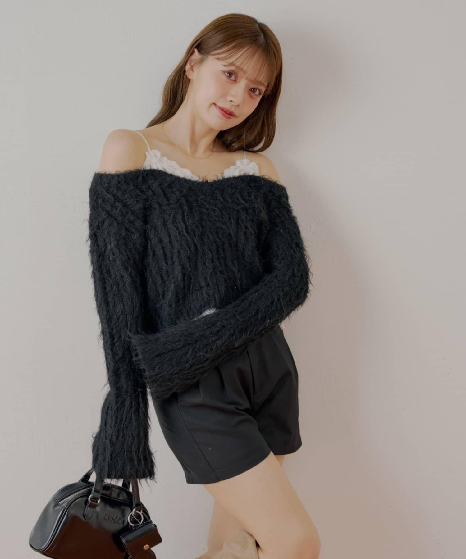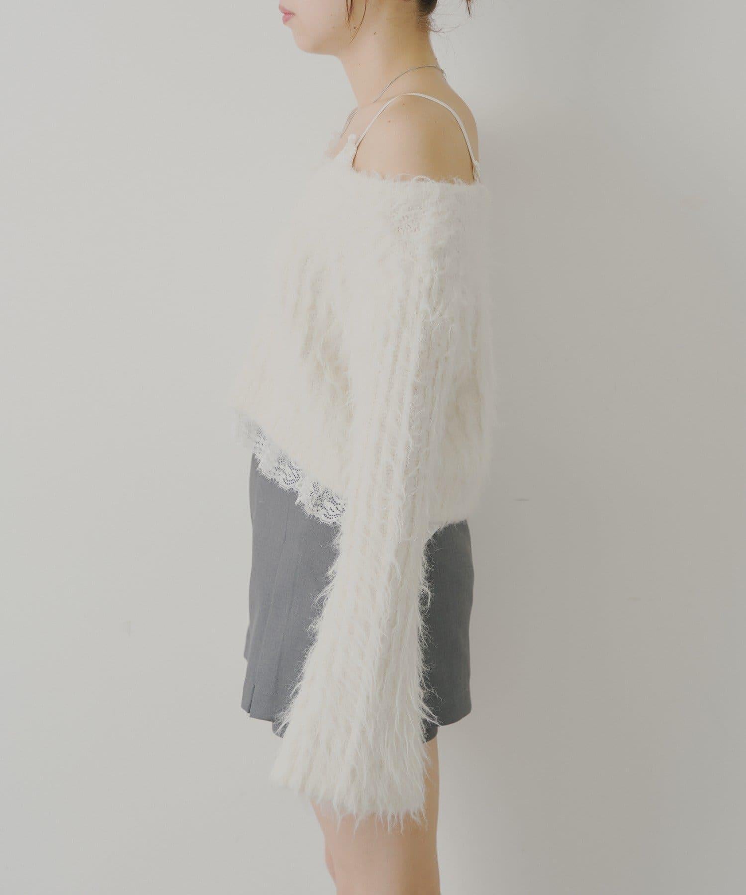 可愛的針織♡,蕾絲和毛茸茸的針織對接設計