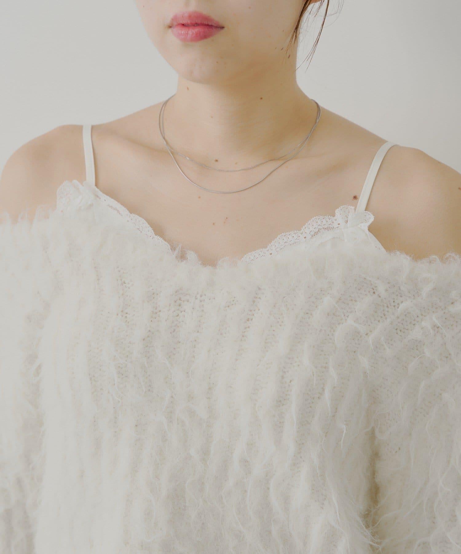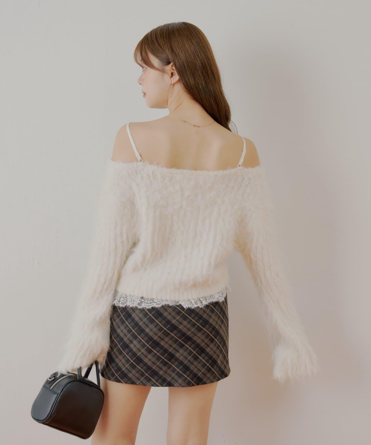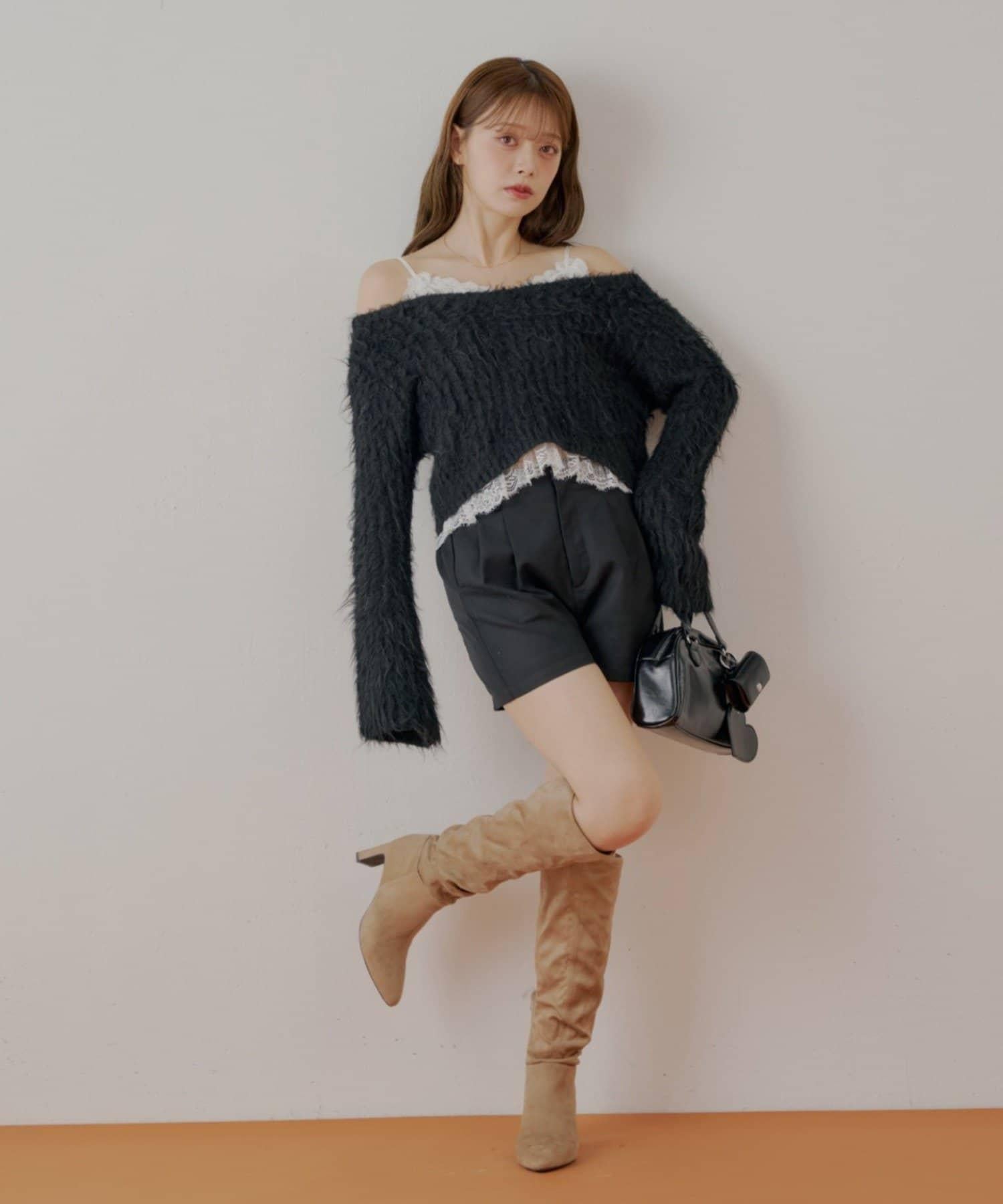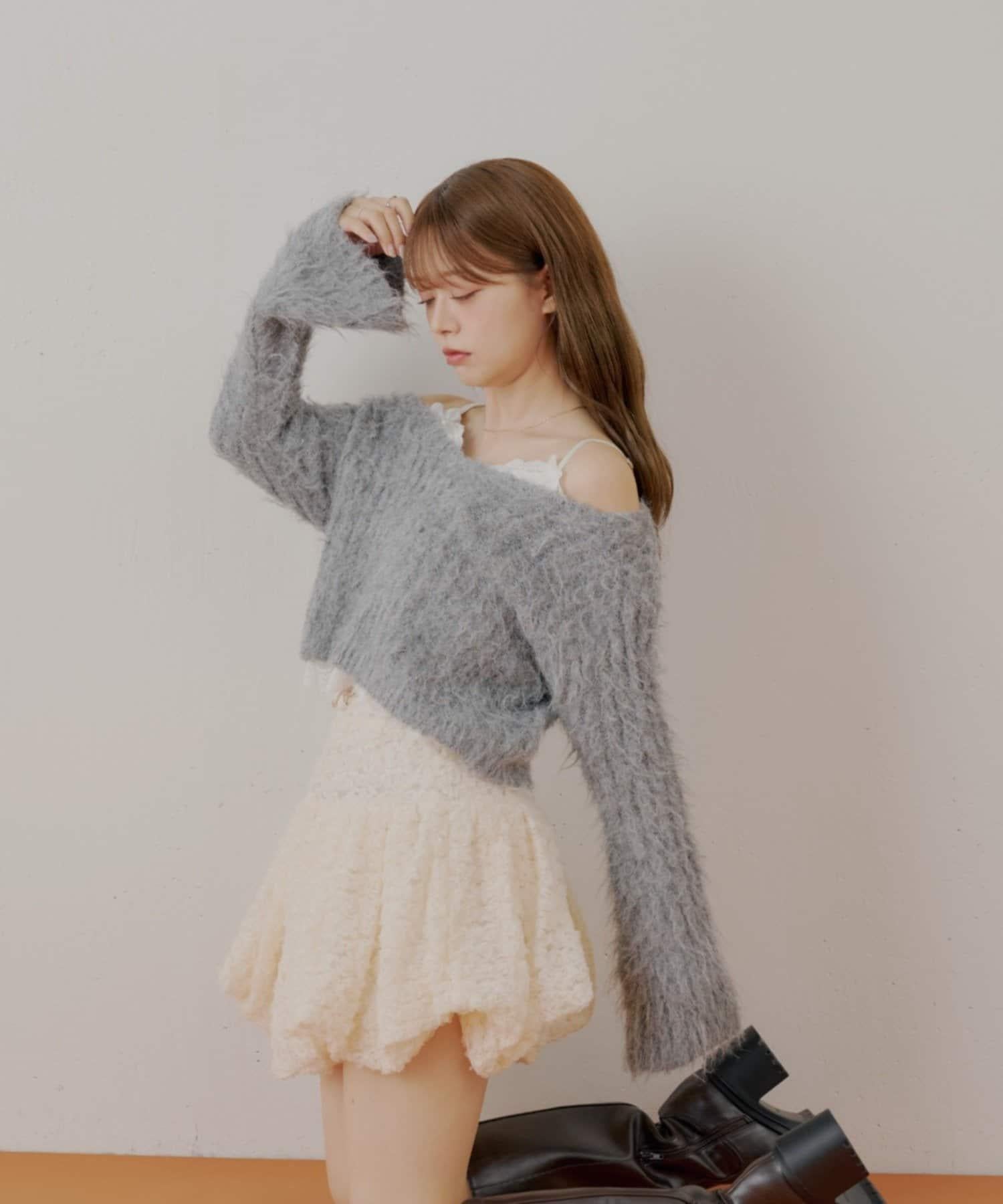 可愛的針織♡,蕾絲和毛茸茸的針織對接設計