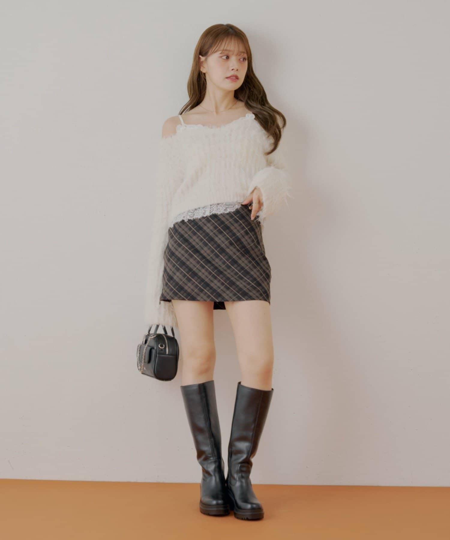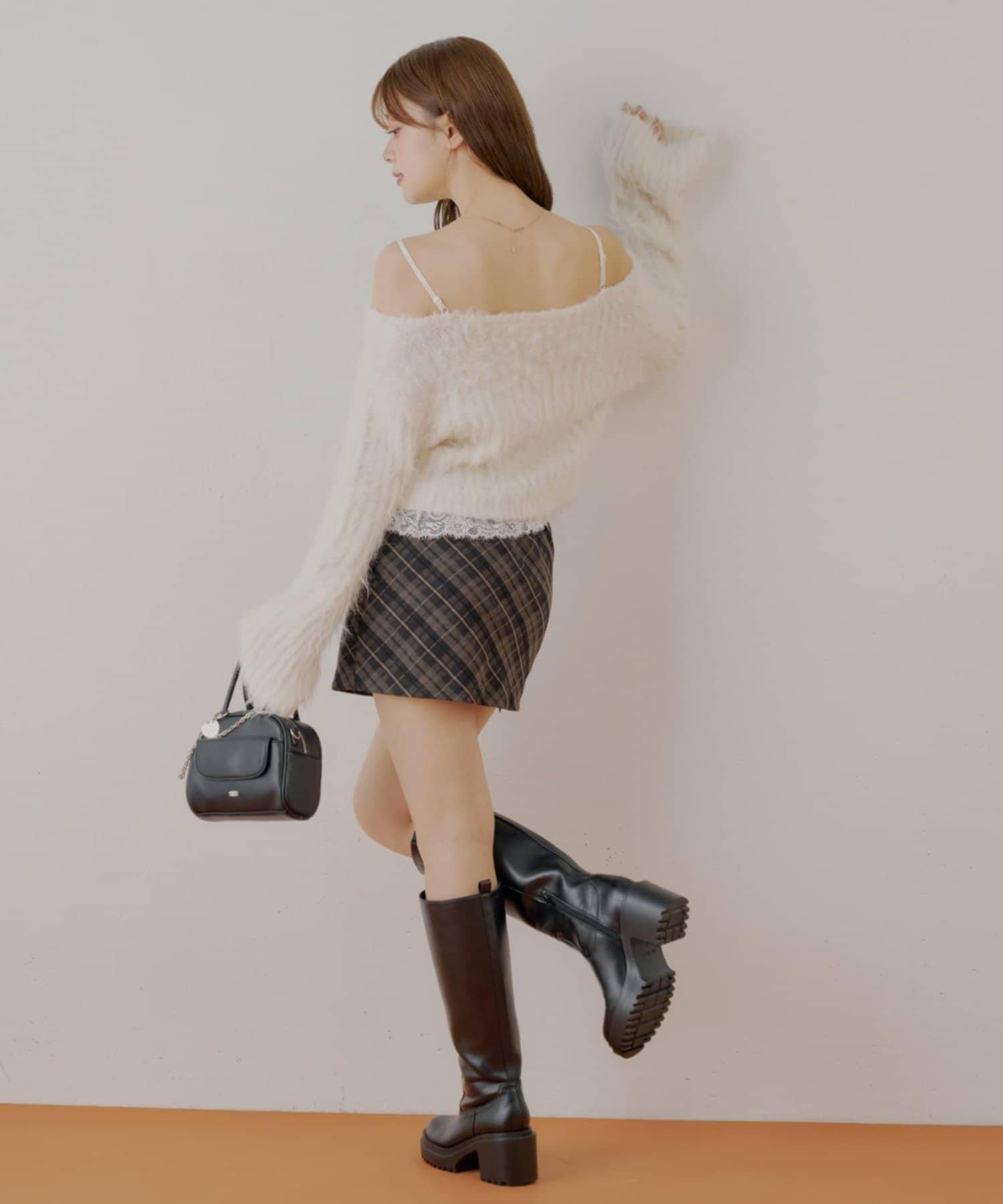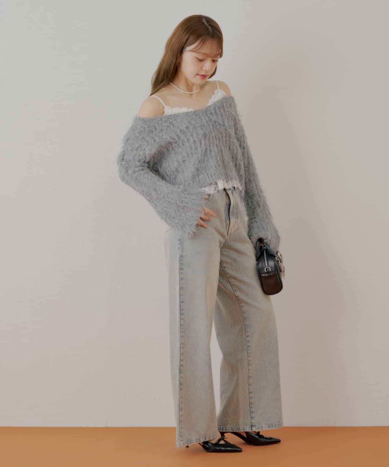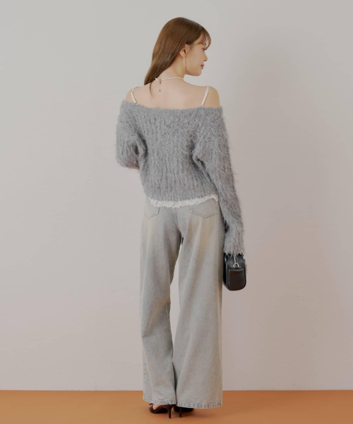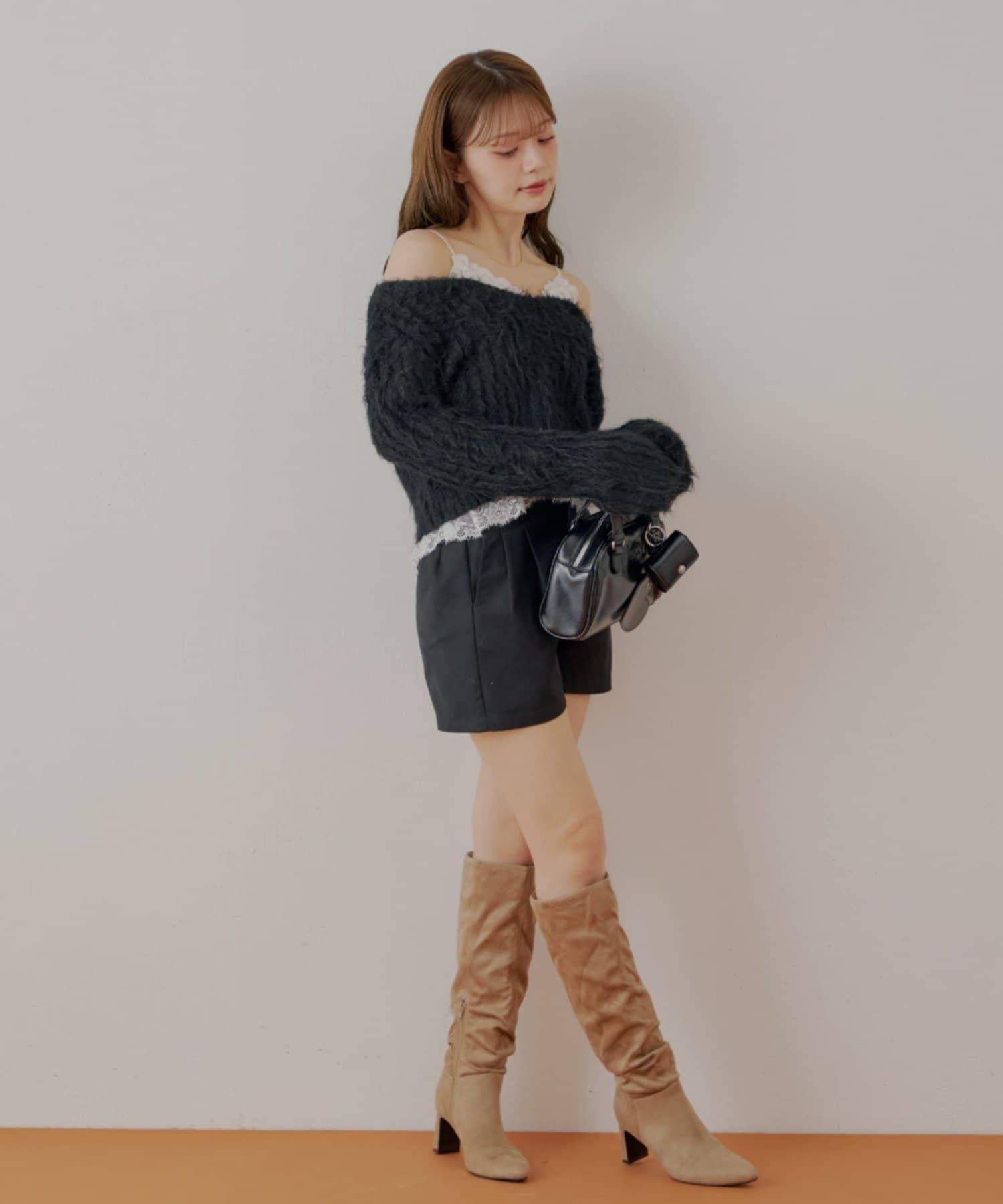 可愛的針織♡,蕾絲和毛茸茸的針織對接設計