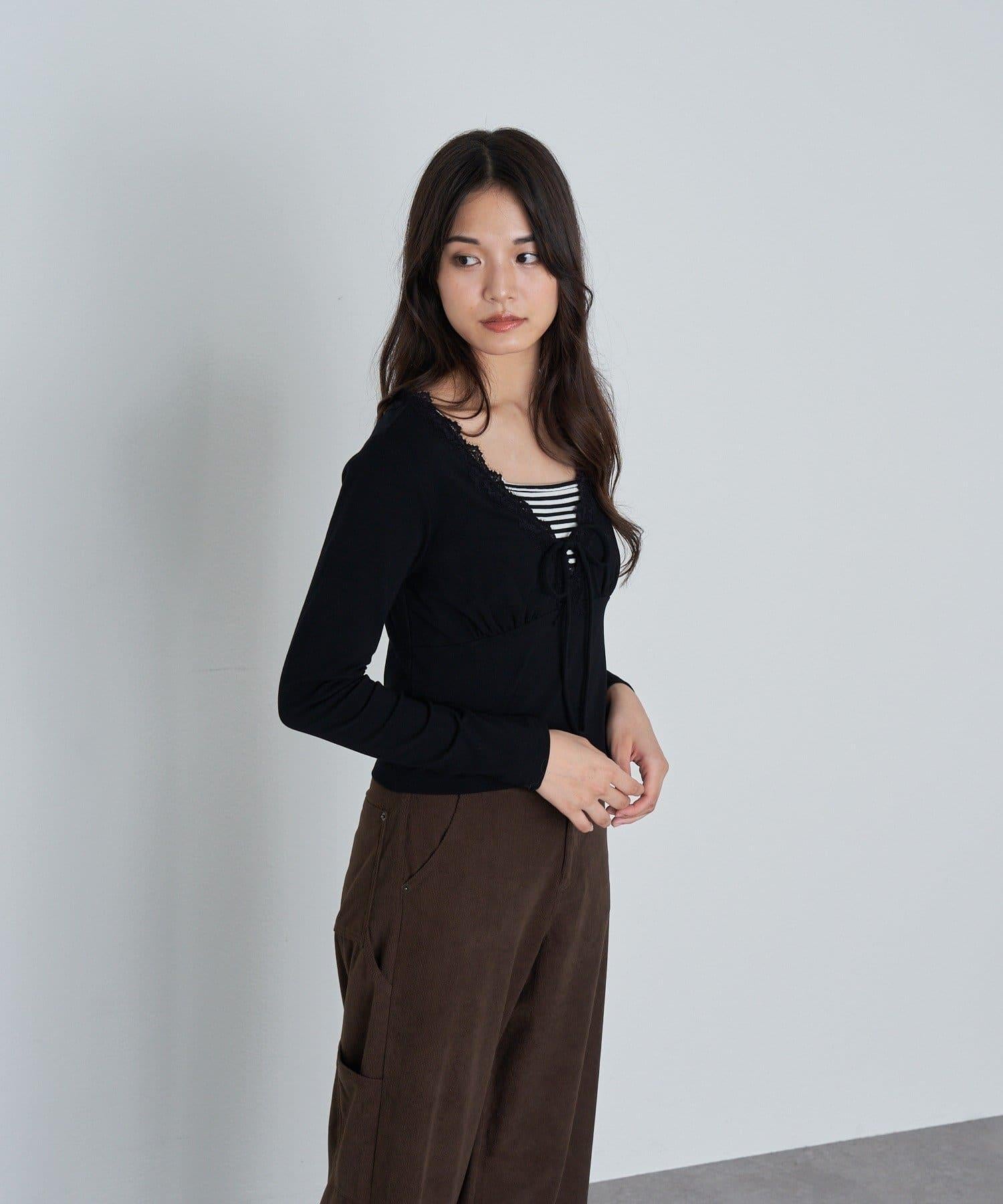 上衣採用彈力適中的面料製成,V 領設計打造出優美的輪廓。