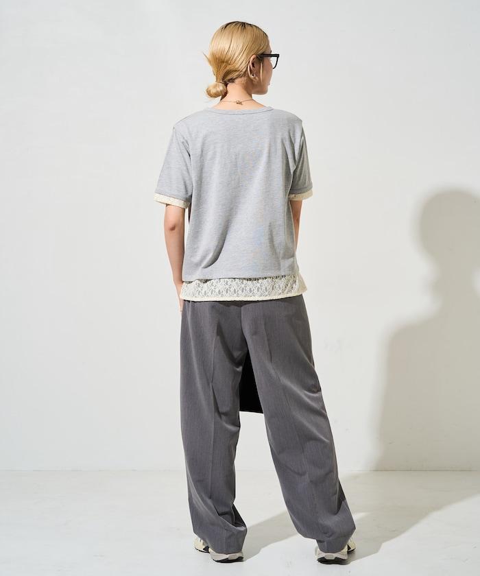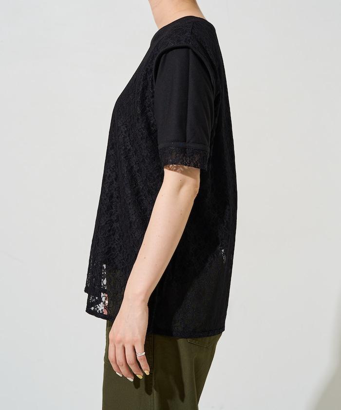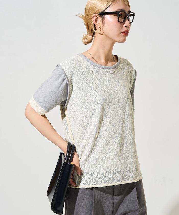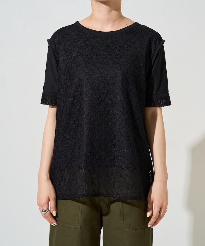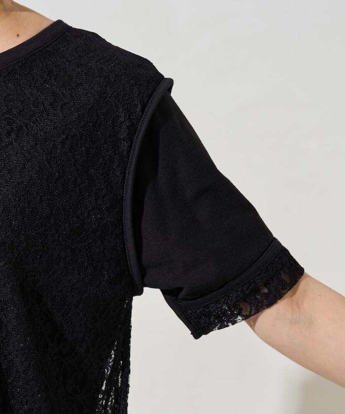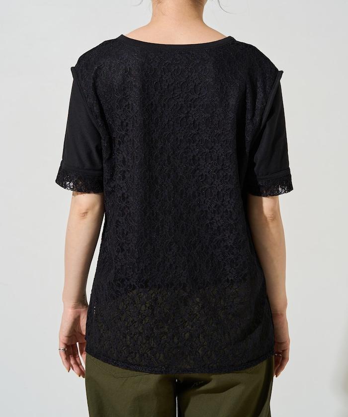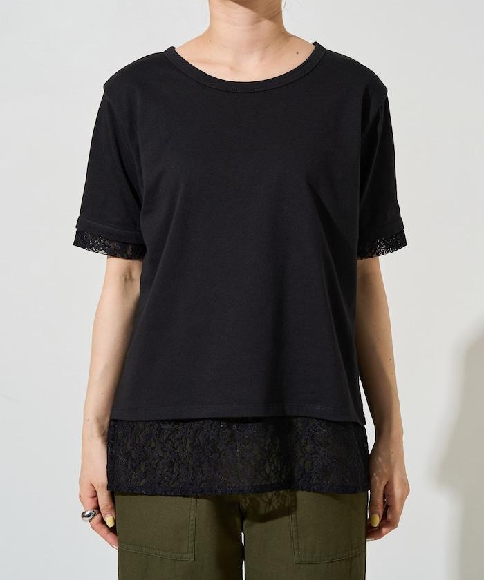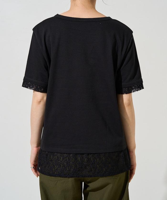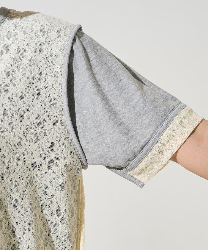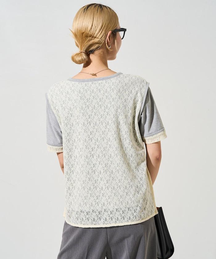 蕾絲拼接 分層 短袖 T恤(可反穿)