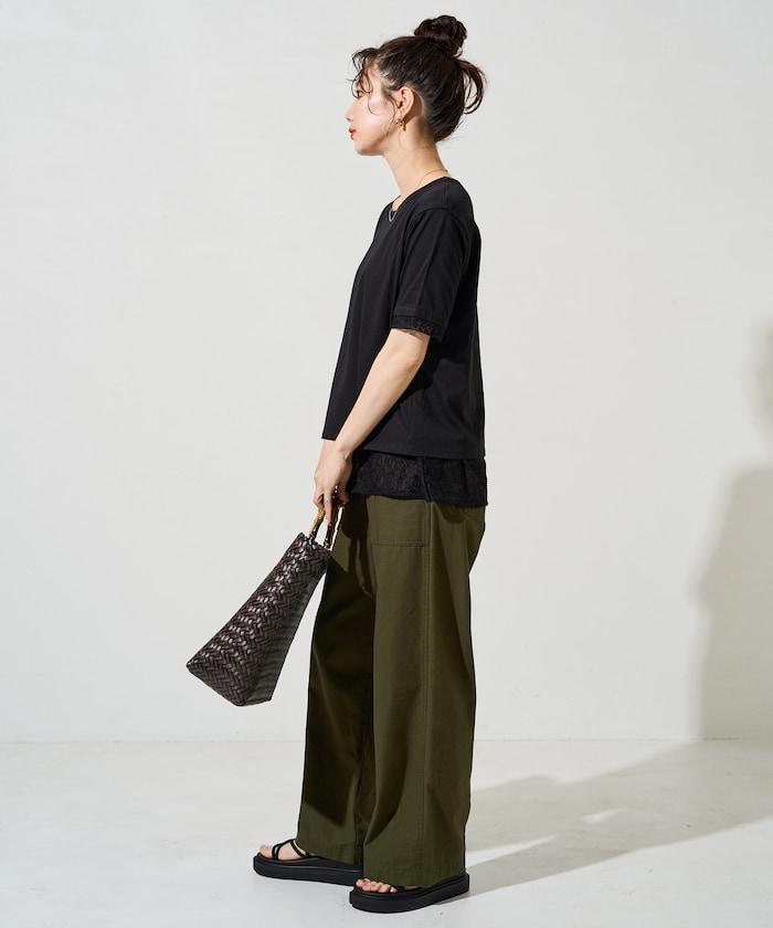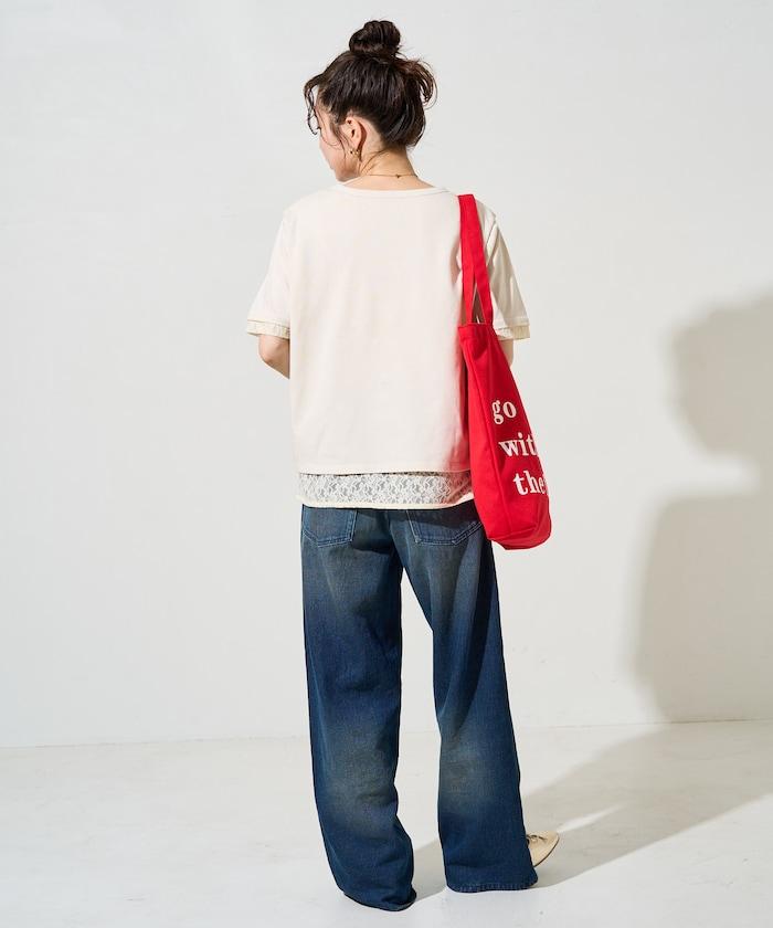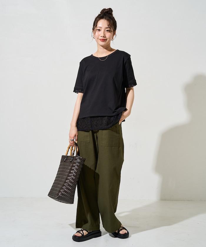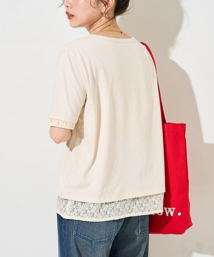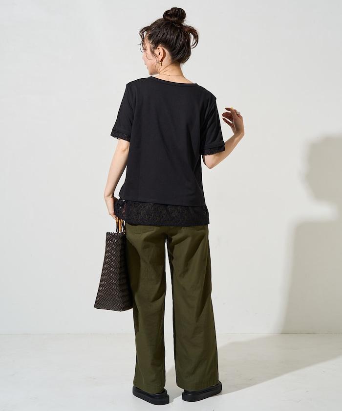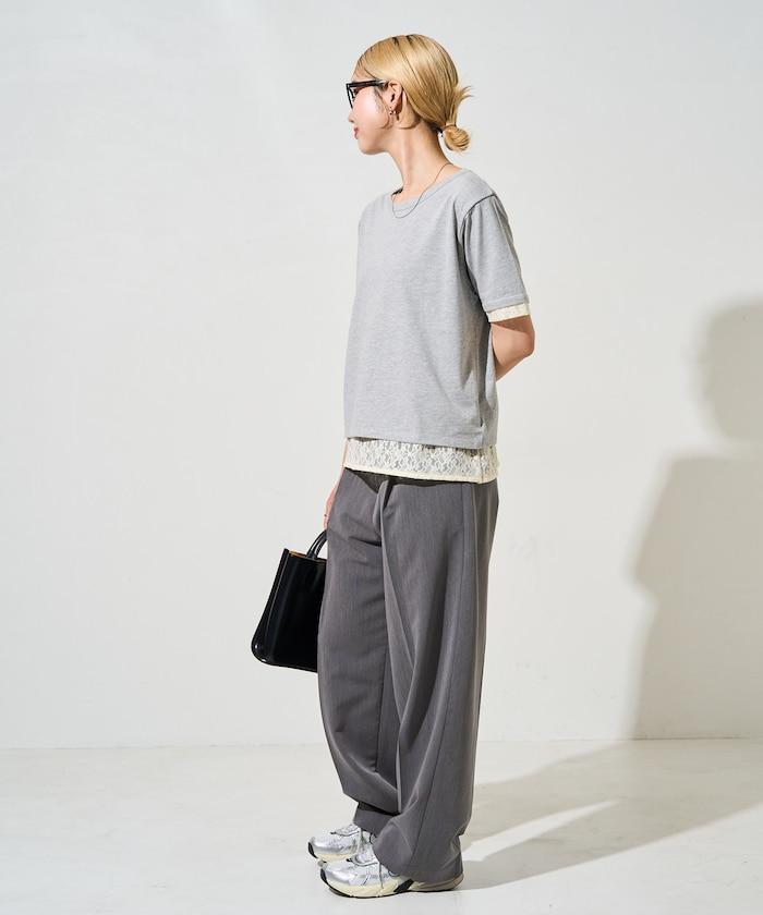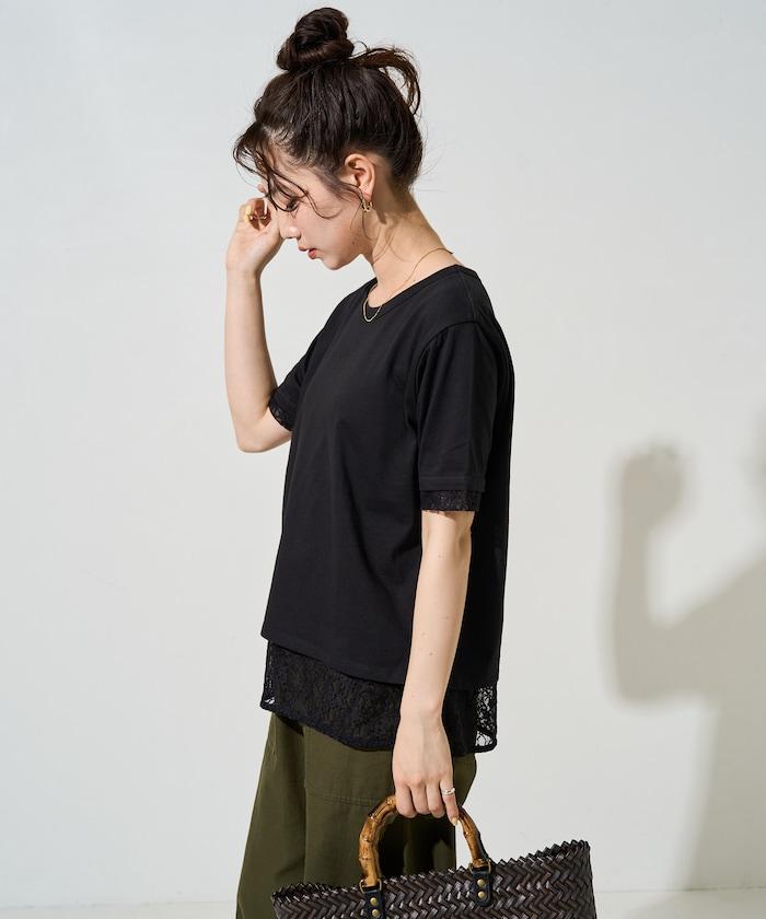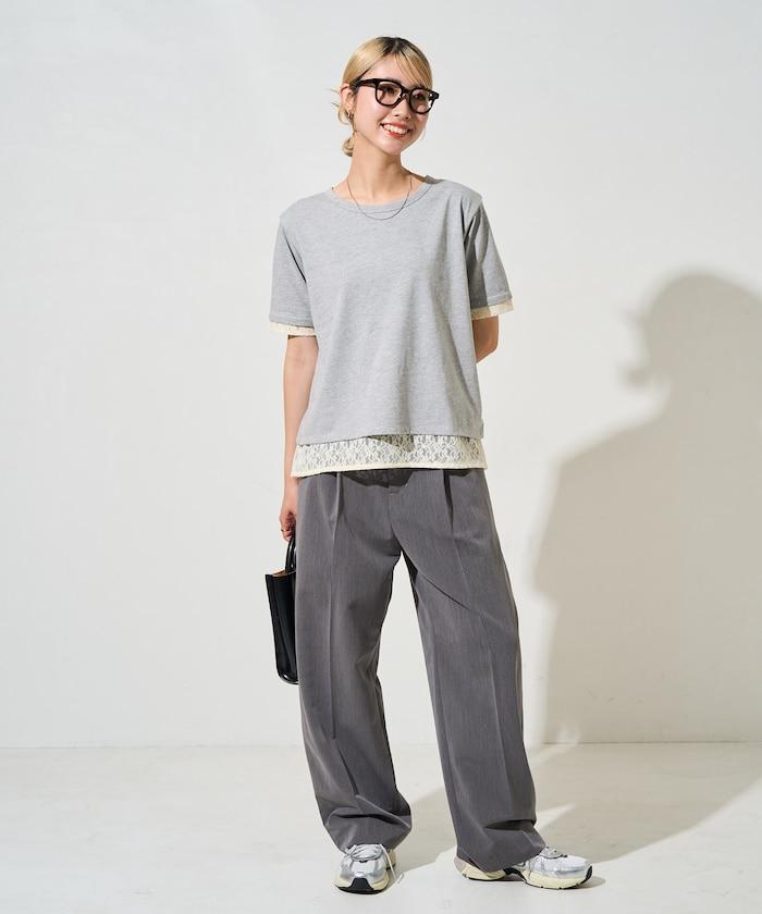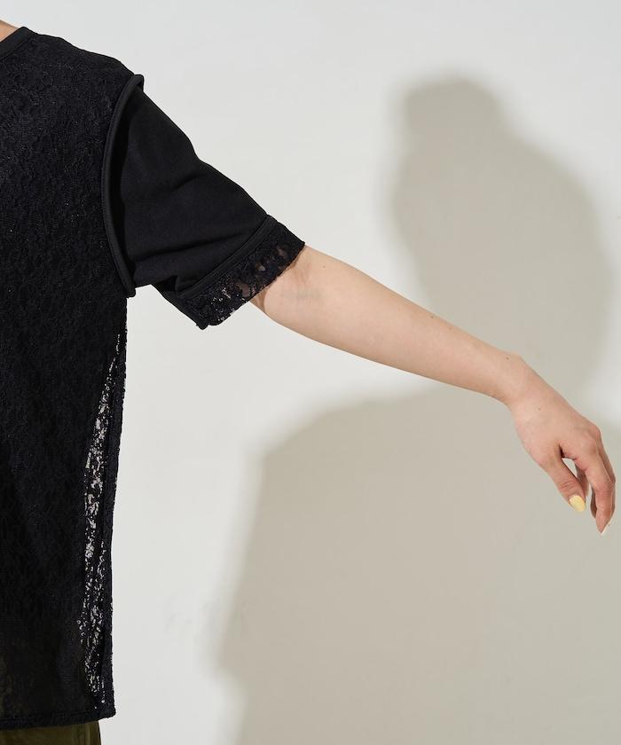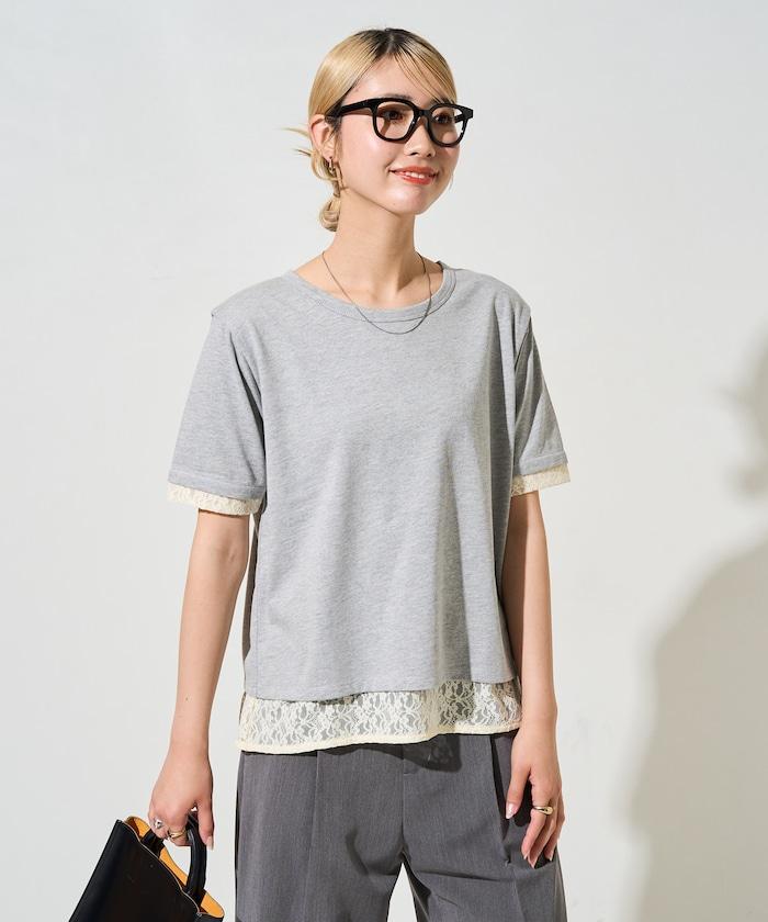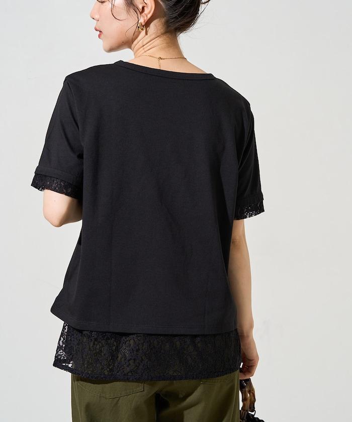蕾絲拼接 分層 短袖 T恤(可反穿)