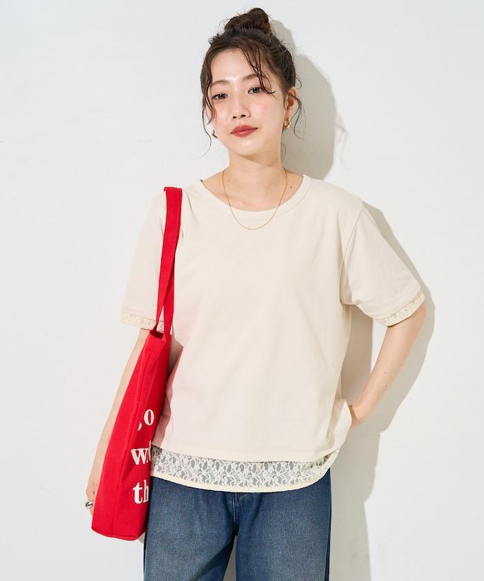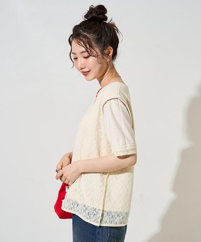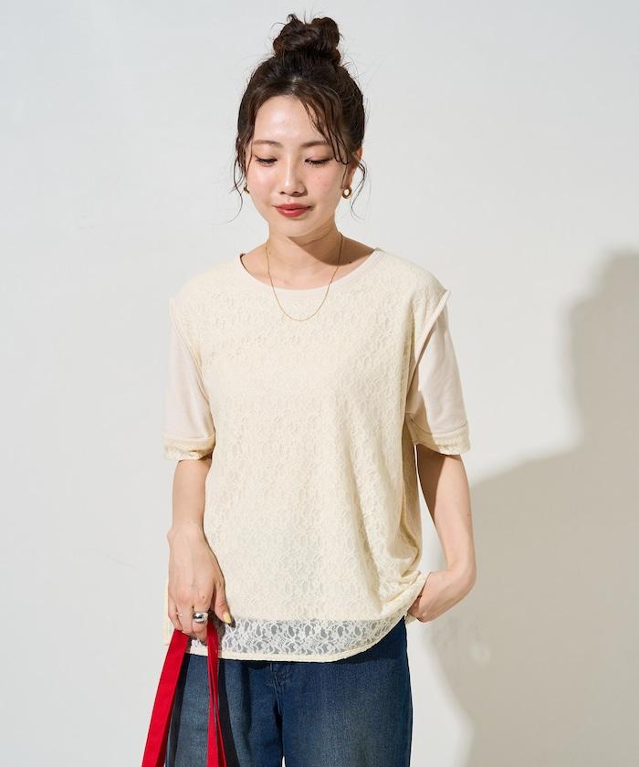 當素面朝外時,從這款多層 T 恤的下襬處可以看到蕾絲。