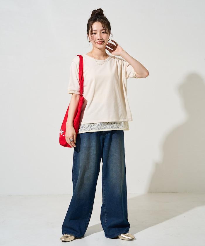 如果能看到蕾絲的一抹亮色,那麼普通的純色 T 恤和牛仔褲組合就會顯得更加清新!