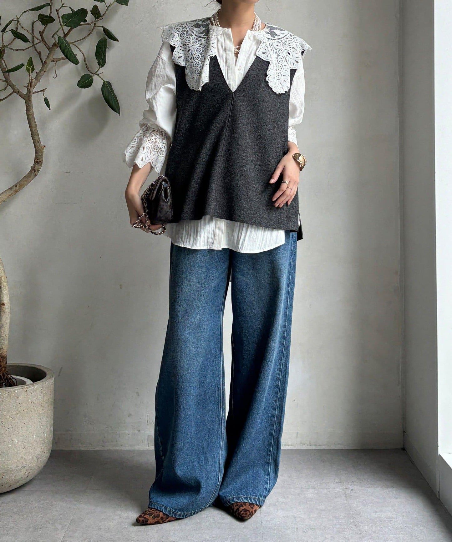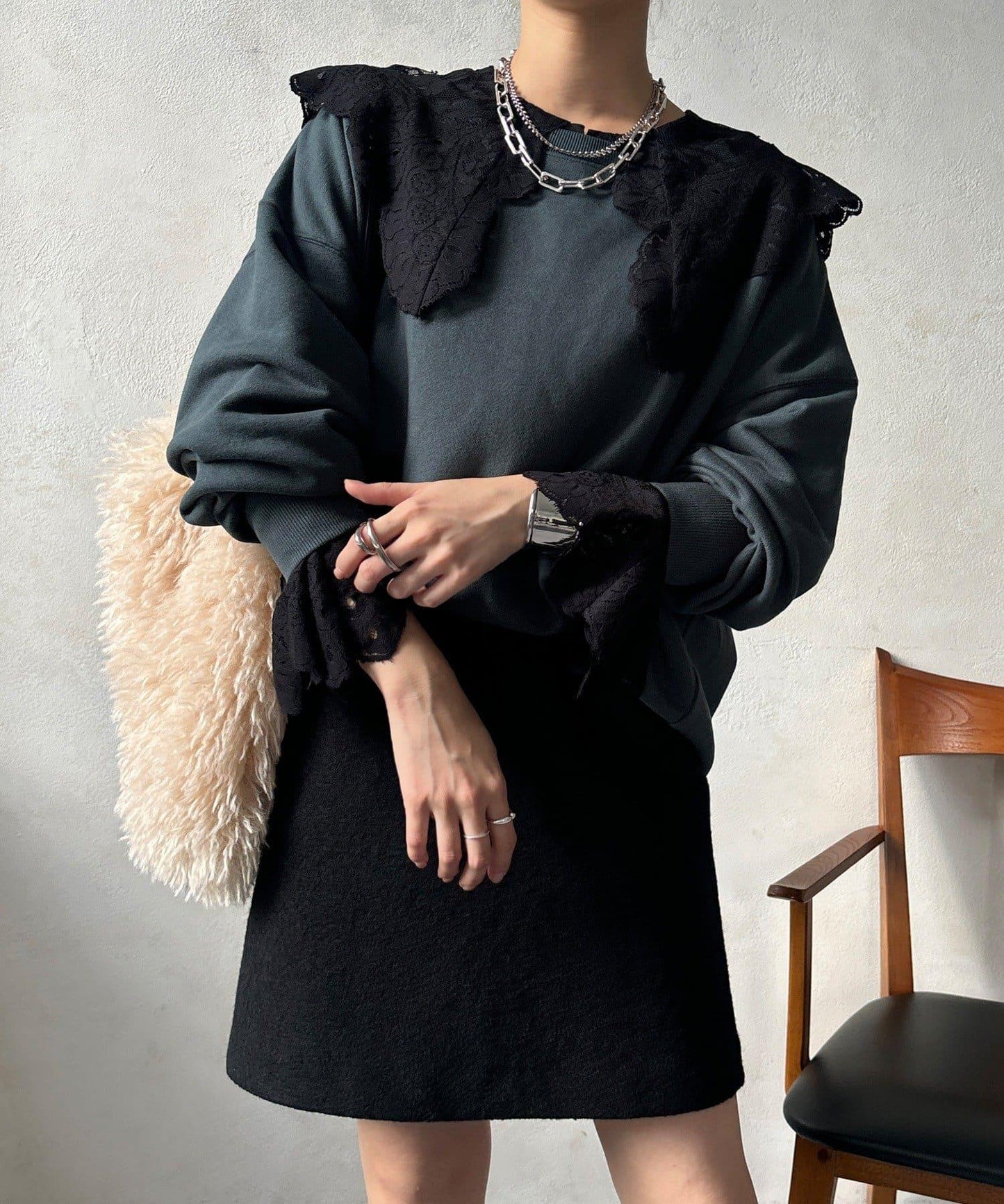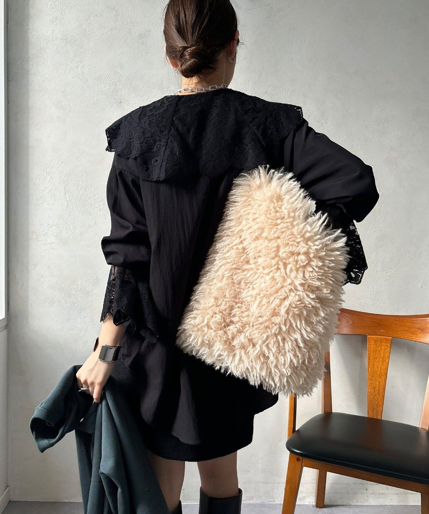 寬鬆的衣身剪裁,減少了體積感,可與針織衫整齊地疊放在一起。