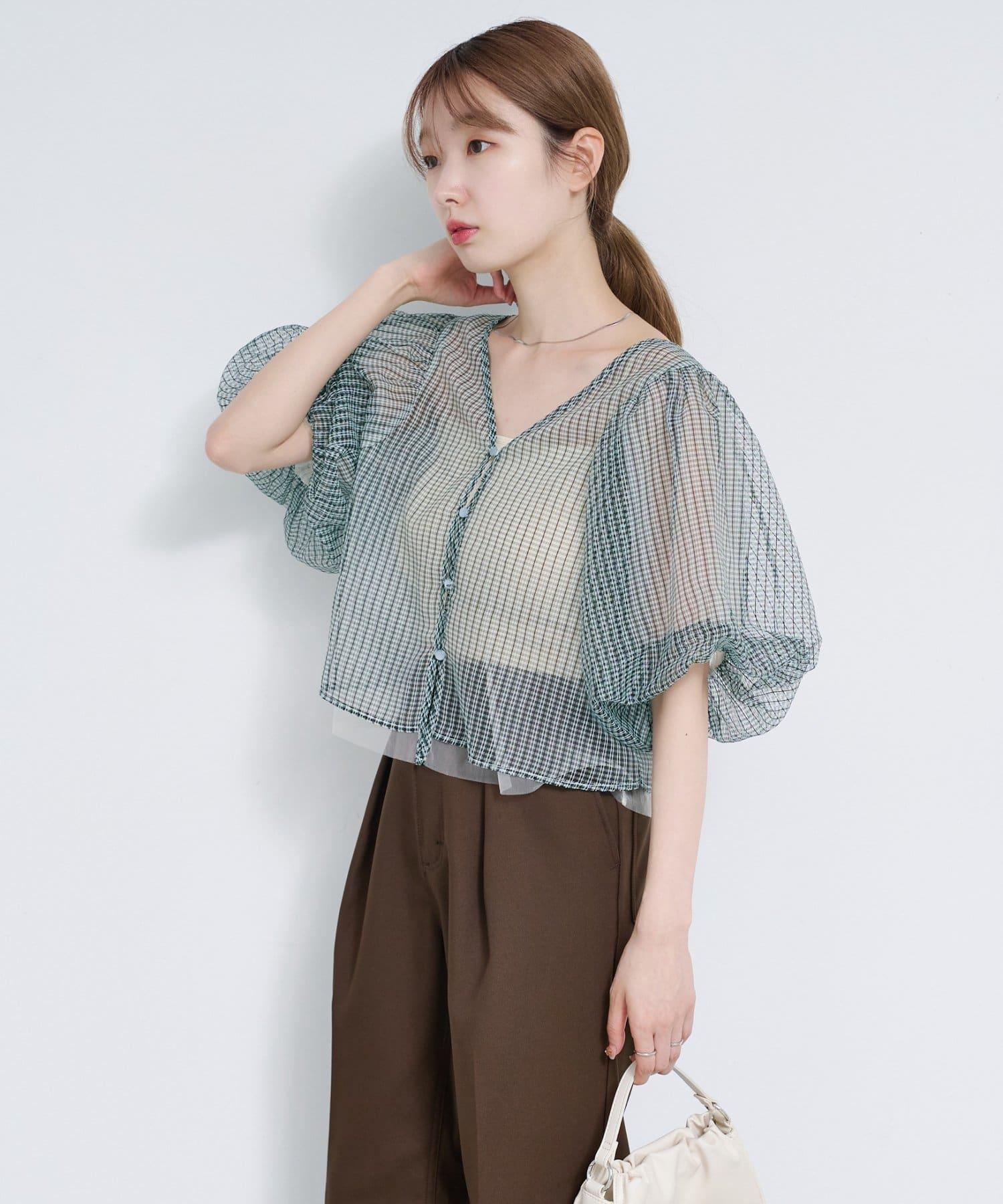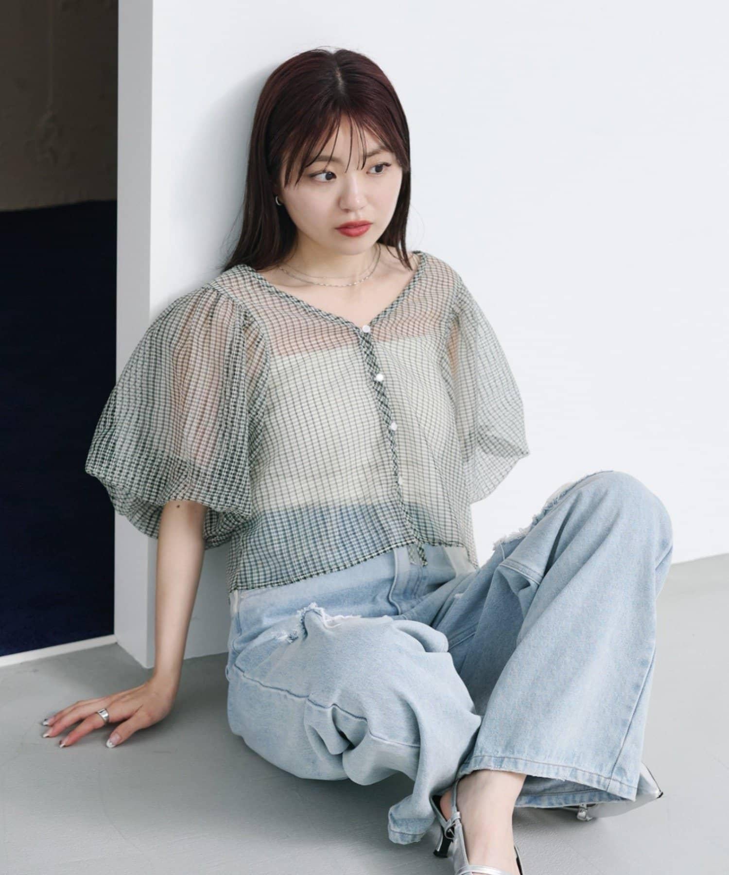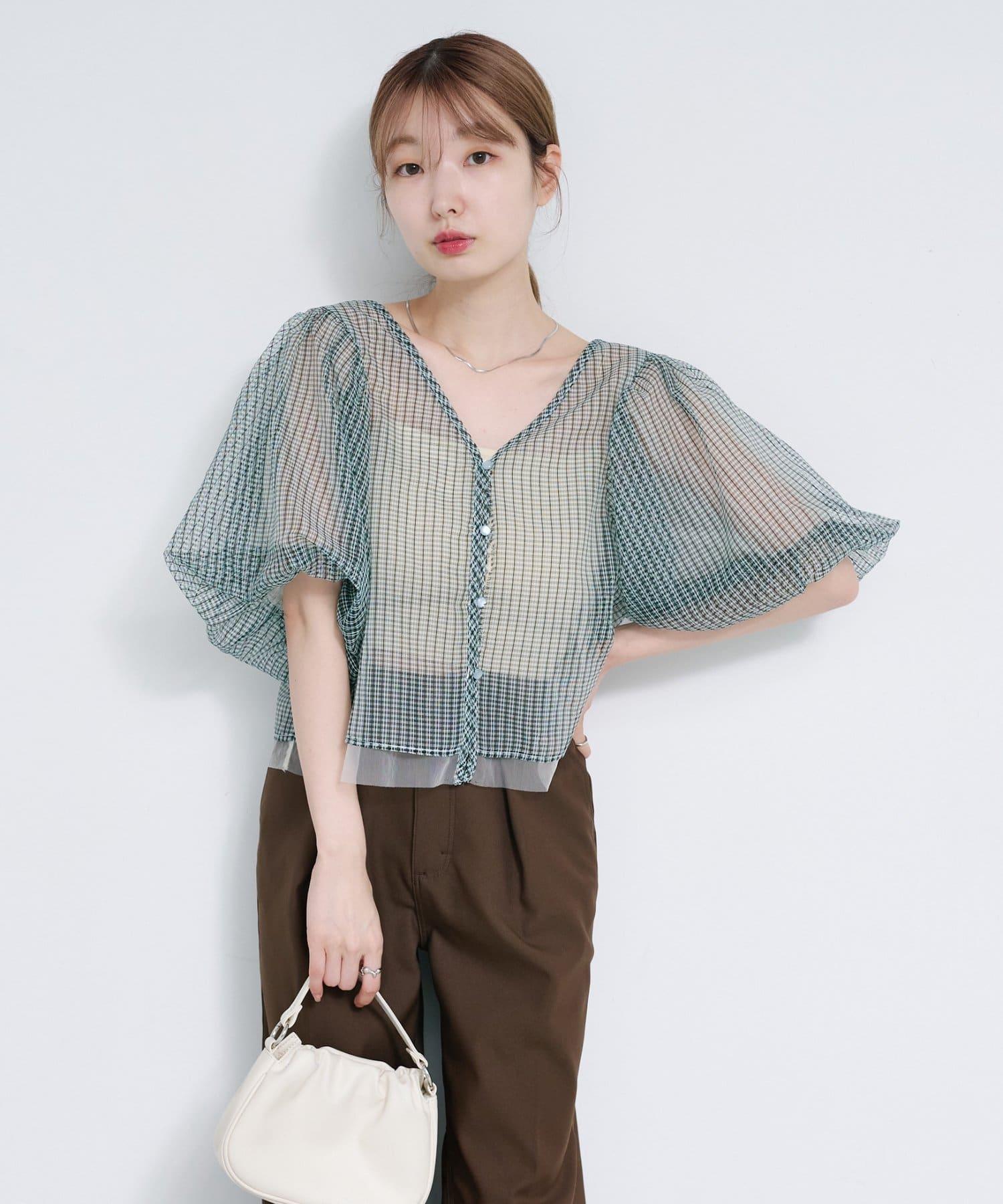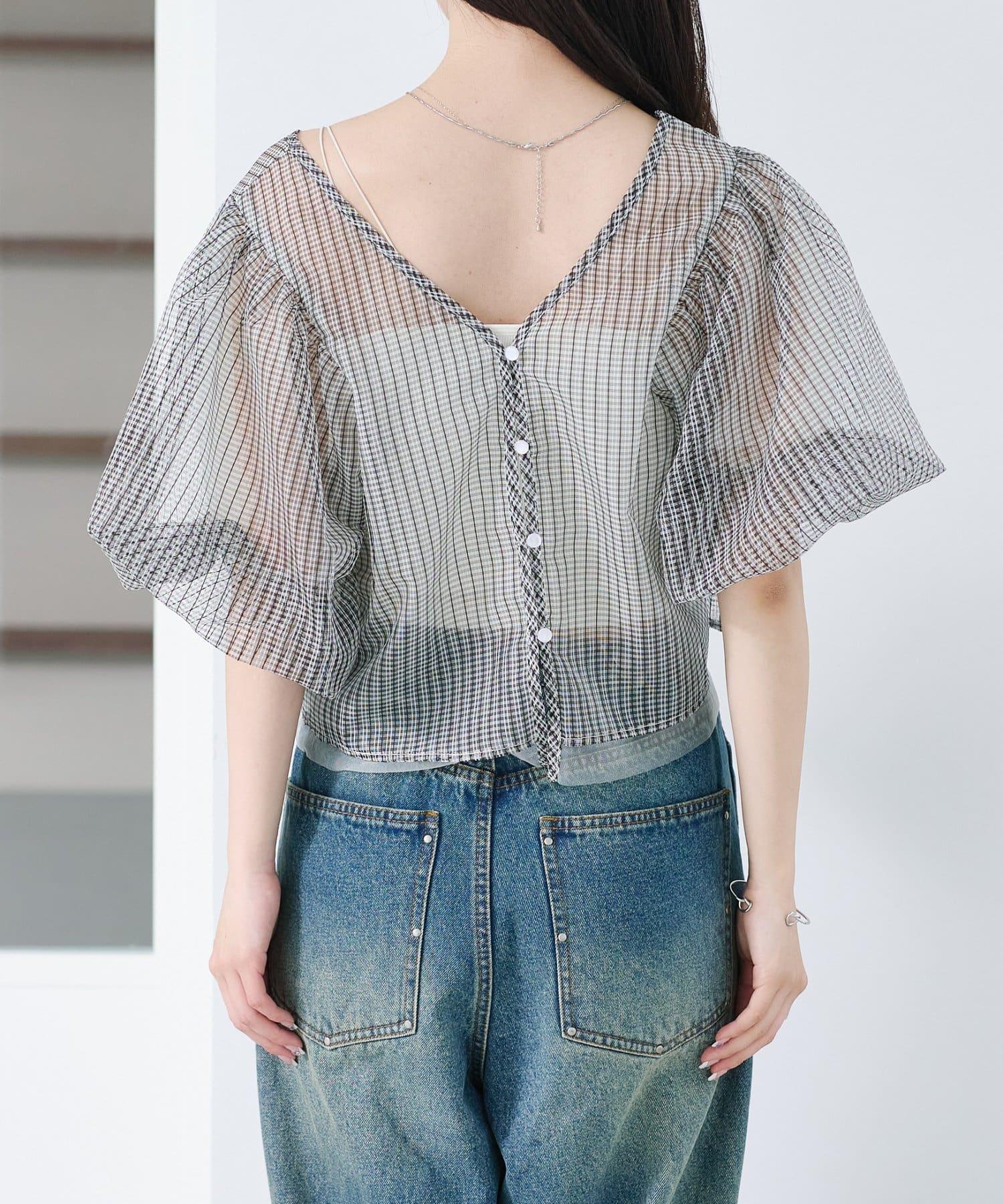 這款上衣有一種豐滿的感覺,但透明的面料使其看起來時尚而富有女人味。