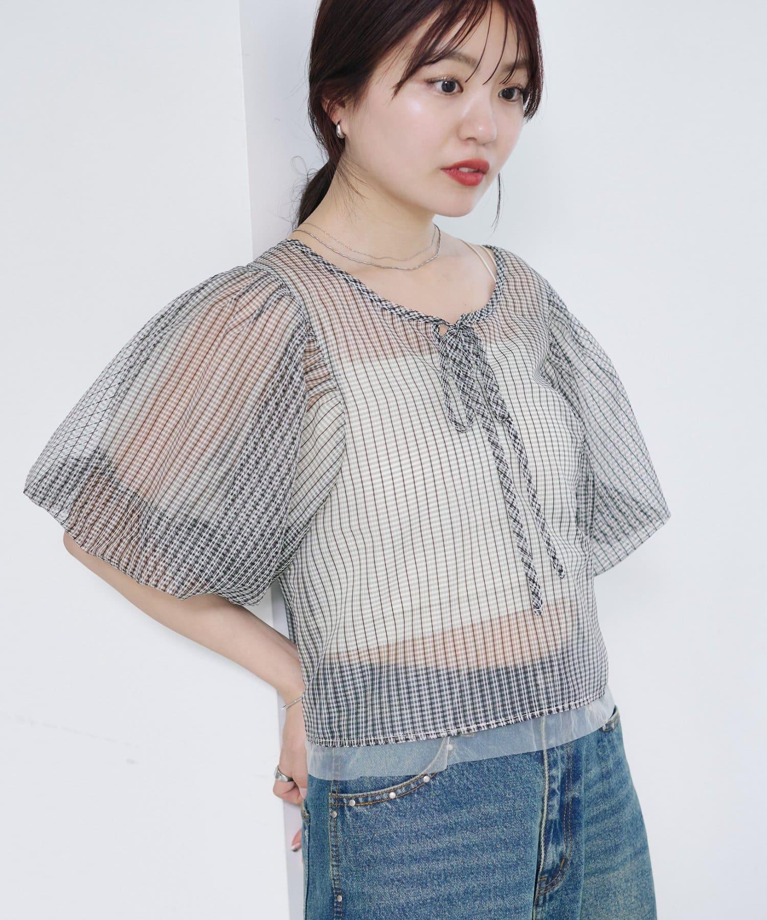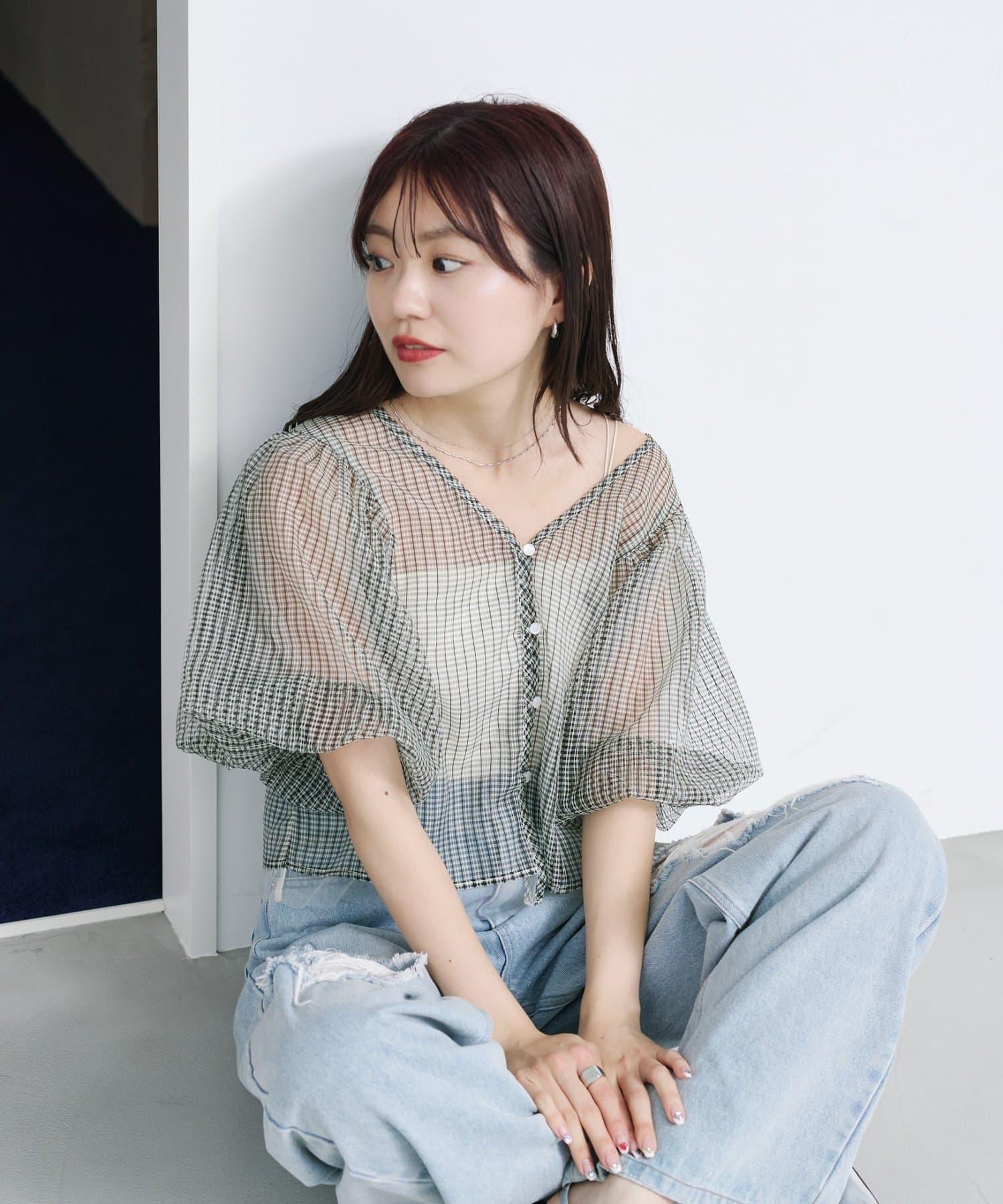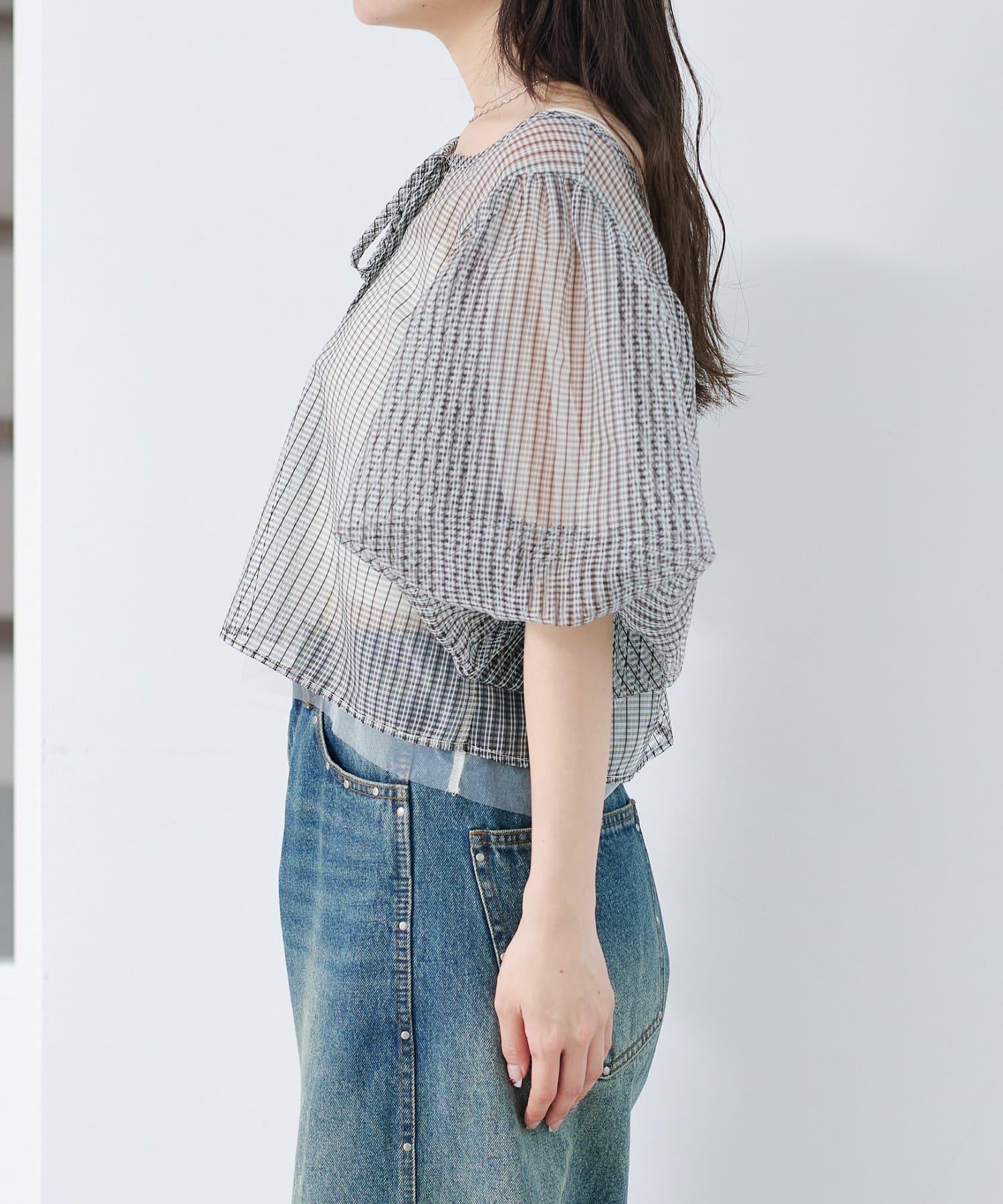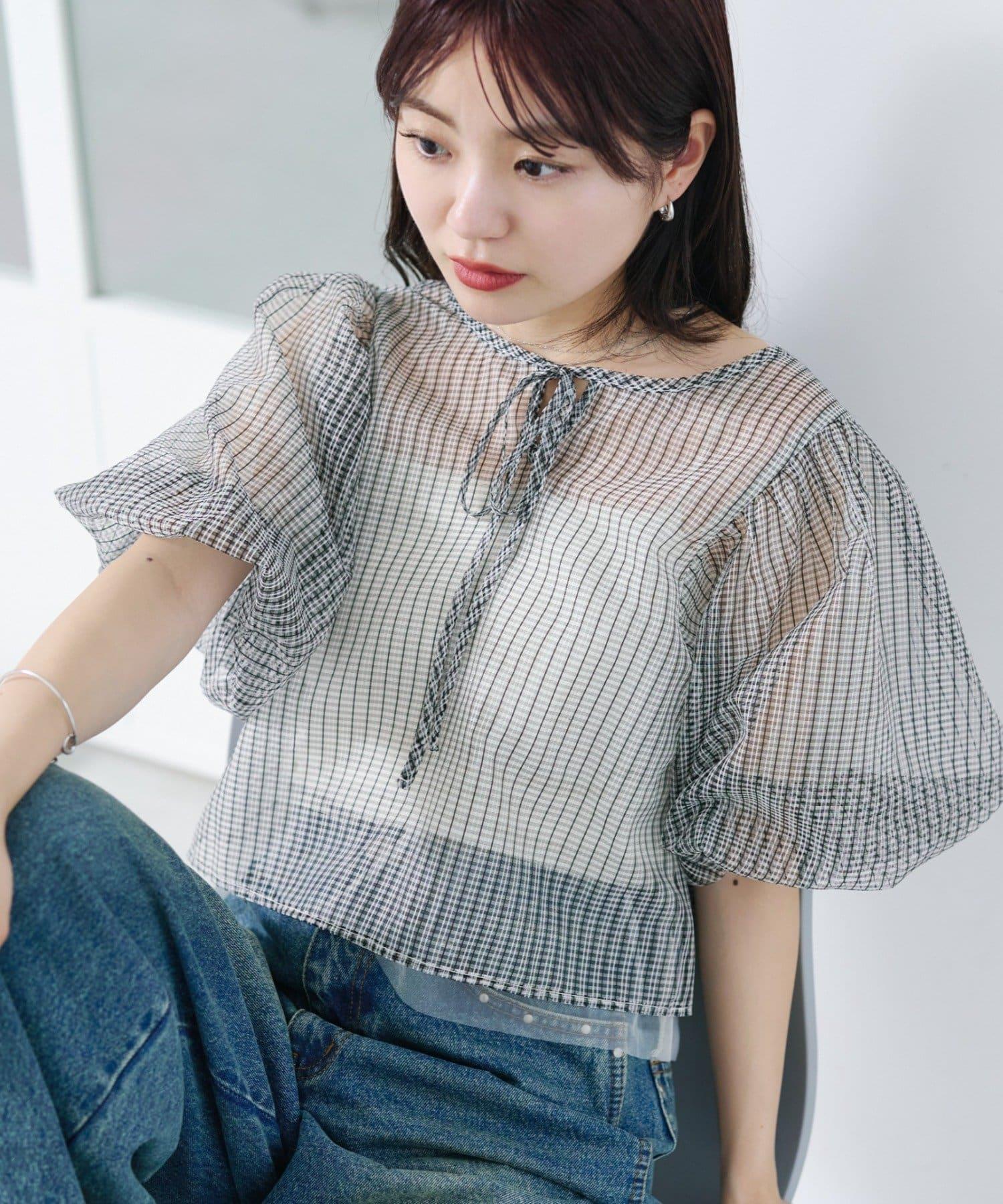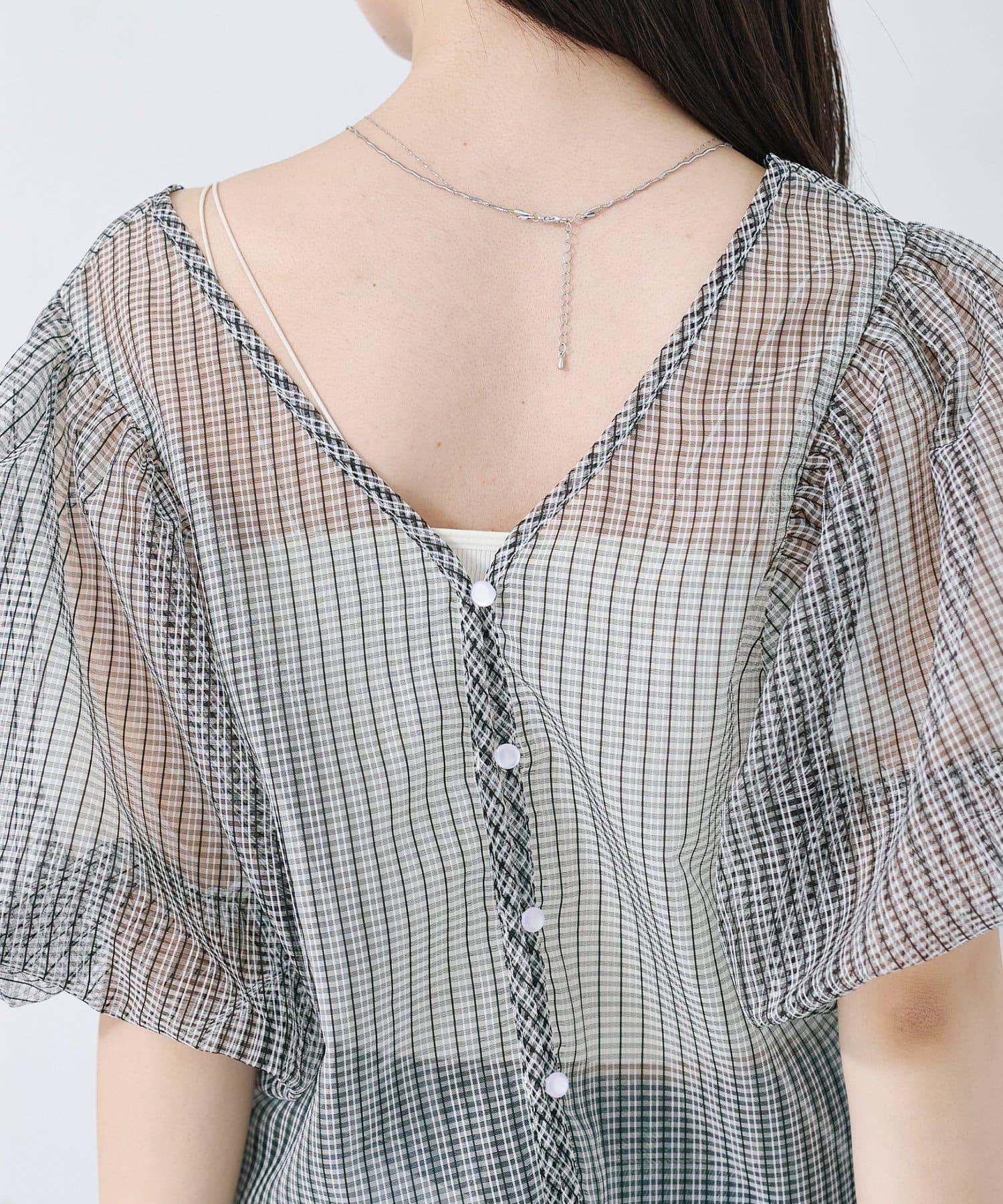 這款上衣有一種豐滿的感覺,但透明的面料使其看起來時尚而富有女人味。
