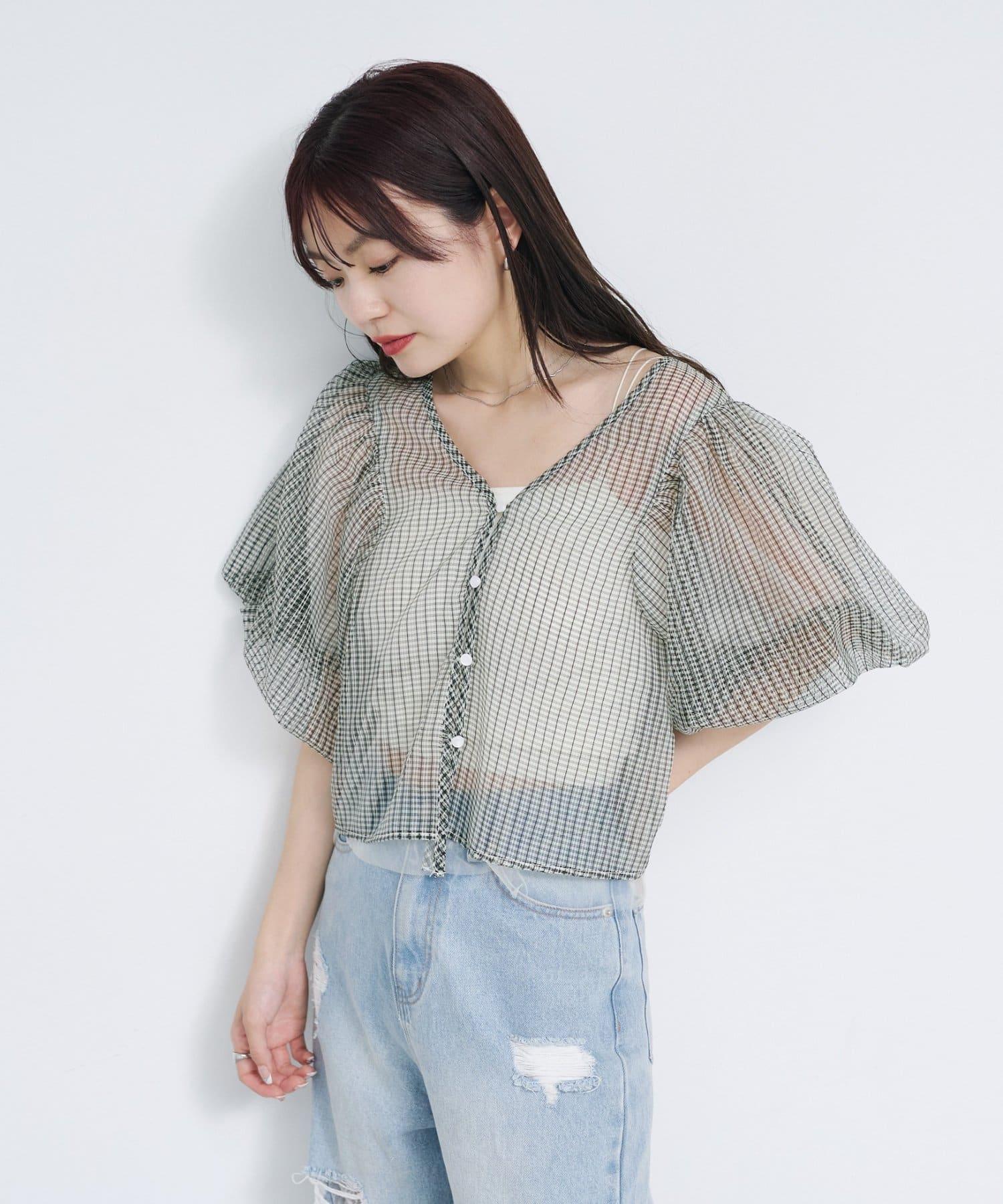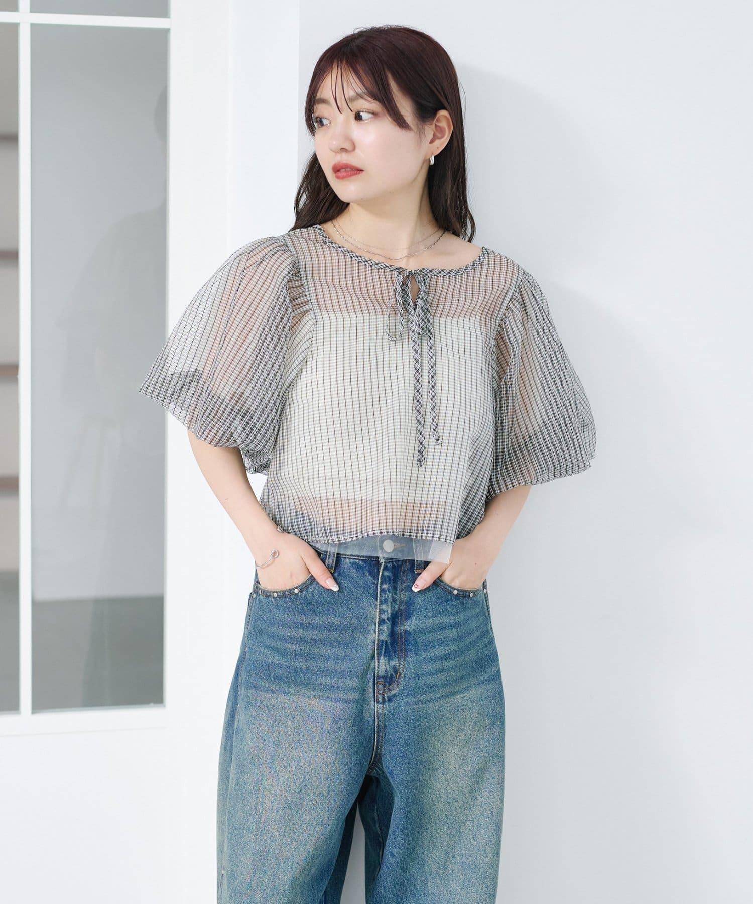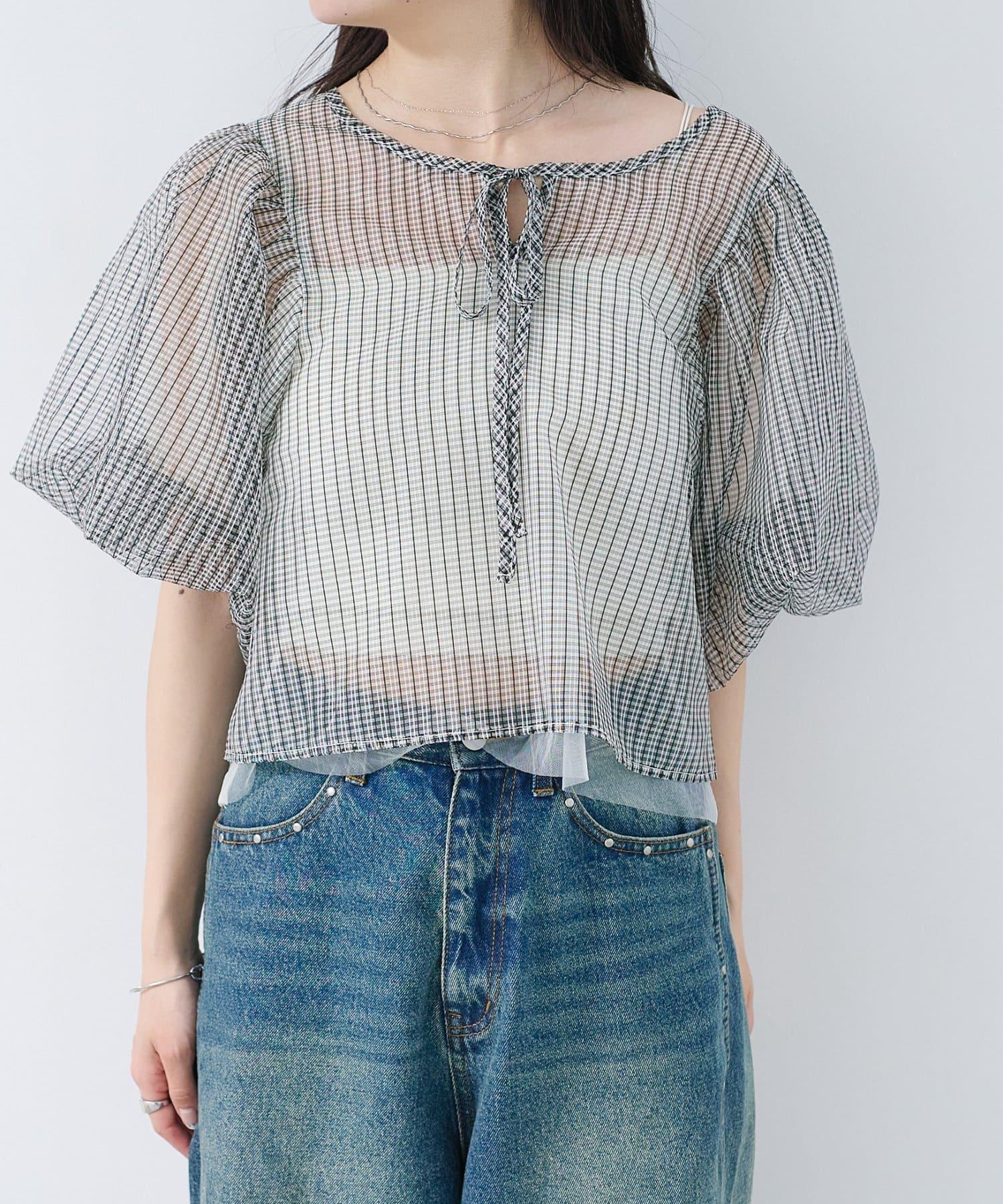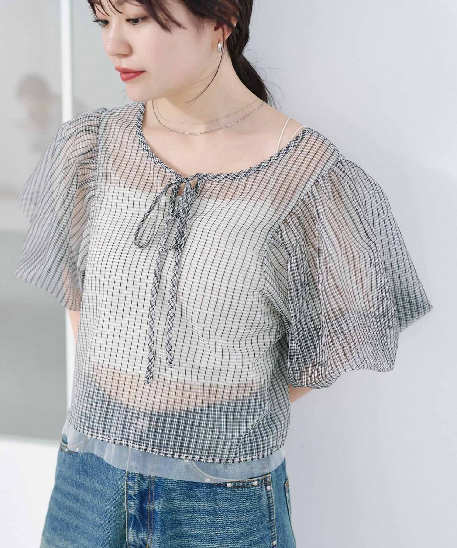 這款上衣有一種豐滿的感覺,但透明的面料使其看起來時尚而富有女人味。