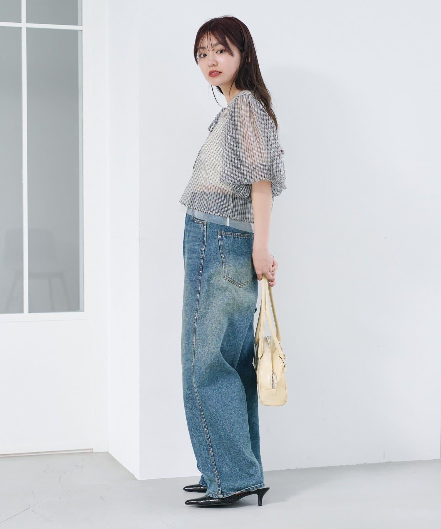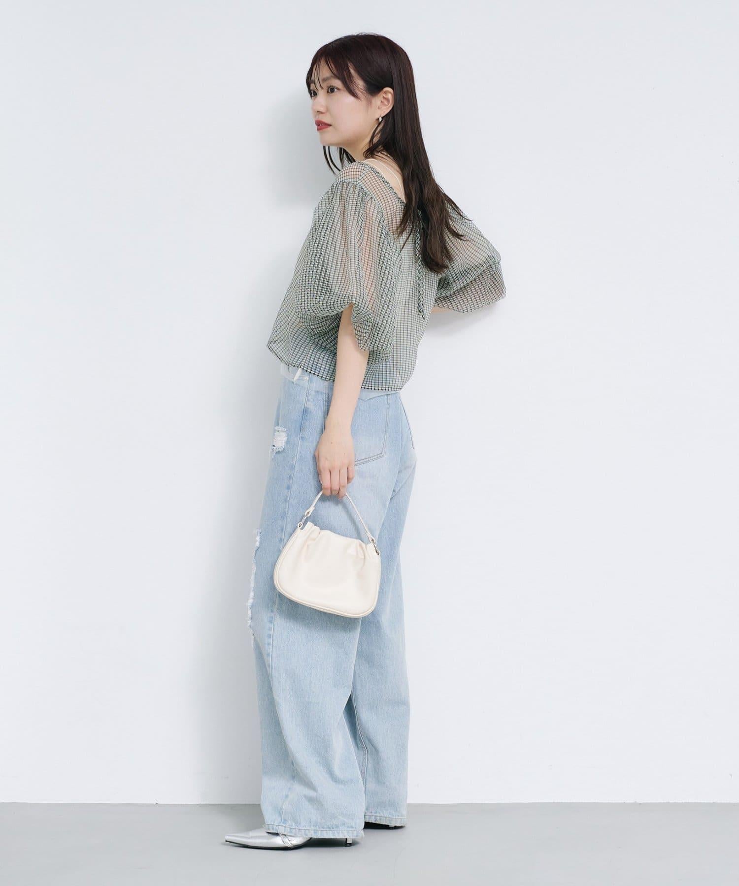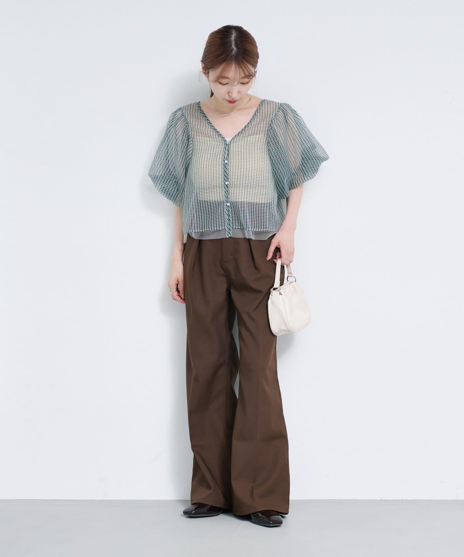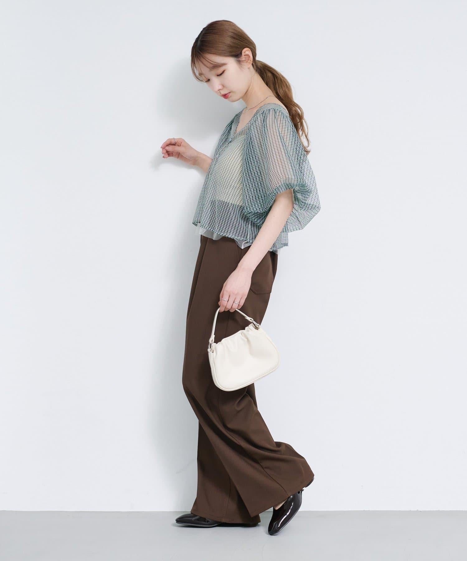 上衣的體積感很可愛,因此搭配長褲很有秋天的感覺。