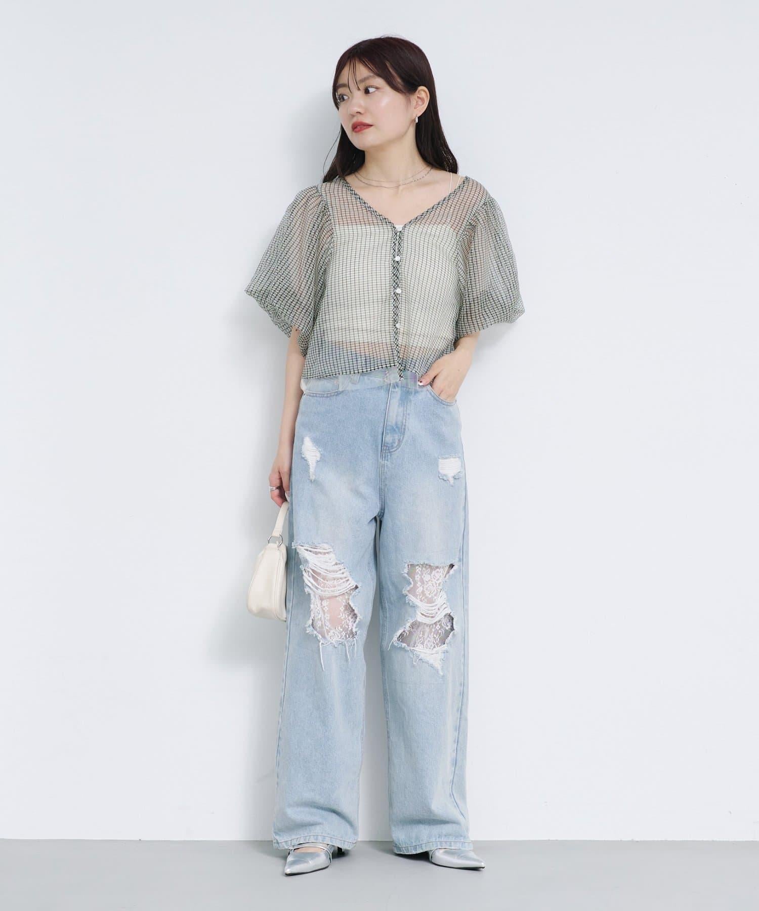 帶有甜美元素的上衣一定要搭配牛仔褲或運動褲,非常休閒。
