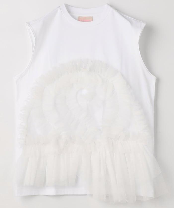 VIVIANO 風格 T 恤與荷葉邊相結合的無袖 T 恤。