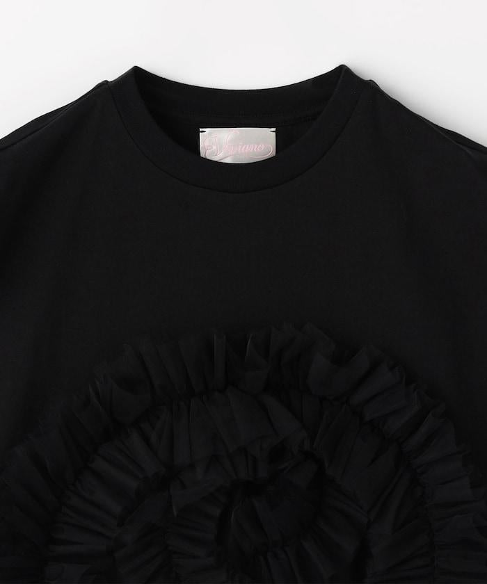 這款 T 恤是 T 恤與荷葉邊的結合,是 VIVIANO 的典型風格。