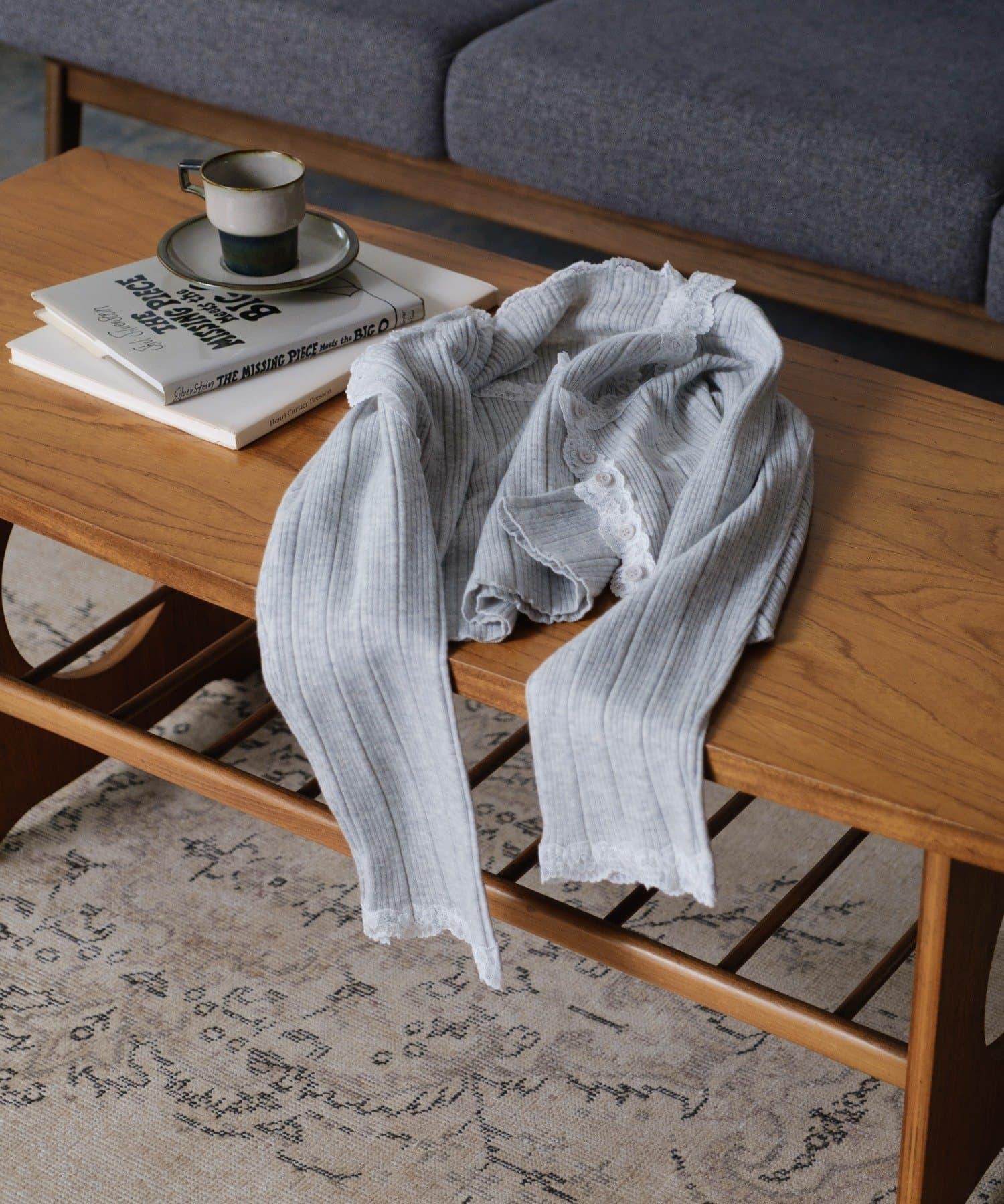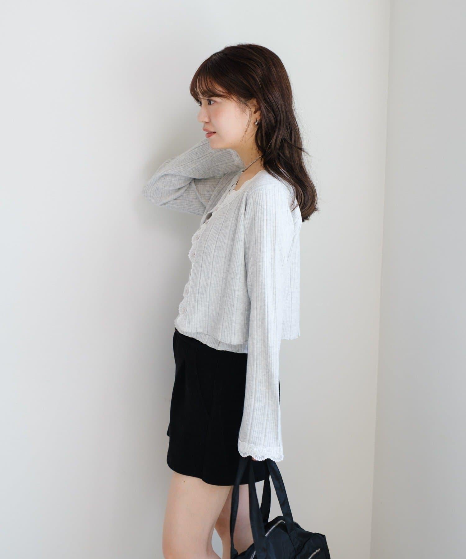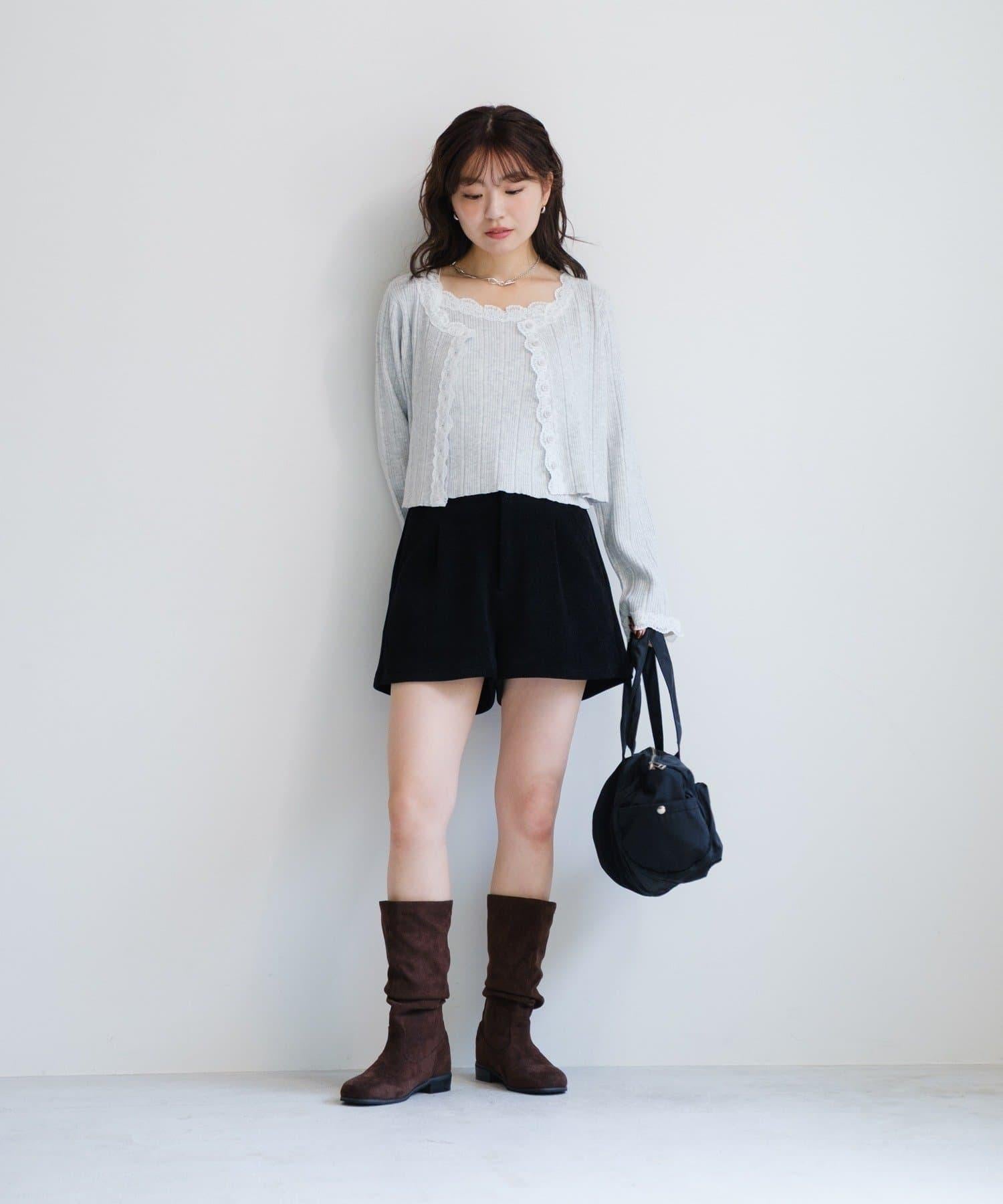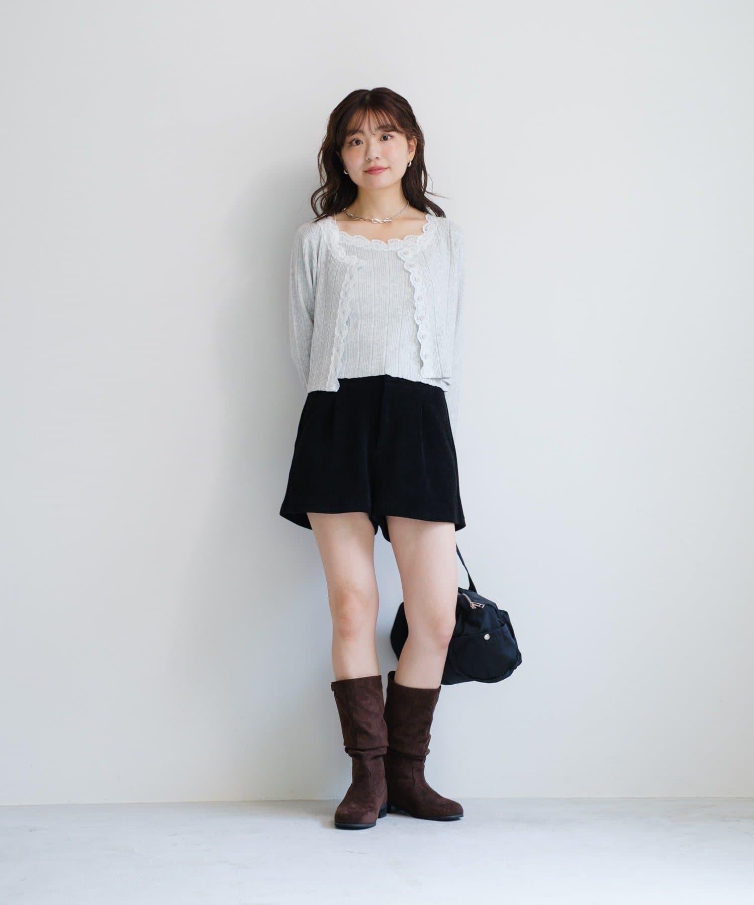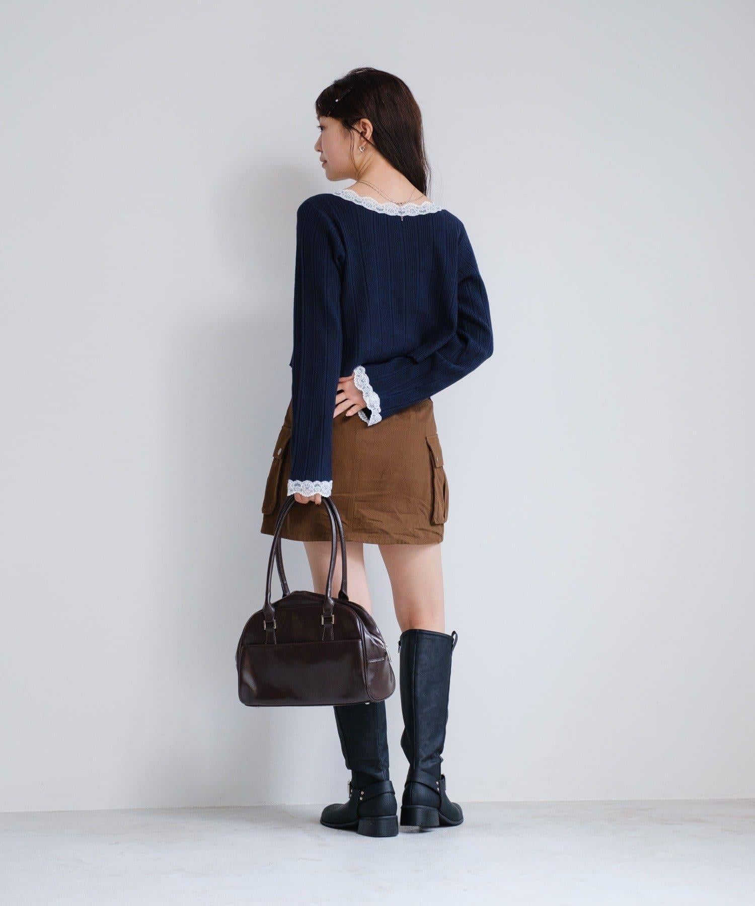 使用了精緻的蕾絲材料。如果與粗糙的表面摩擦,或被包、皮帶或尖銳的物品夾住,很容易飄起縷線,可能會被剪斷。請小心處理。