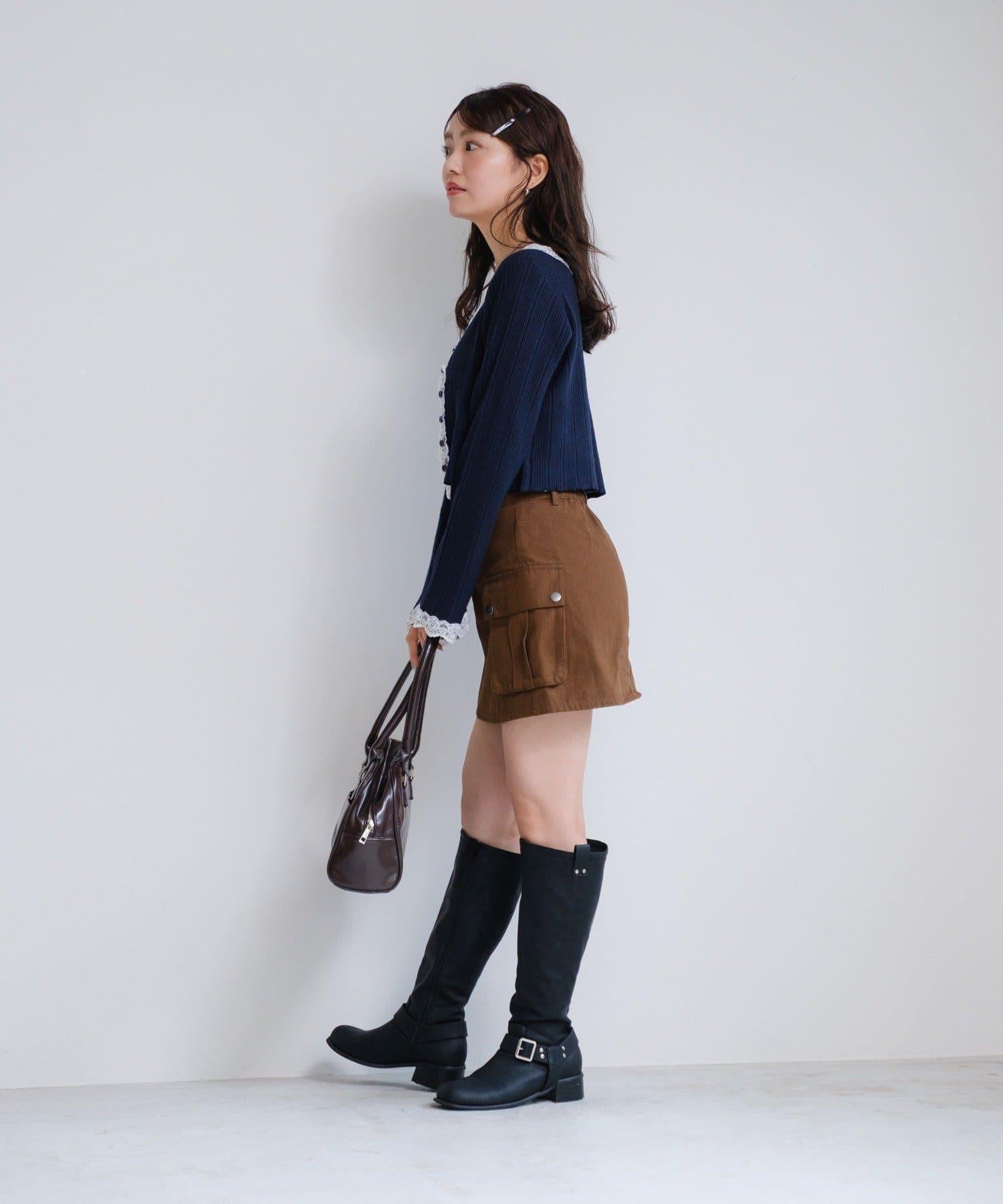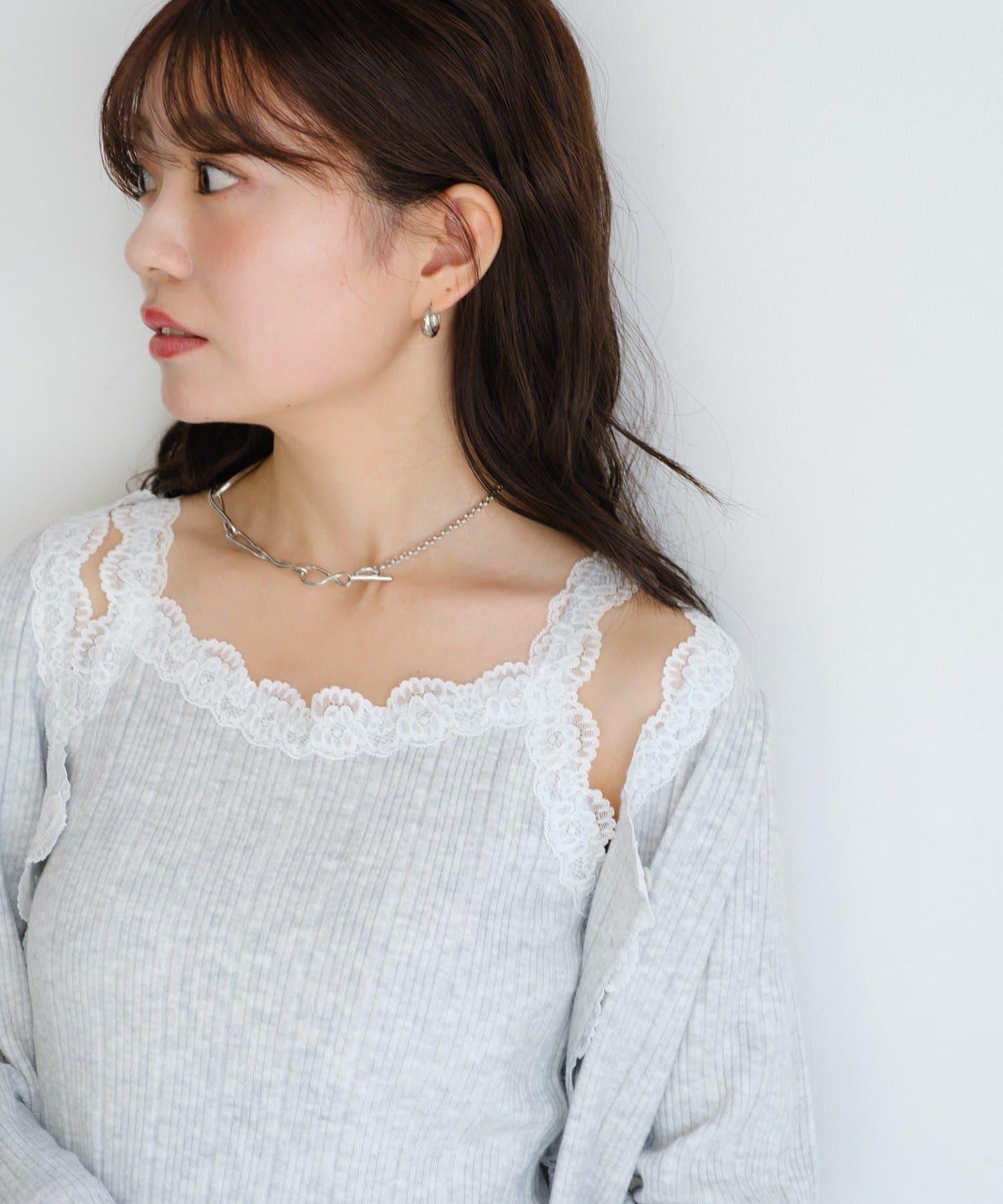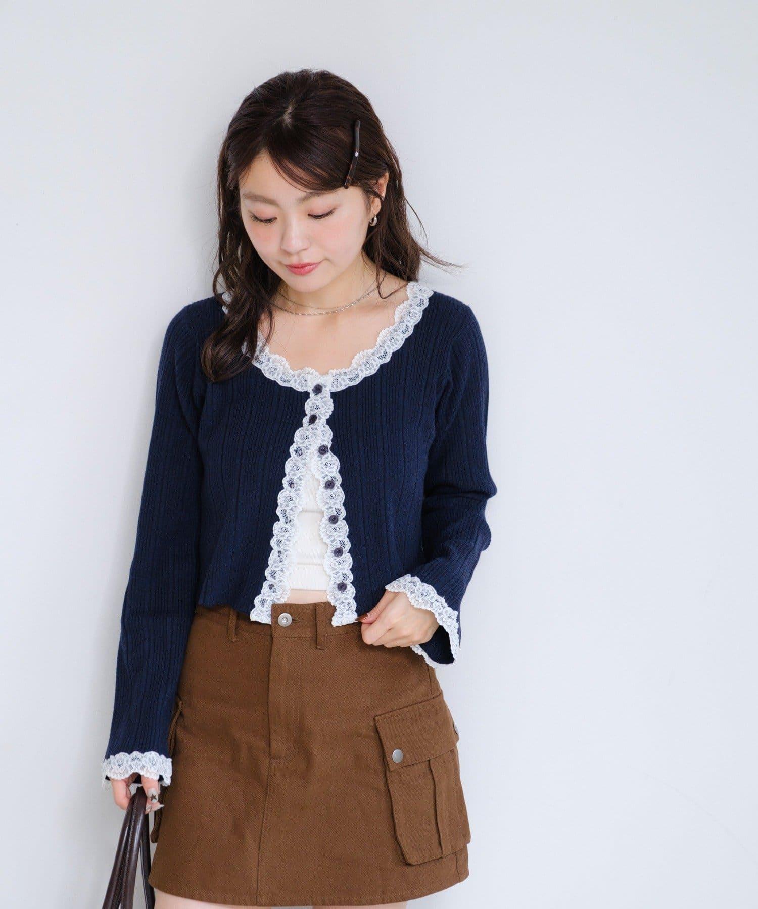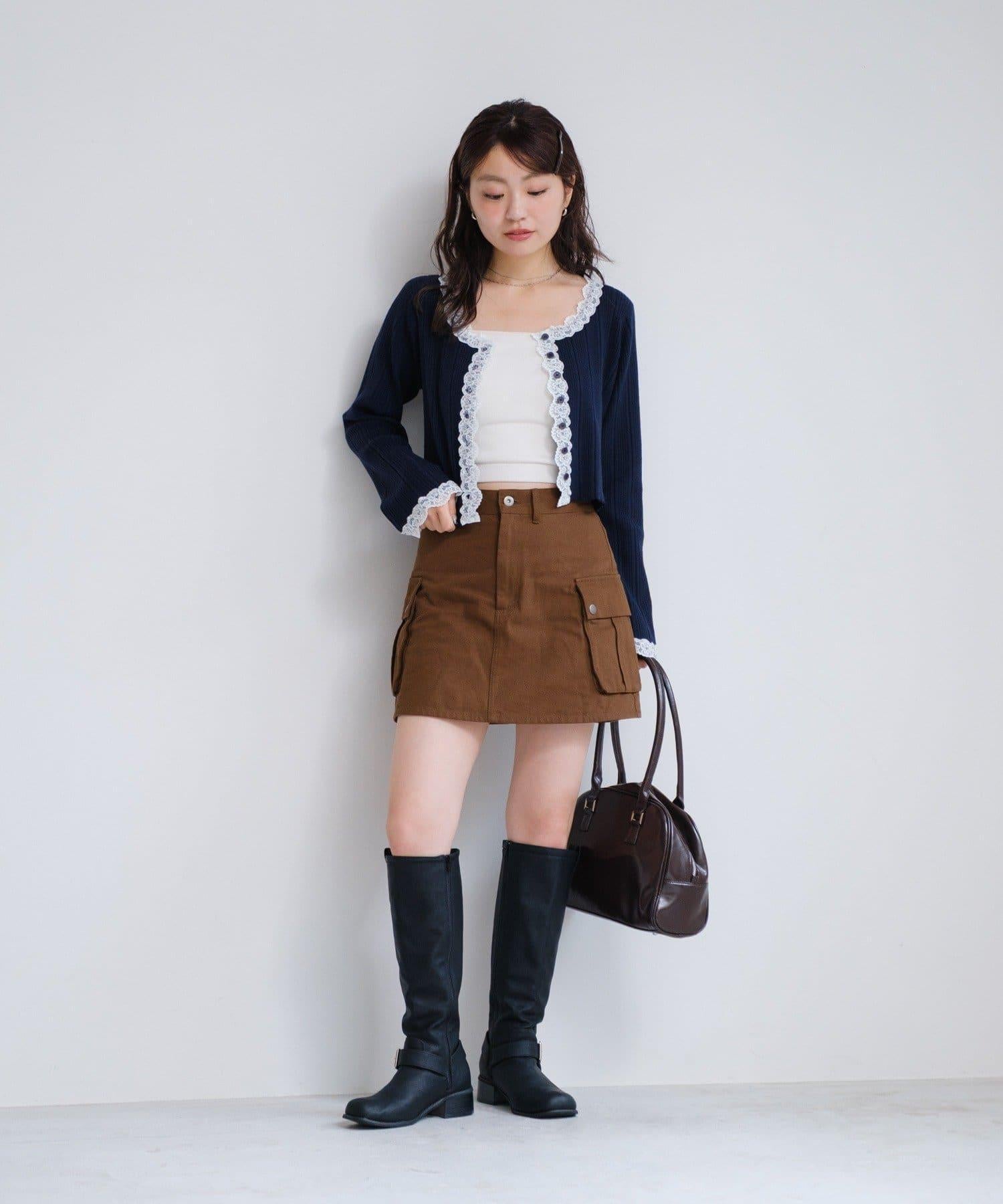 使用了精緻的蕾絲材料。如果與粗糙的表面摩擦,或被包、皮帶或尖銳的物品夾住,很容易飄起縷線,可能會被剪斷。請小心處理。