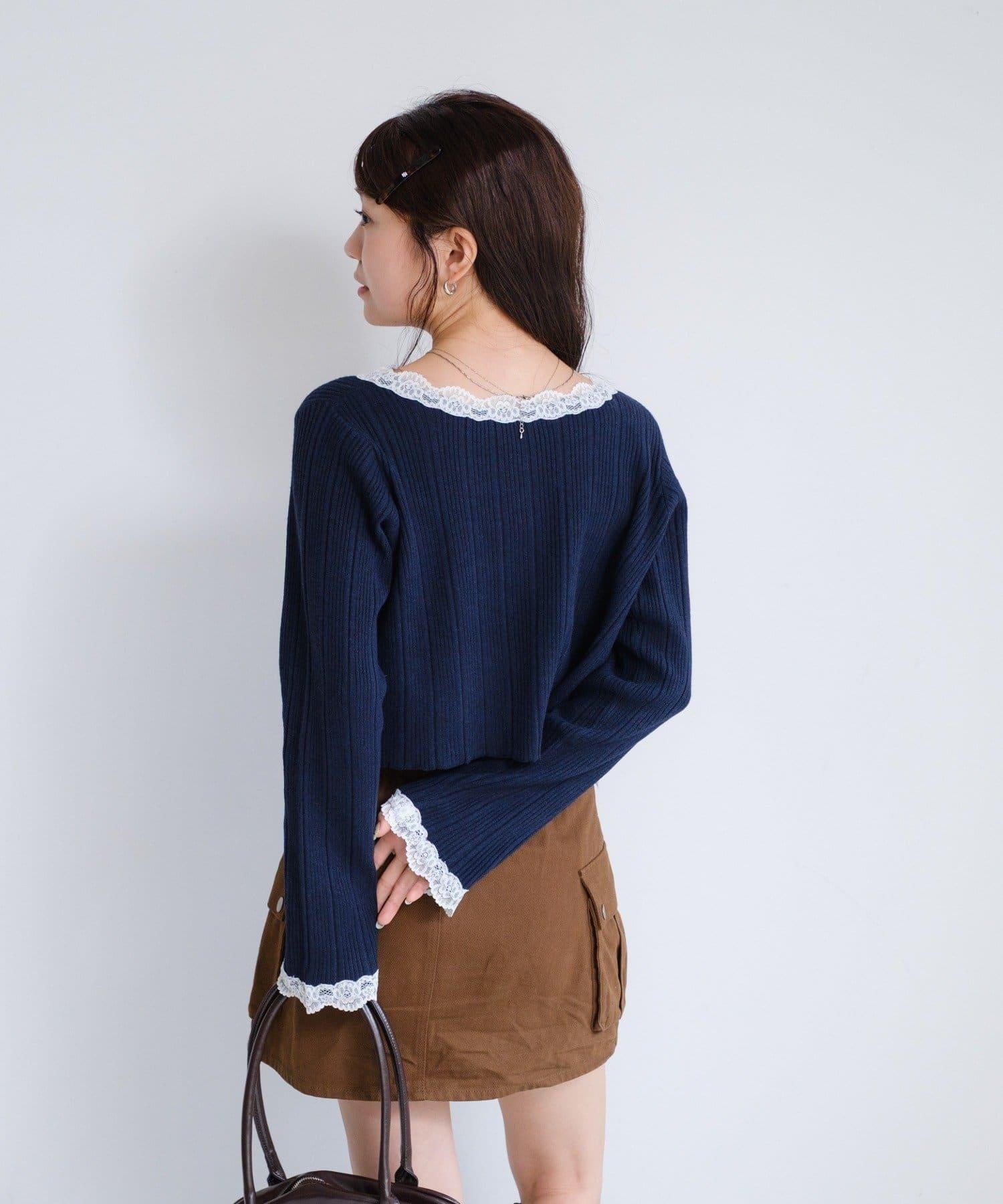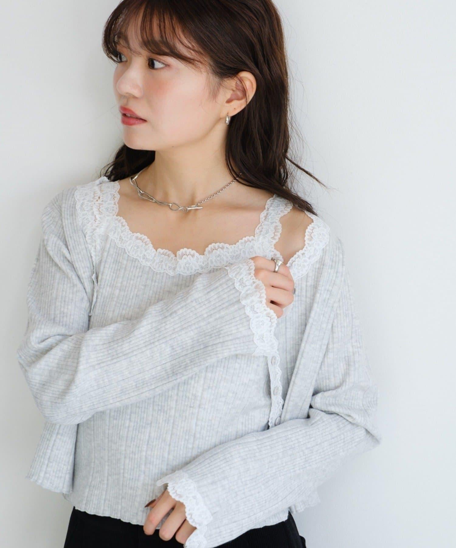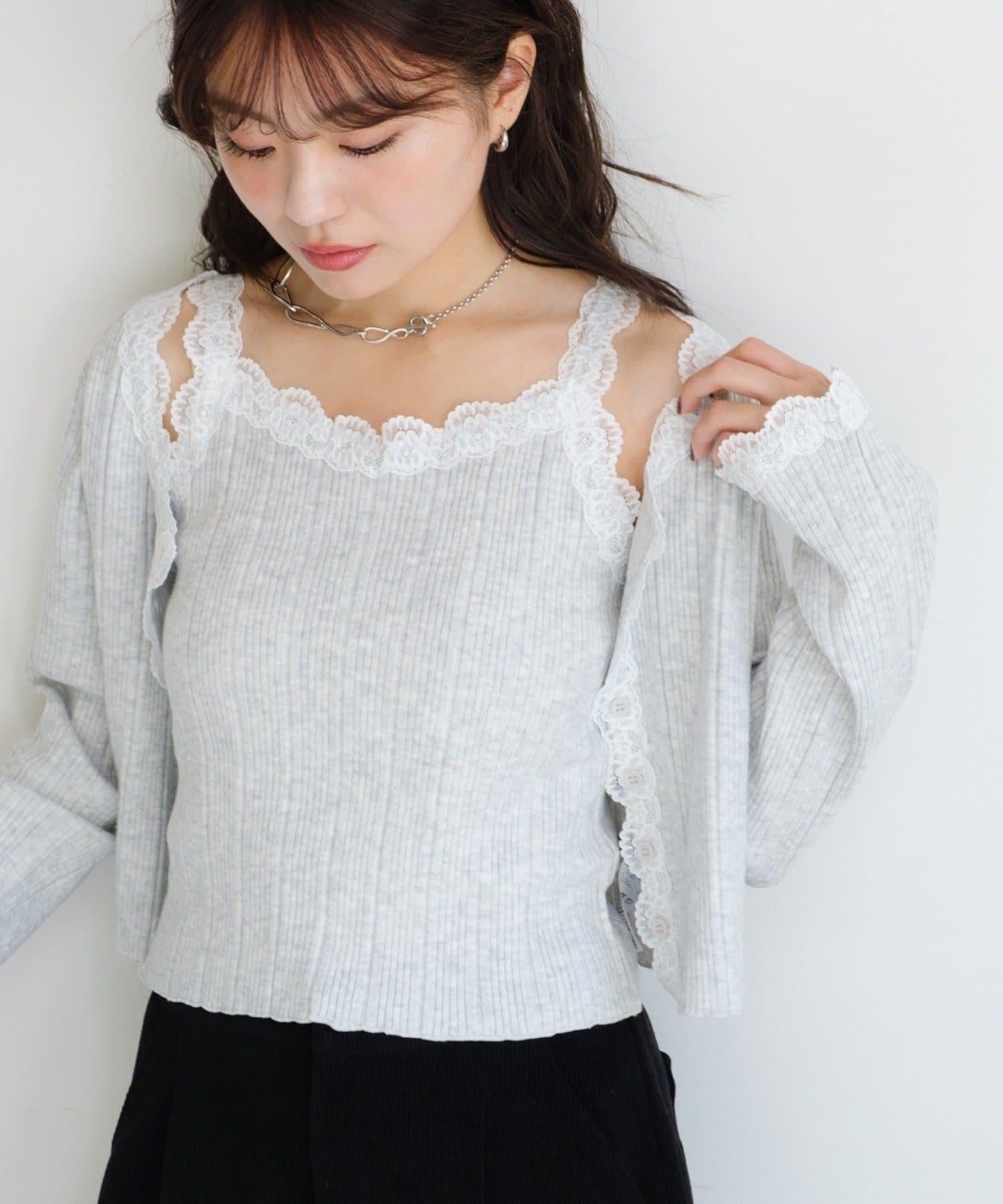 羅紋針織套裝帶有女性化的蕾絲外觀。