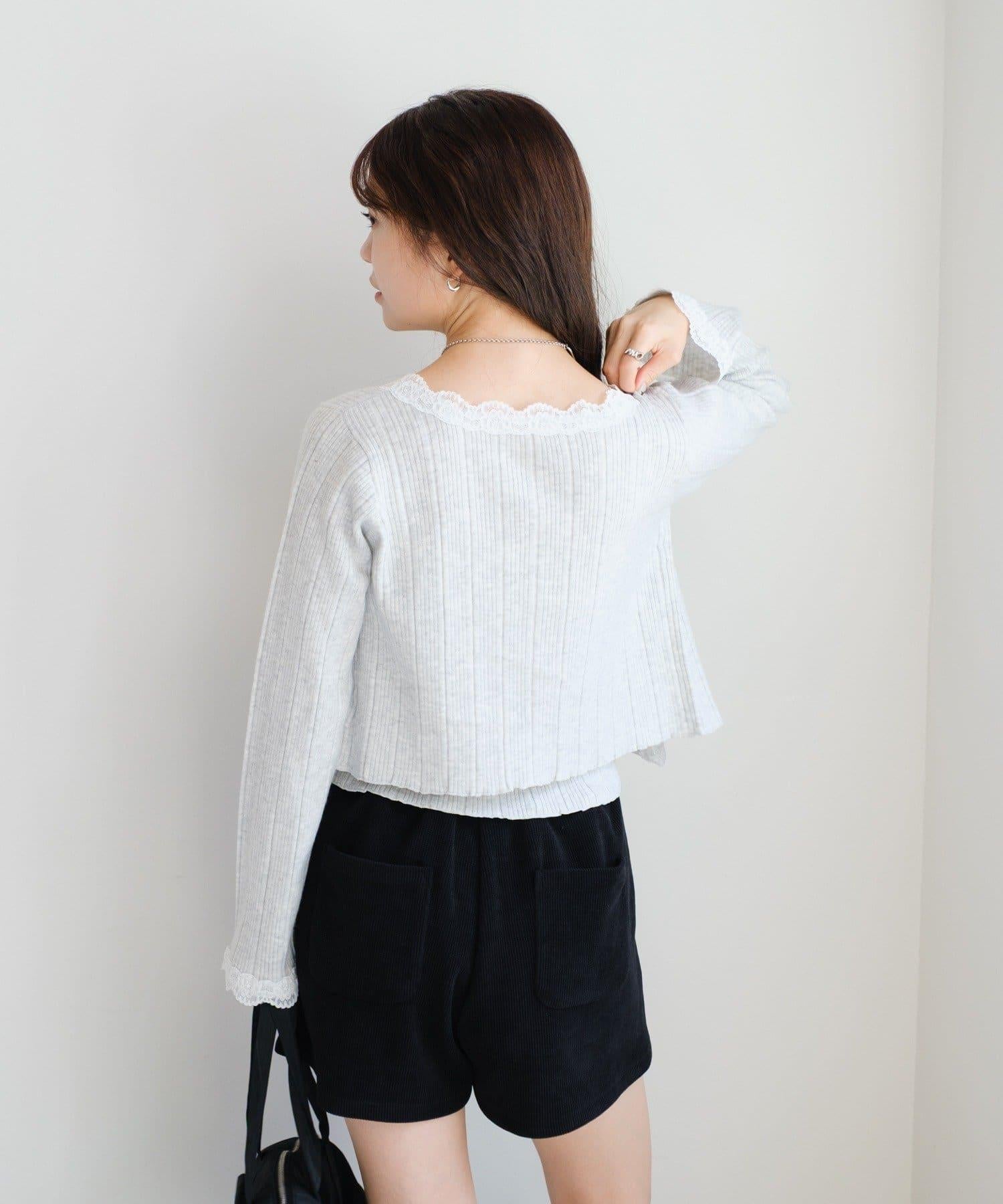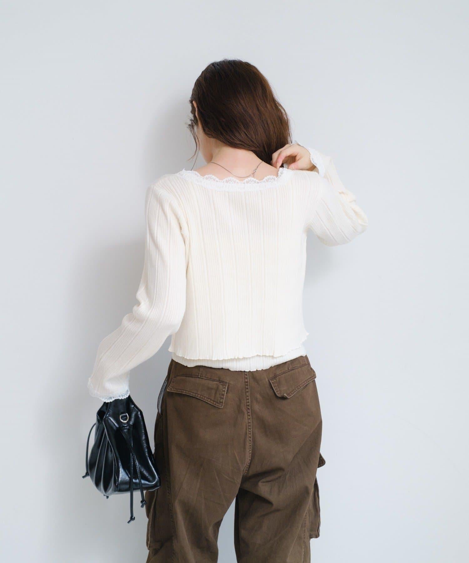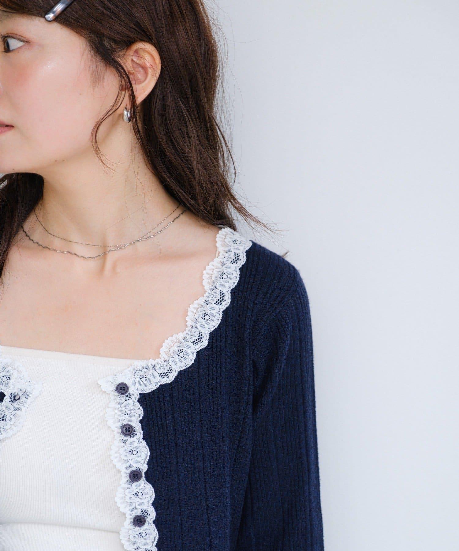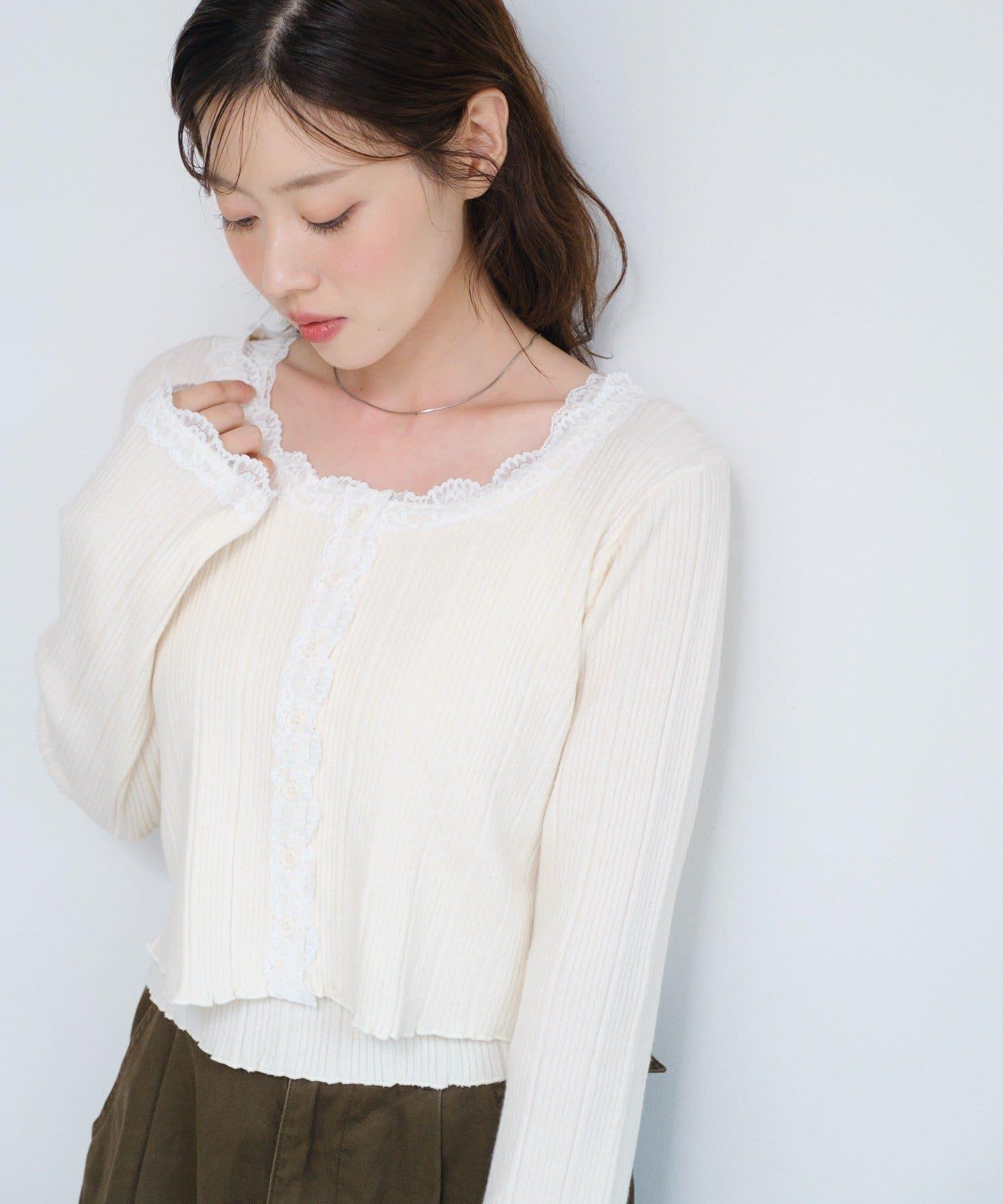 羅紋針織套裝帶有女性化的蕾絲外觀。