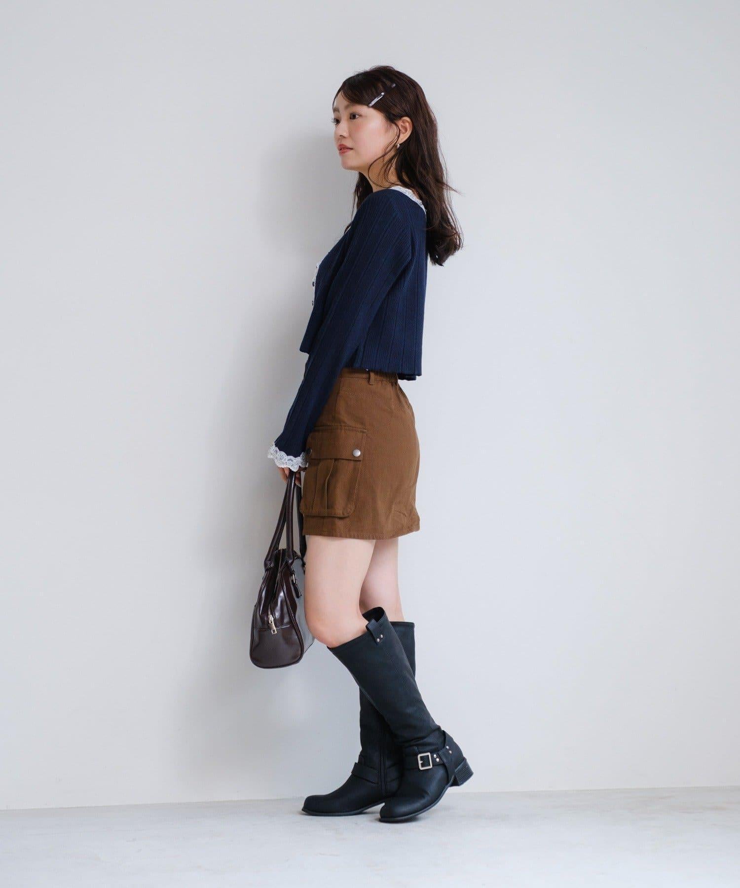 羅紋縱向線條給人一種簡潔的感覺,這種設計就像開衫與內層的結合,因此只需一件就能完成造型。