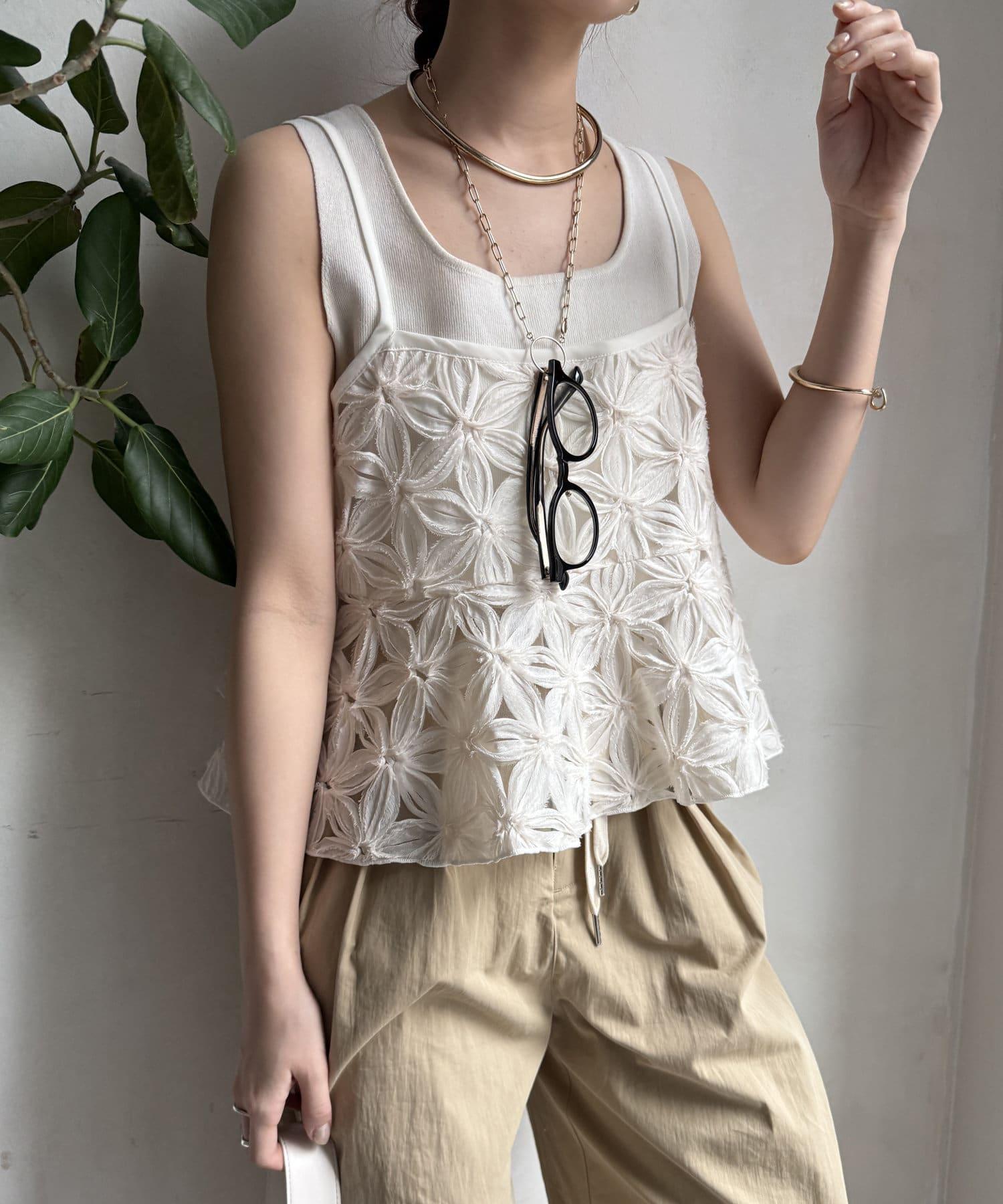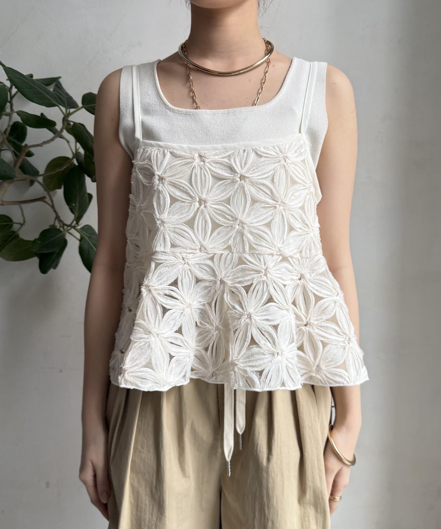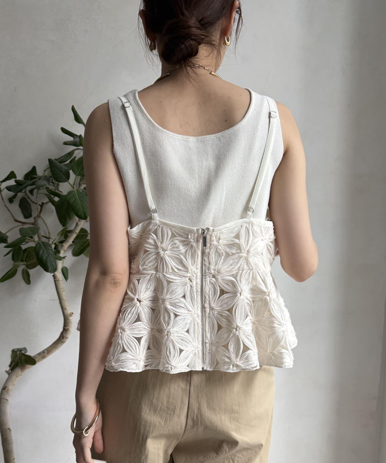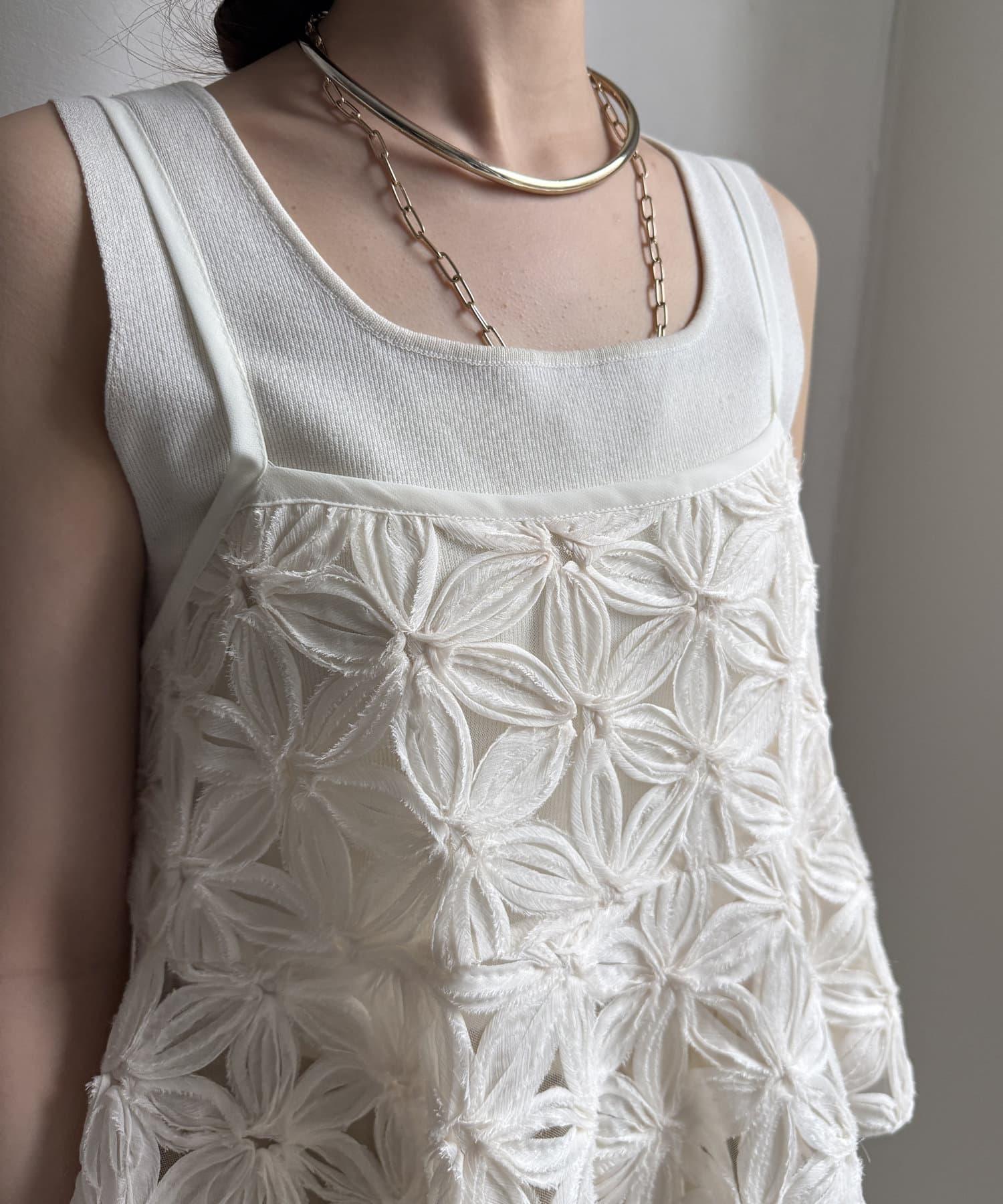華麗精緻的吊帶背心,薄紗上有花朵圖案。