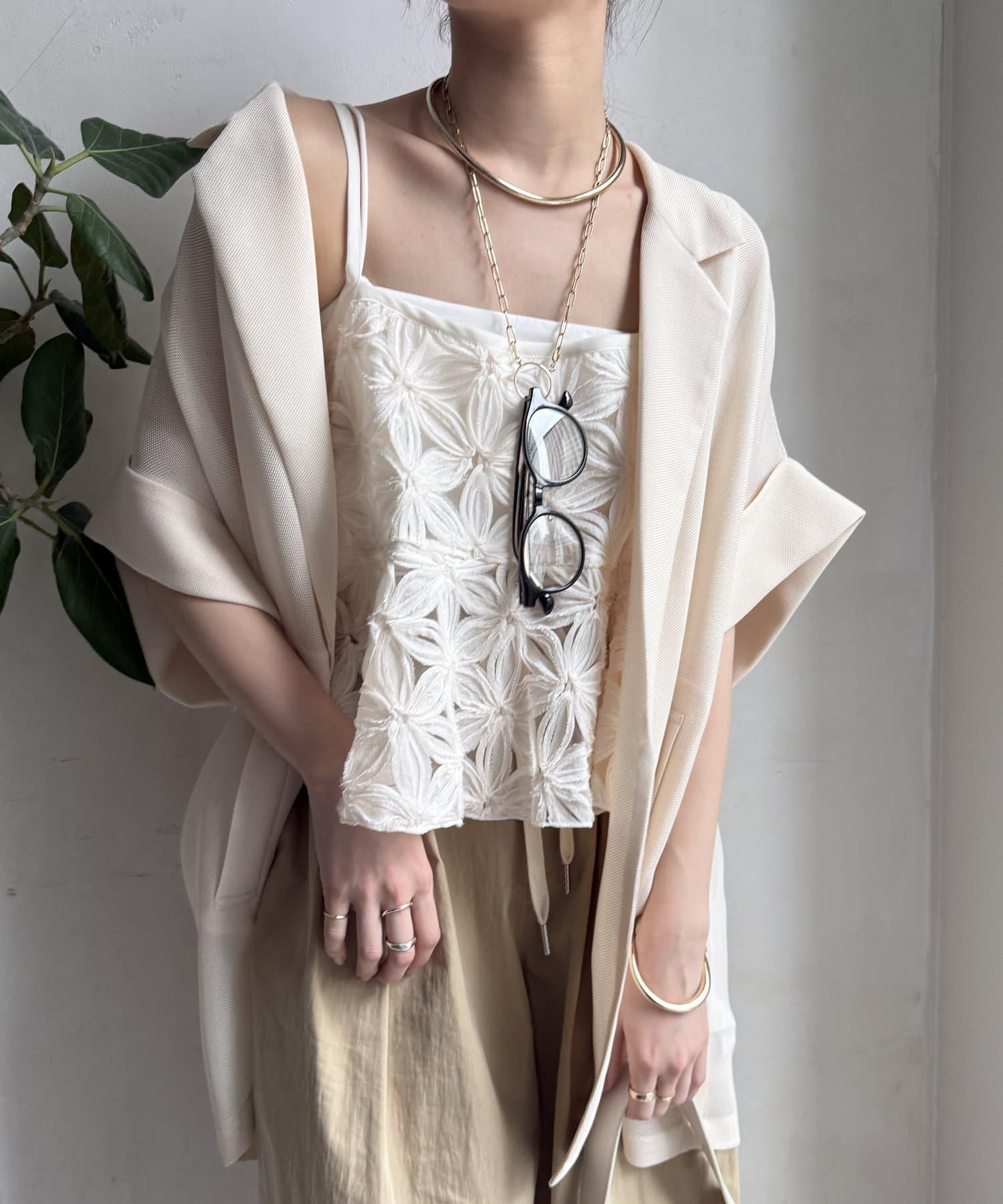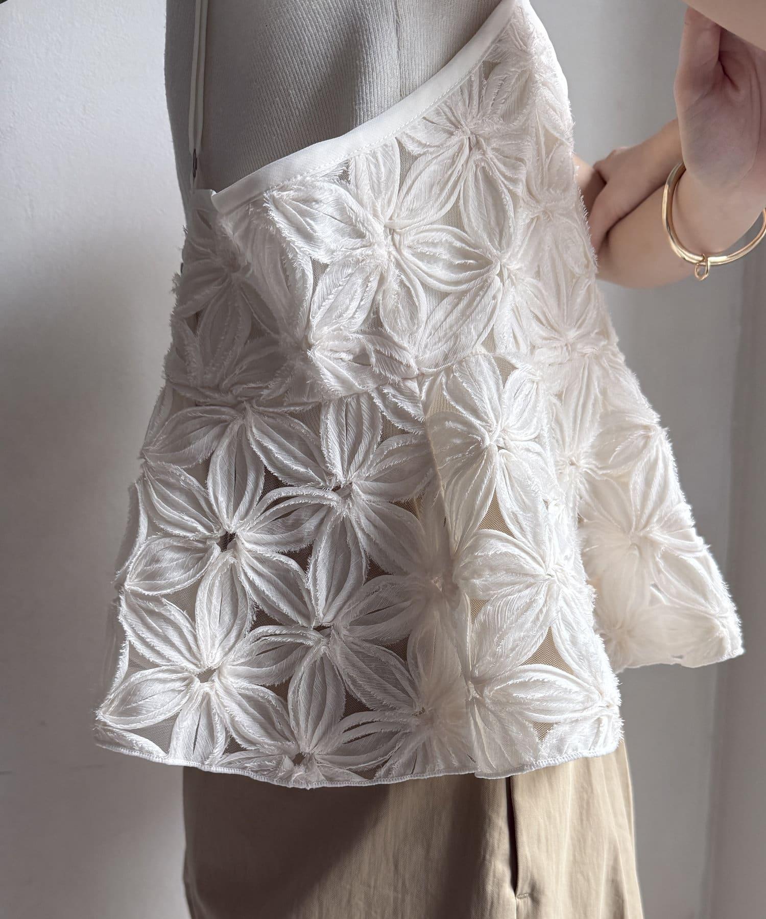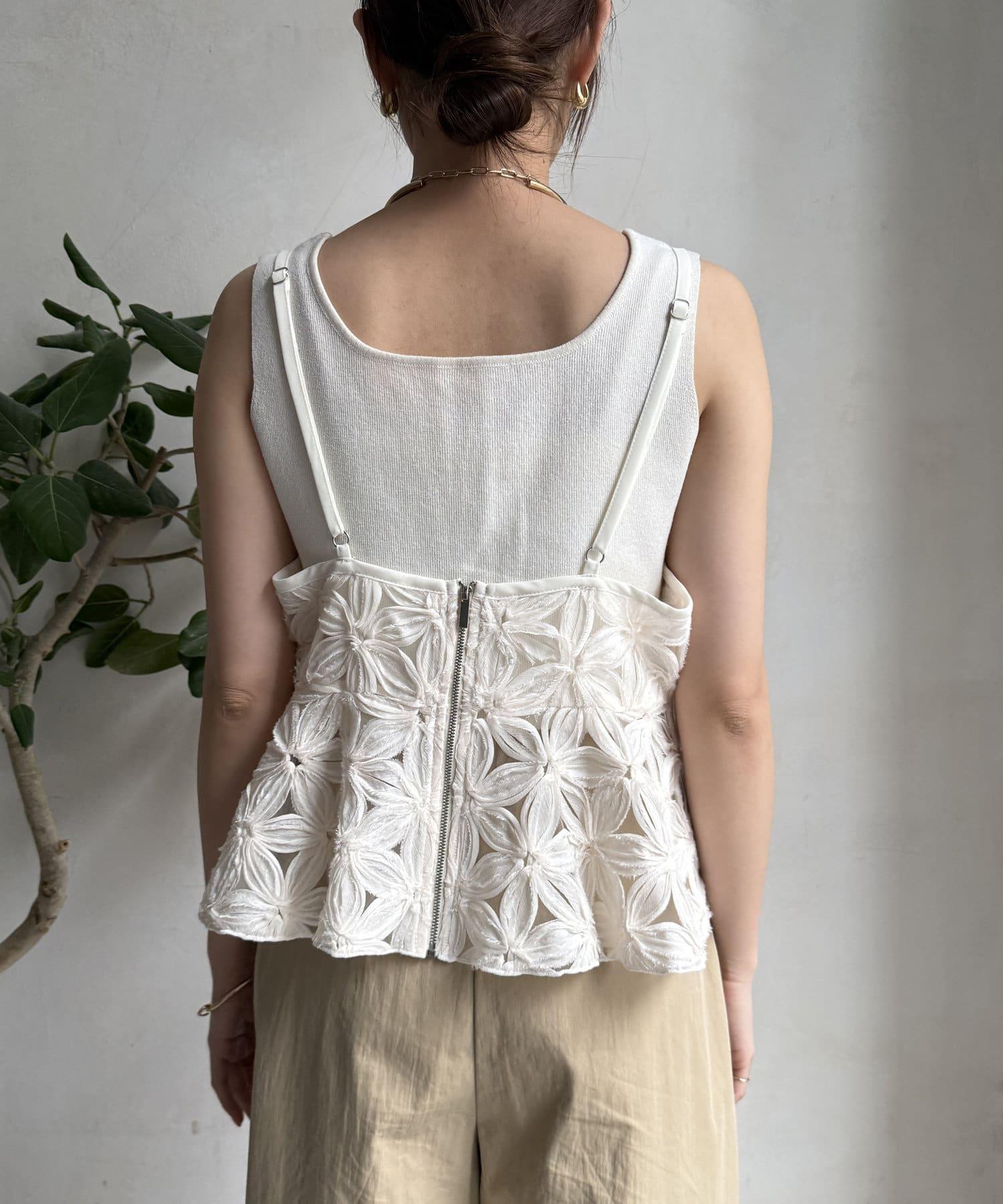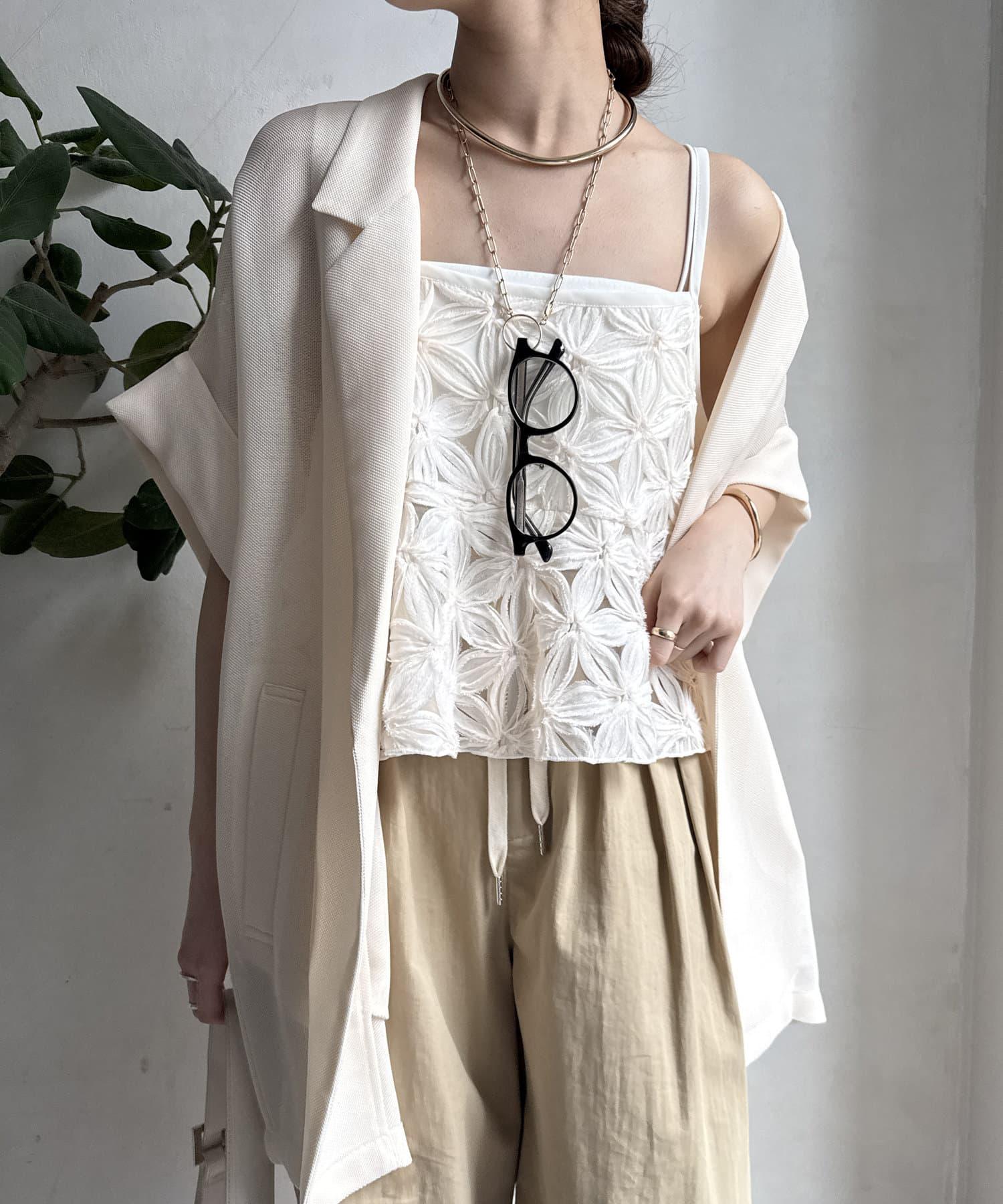 華麗精緻的吊帶背心,薄紗上有花朵圖案。