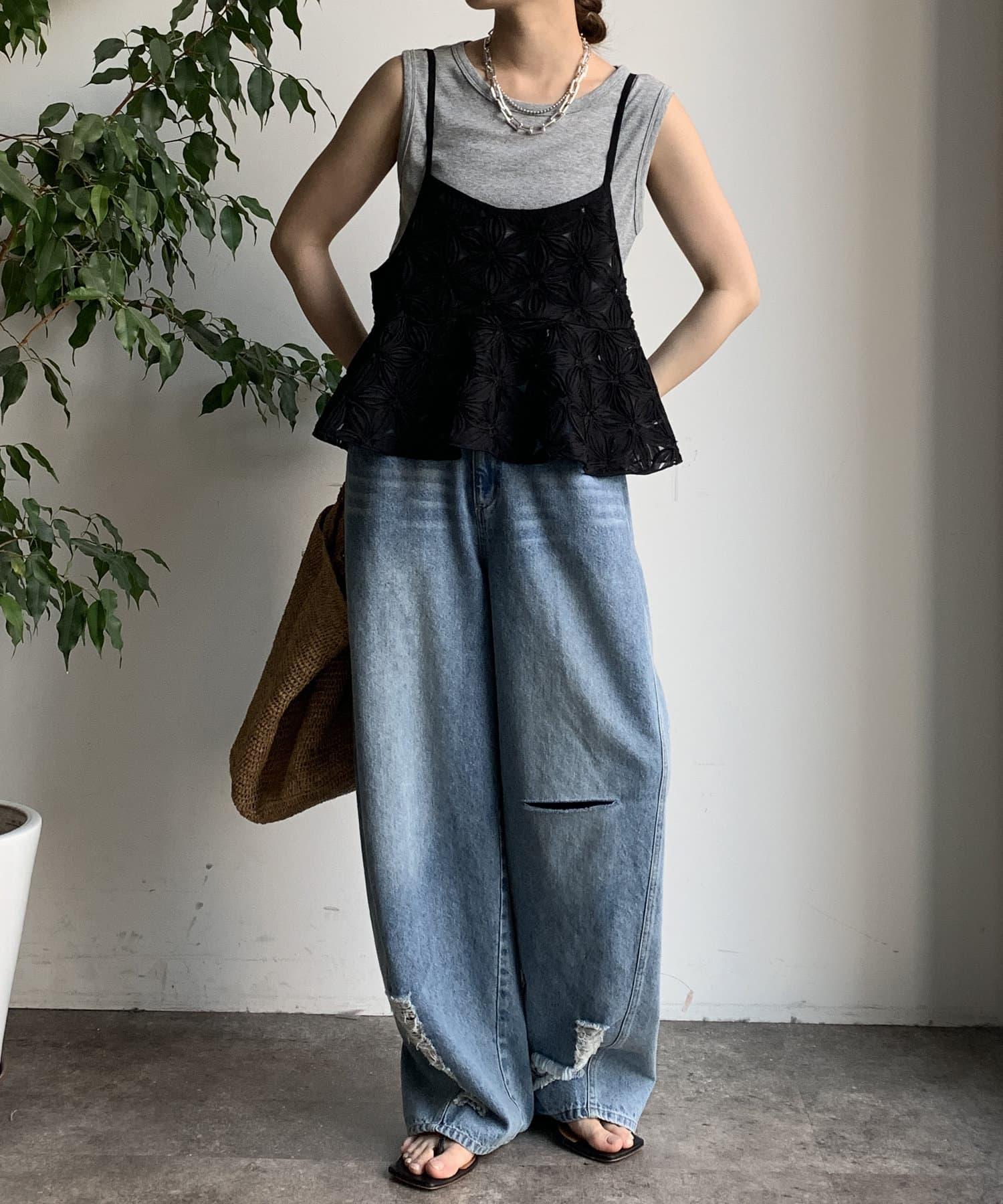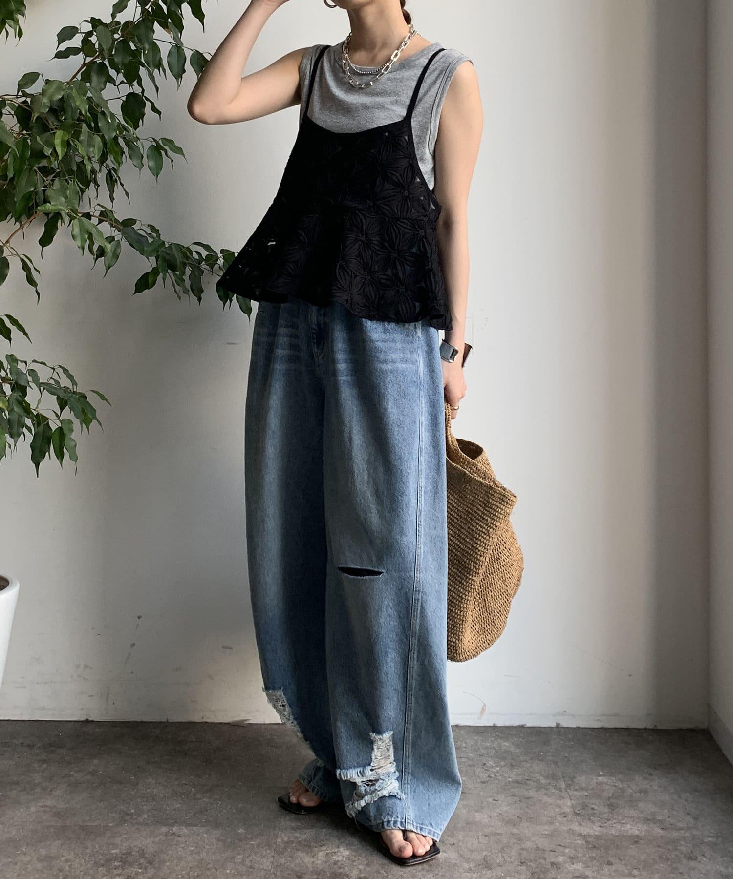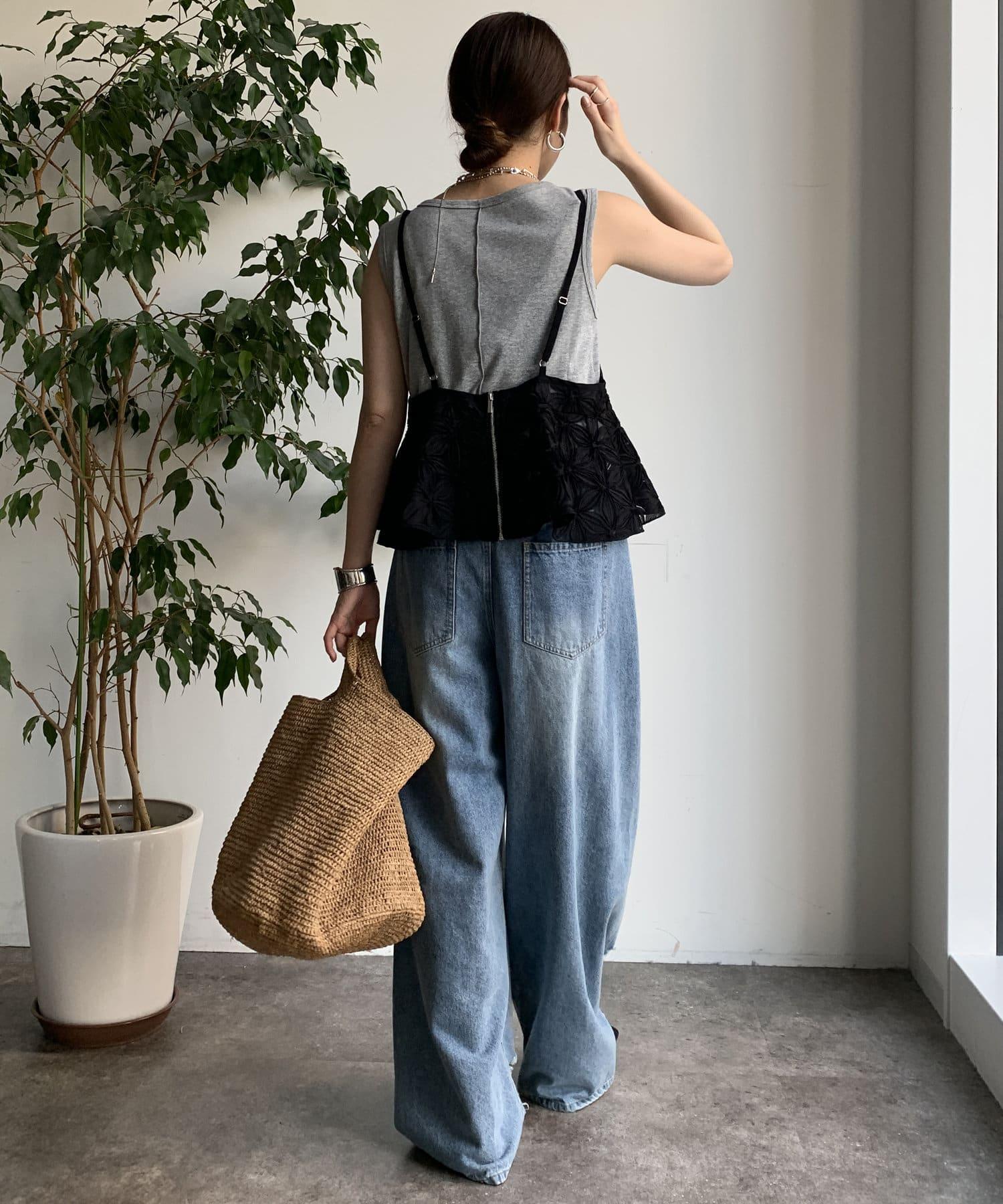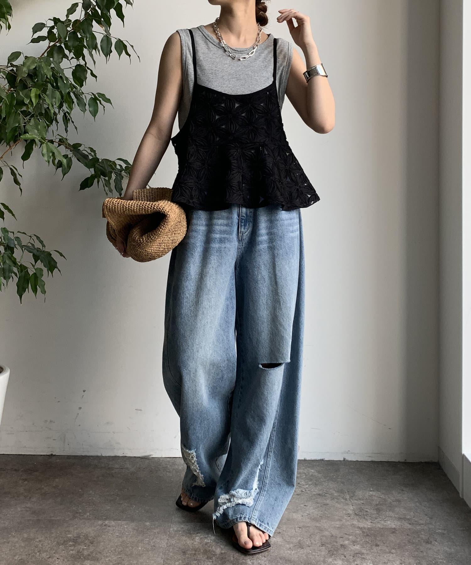 華麗精緻的吊帶背心,薄紗上有花朵圖案。