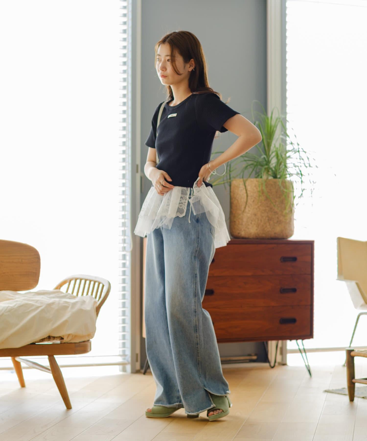 薄紗面料隨著每一個動作而晃動,給人一種柔軟的感覺。
