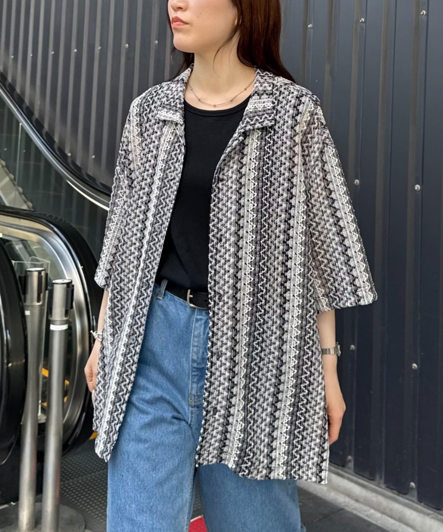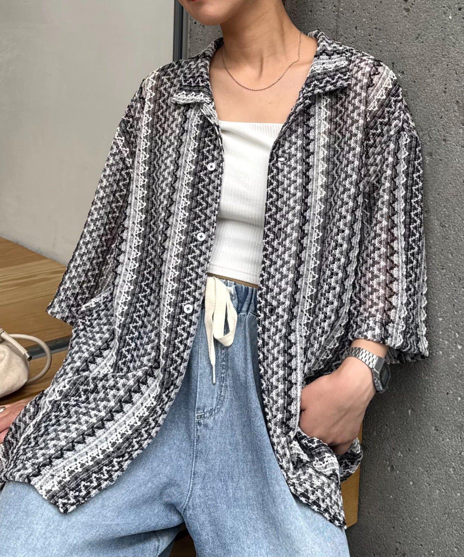 透氣條紋蕾絲襯衫,可在炎熱天氣穿著。